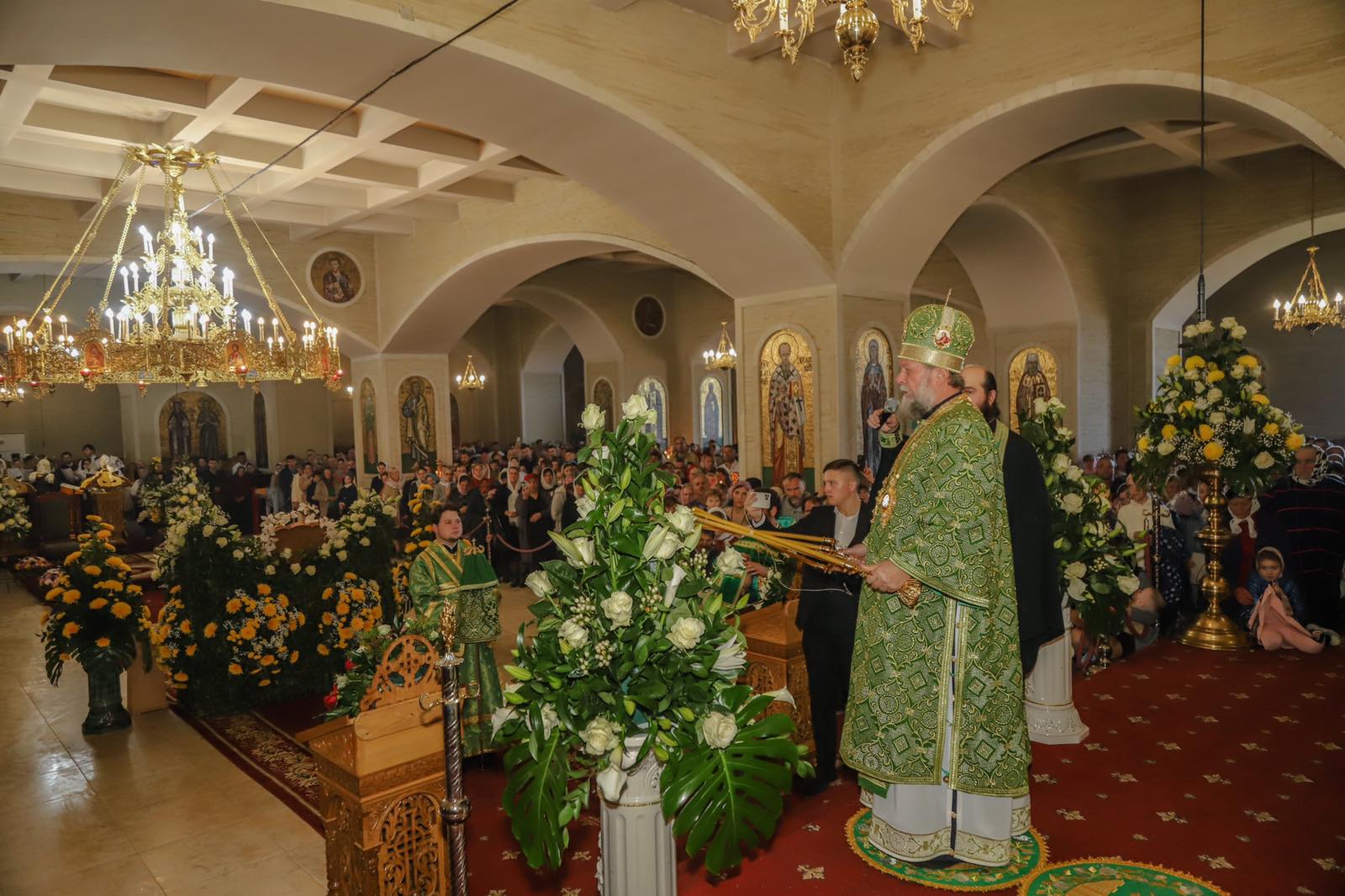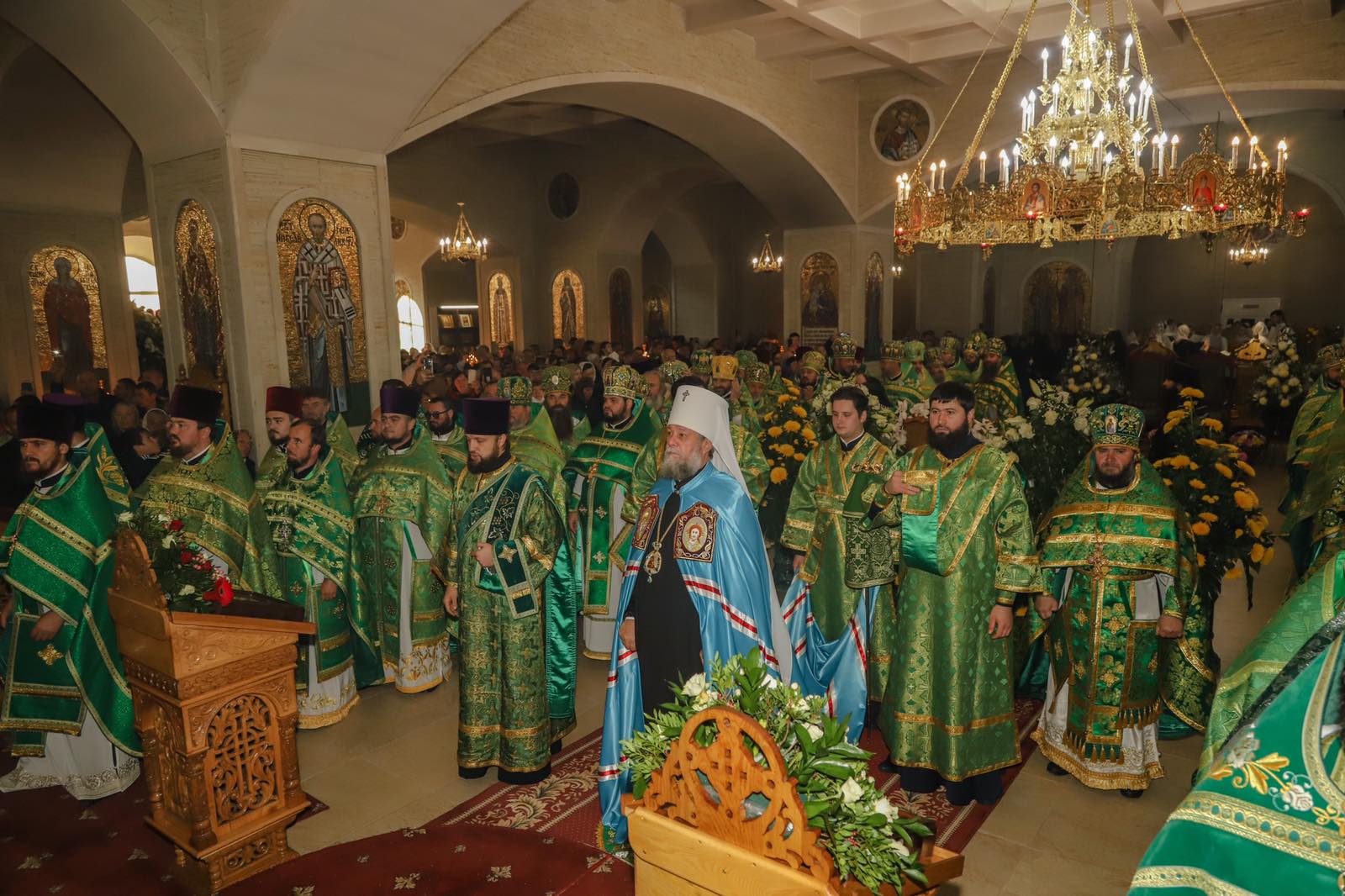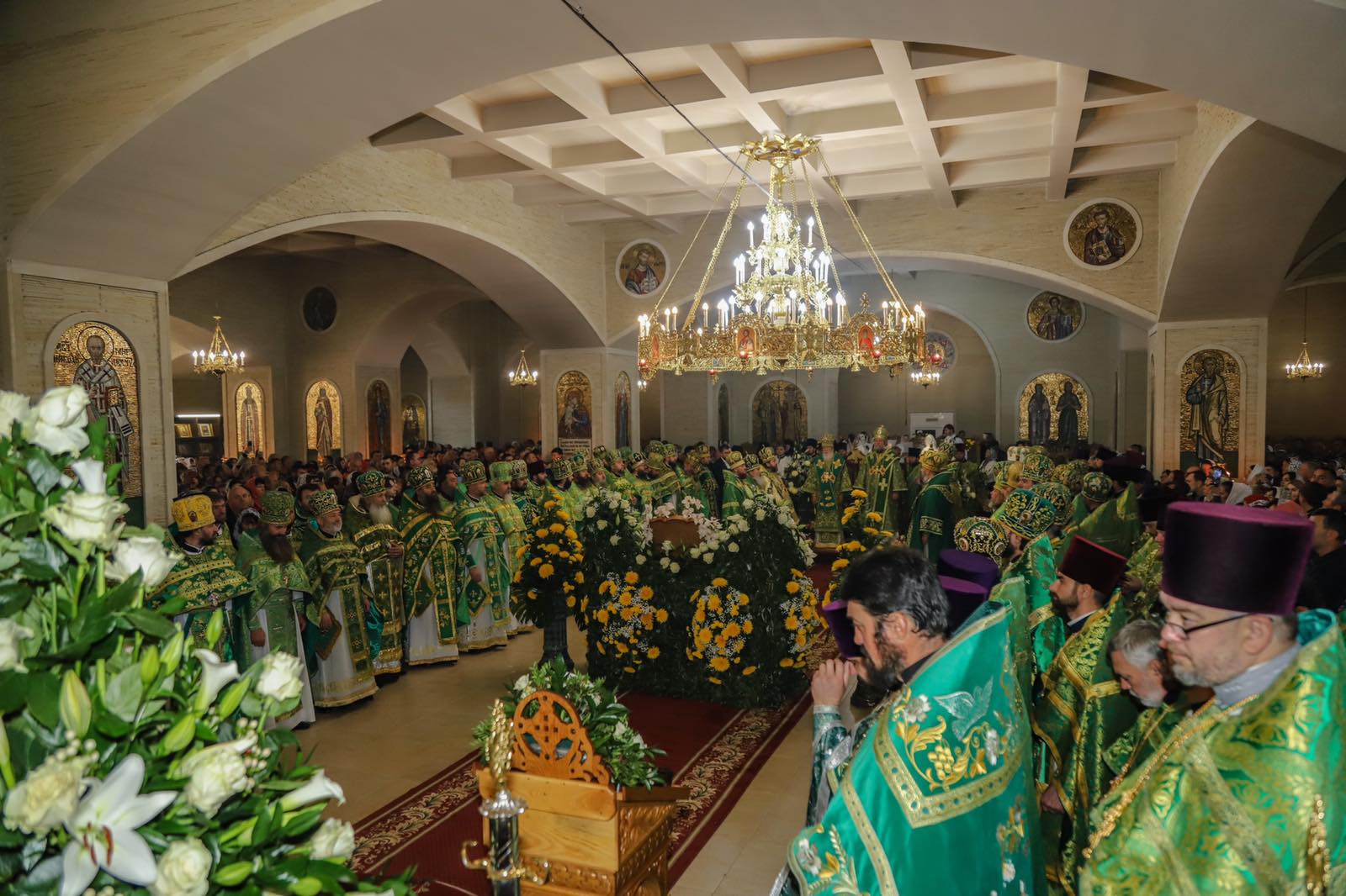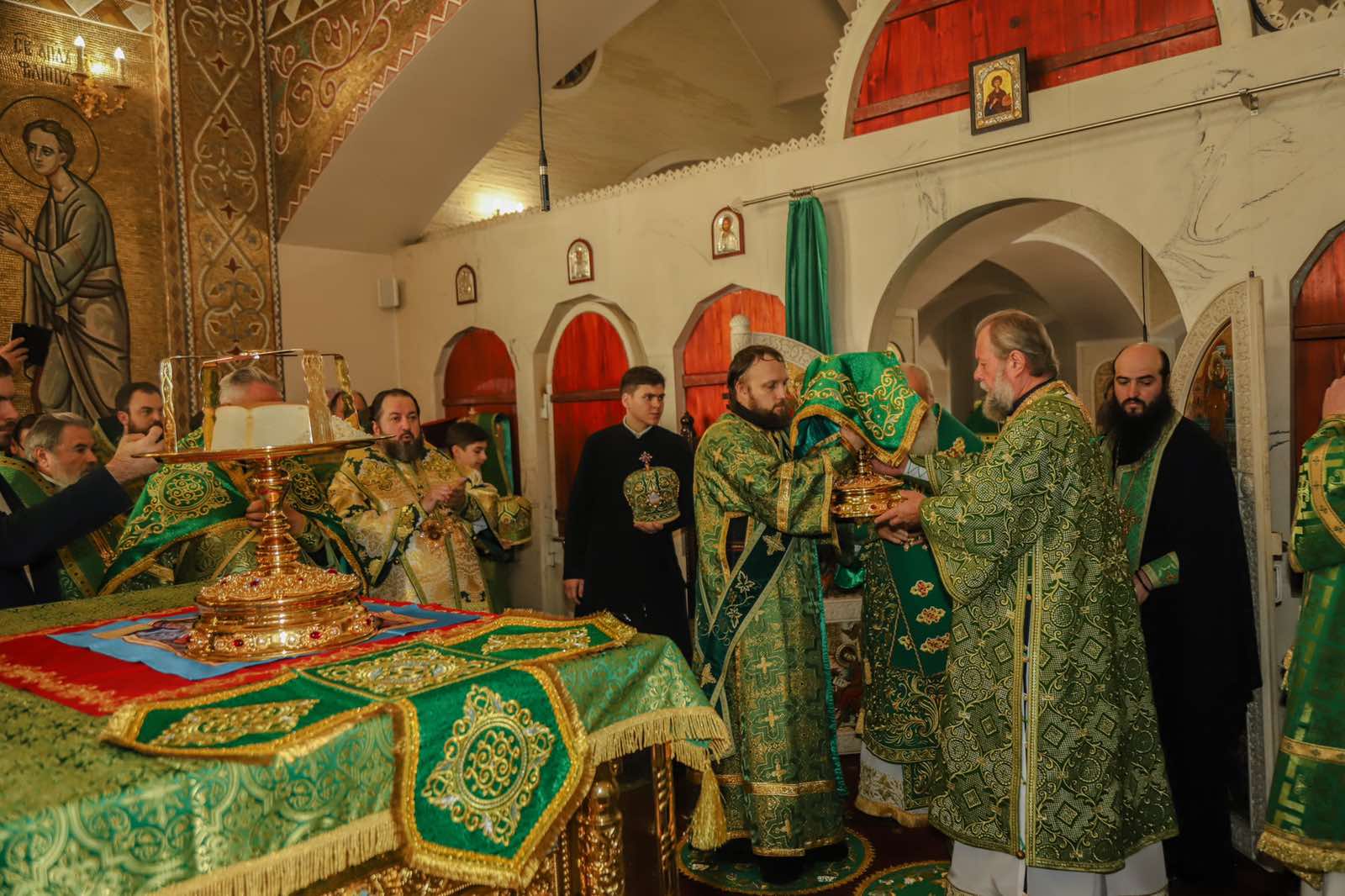Dumnezeiasca Liturghie a fost săvârșită într-o atmosferă solemnă în subsolul Catedralei, biserica cu hramul „Sf. M. Mc. Pantelimon”. Întâistătătorului i-au coliturghisit: