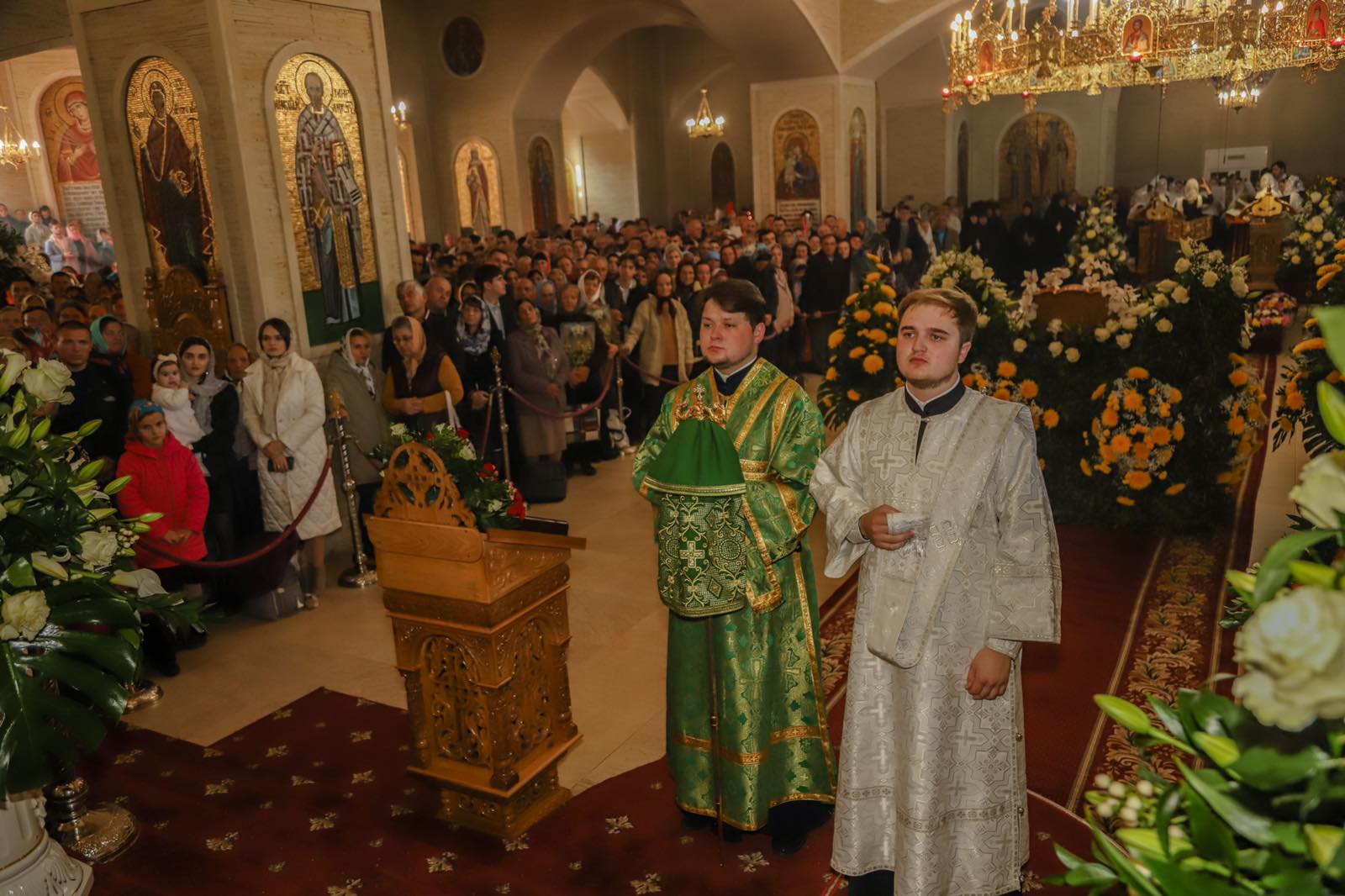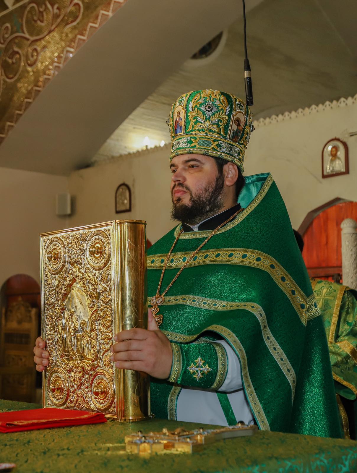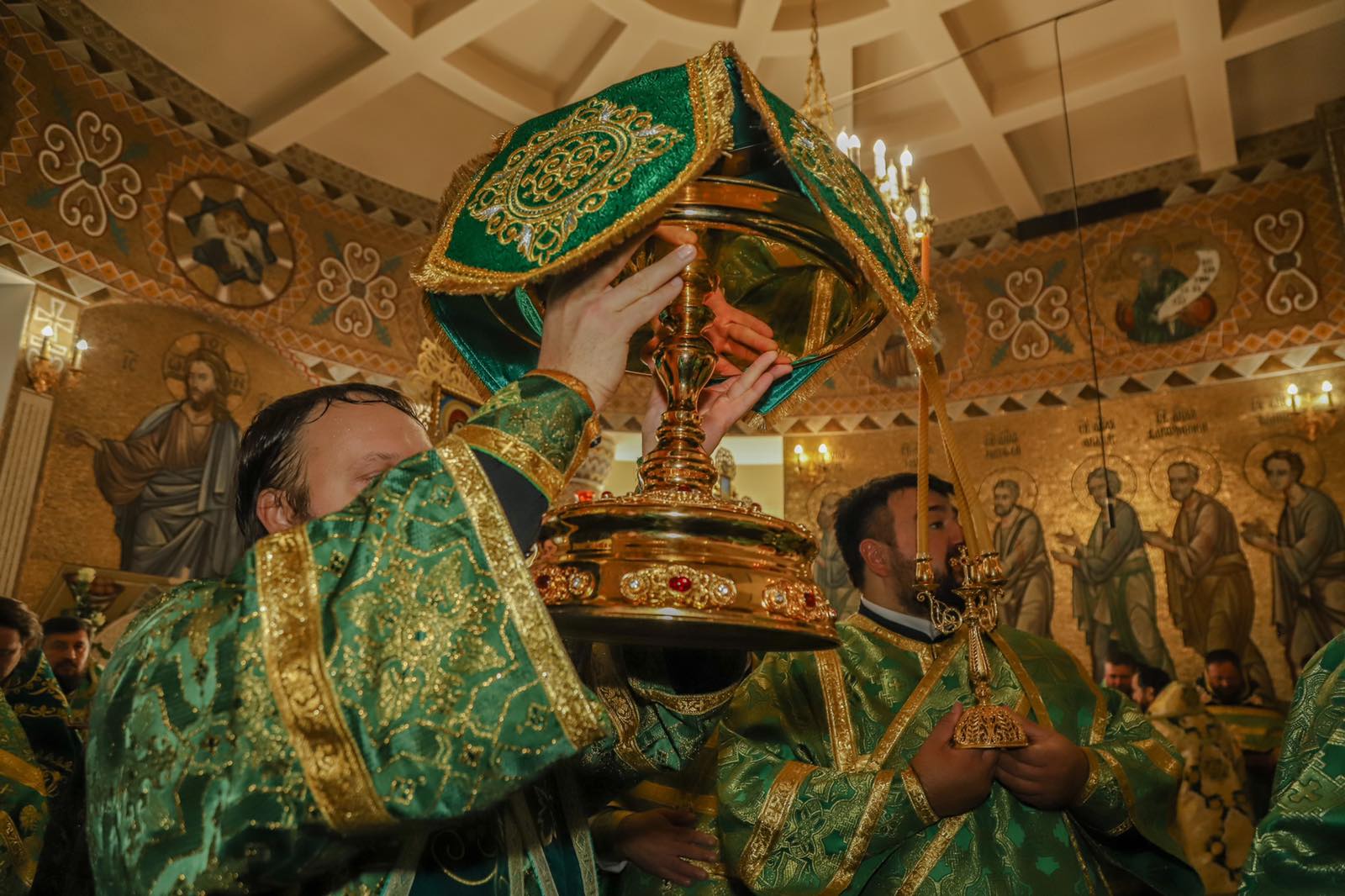 Dumnezeiasca Liturghie a fost săvârșită într-o atmosferă solemnă în subsolul Catedralei, biserica cu hramul „Sf. M. Mc. Pantelimon”. Întâistătătorului i-au coliturghisit: