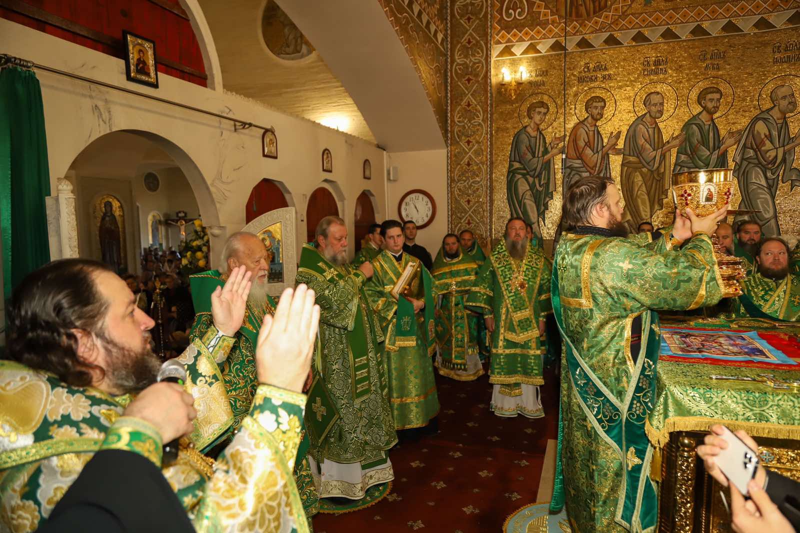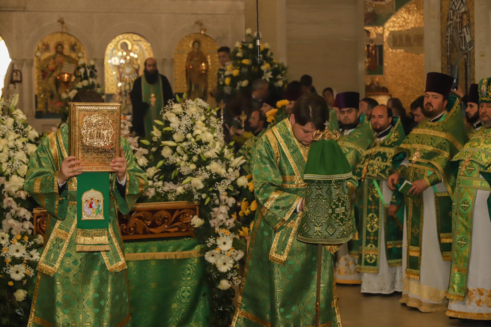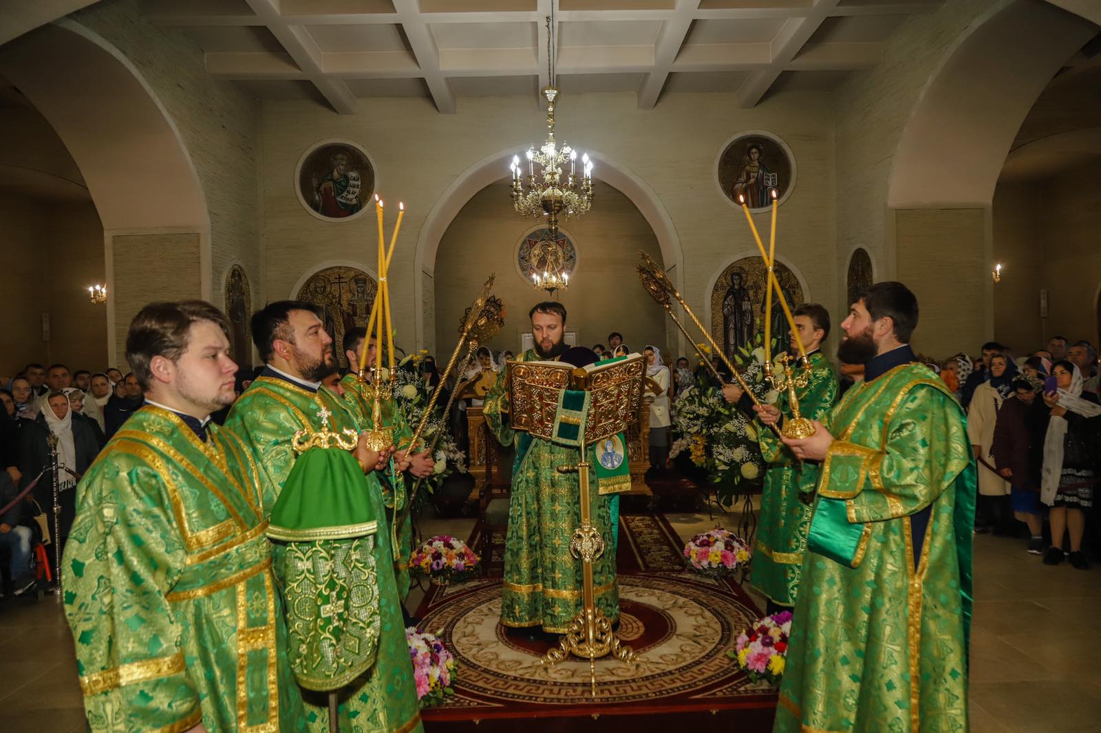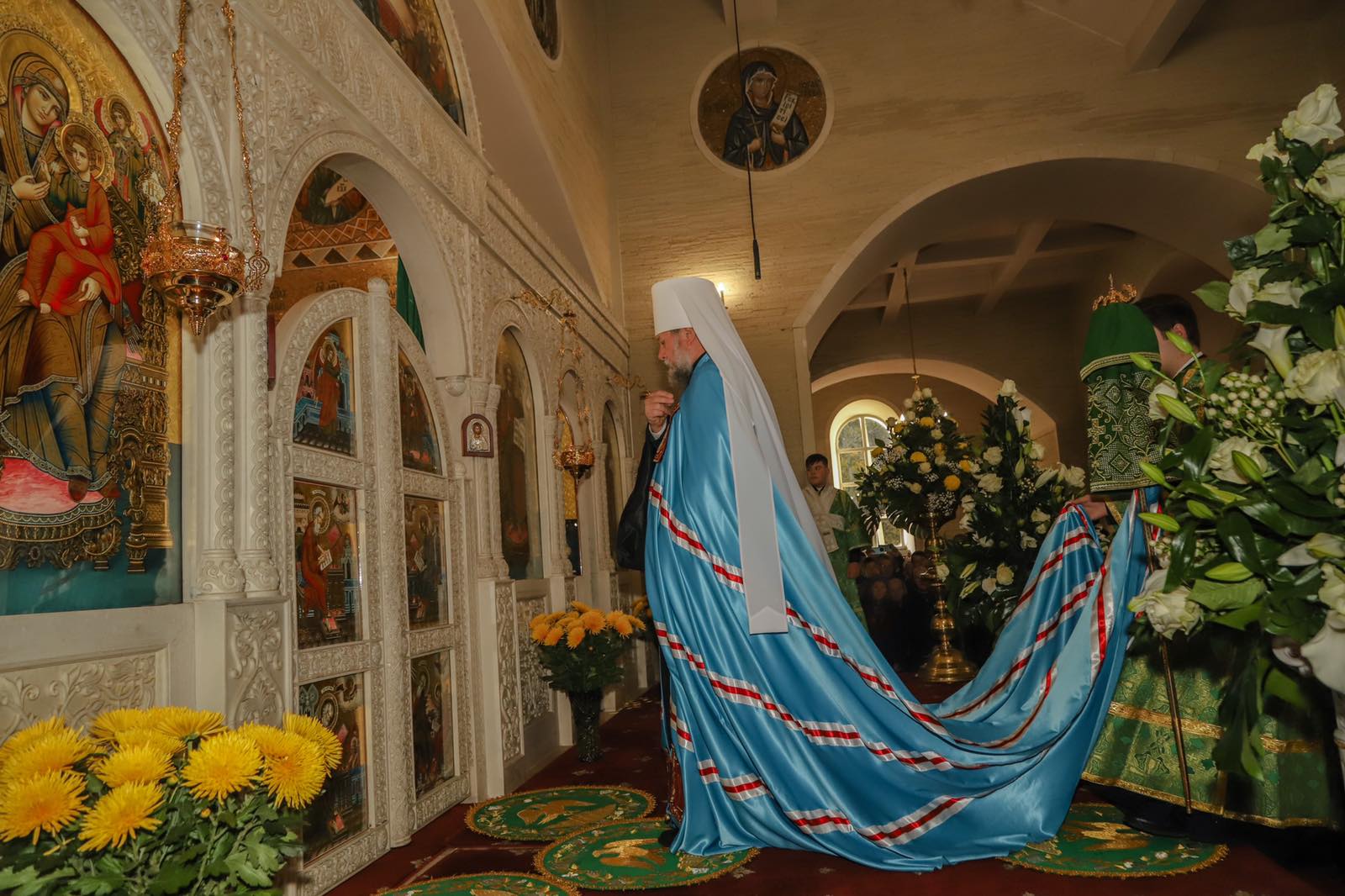 Dumnezeiasca Liturghie a fost săvârșită într-o atmosferă solemnă în subsolul Catedralei, biserica cu hramul „Sf. M. Mc. Pantelimon”. Întâistătătorului i-au coliturghisit: