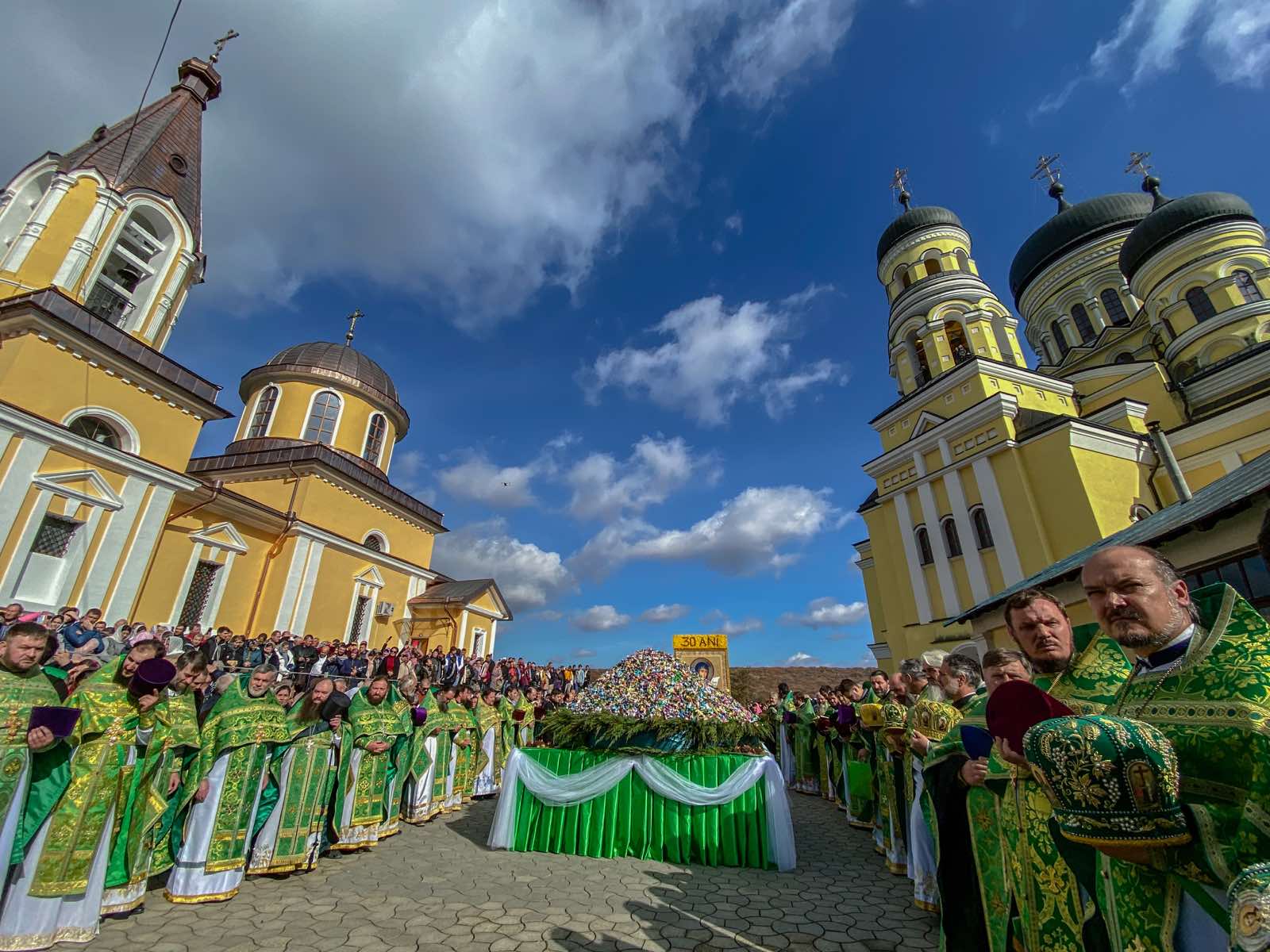 După procesiunea cu Sfintele Moaște, în curtea Sfintei Mănăstiri Hîncu, Soborul de Arhierei și preoți în frunte cu Înaltpreasfințitul VLADIMIR, Mitropolitul Chișinăului și al întregii Moldove, au săvârșit Te-deum de mulțumire lui Dumnezeu și Sfintei Cuvioase Parascheva pentru tot ajutorul și darurile cerești revărsate asupra Mănăstirii Hîncu în toți cei 30 ani de la redeschidere.