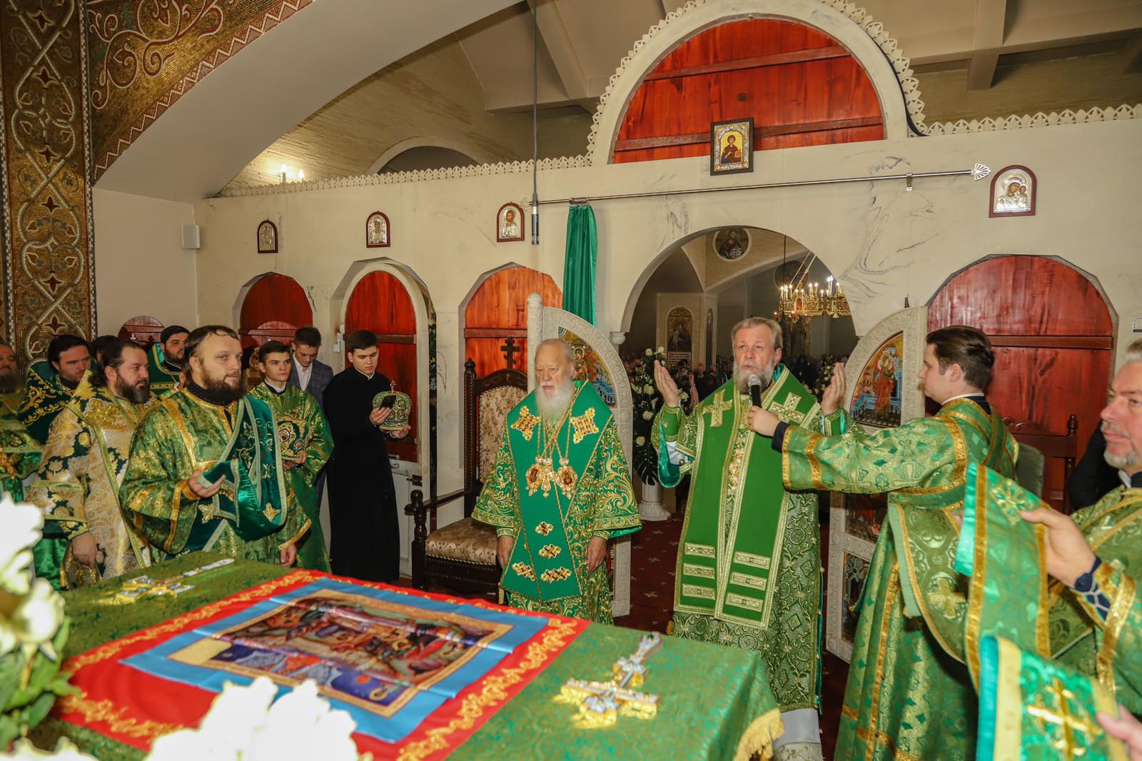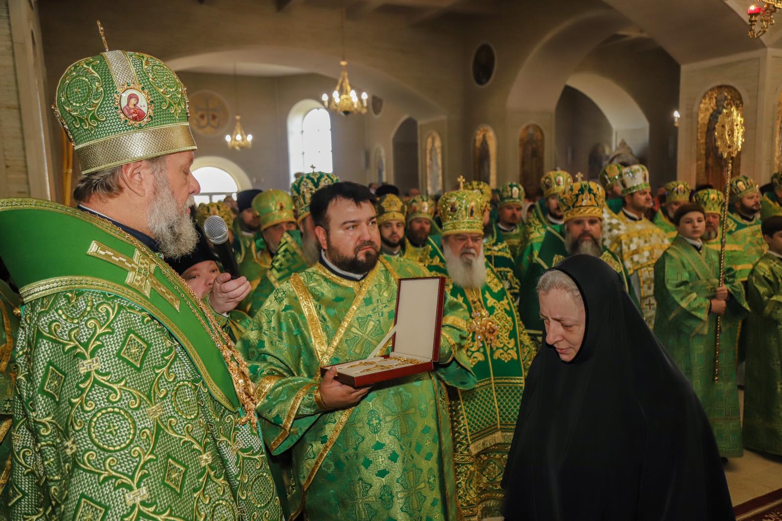 În cuvântul de felicitare, Înaltpreasfințitul AGAFANGHEL, Mitropolit de Odessa și Ismail, a înmânat din partea Preafericitului ONUFRIE, Mitropolitul Kievului și al întregii Ucraine, înalte ordine și medalii ale Bisericii Ortodoxe din Ucraina precum: Înaltpreasfințitului Arhiepiscop Petru, Ordinul „Sf. Irh.. Nicolae” iar Egumenei Parascheva, Medalia „Sf. Cneghină Olga”.