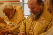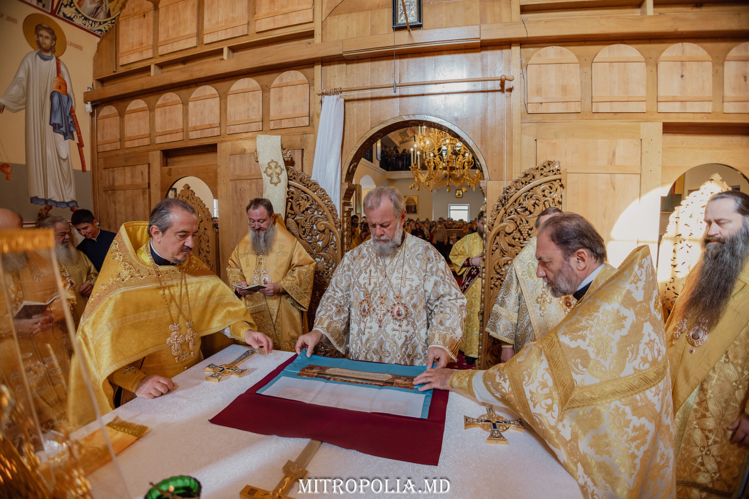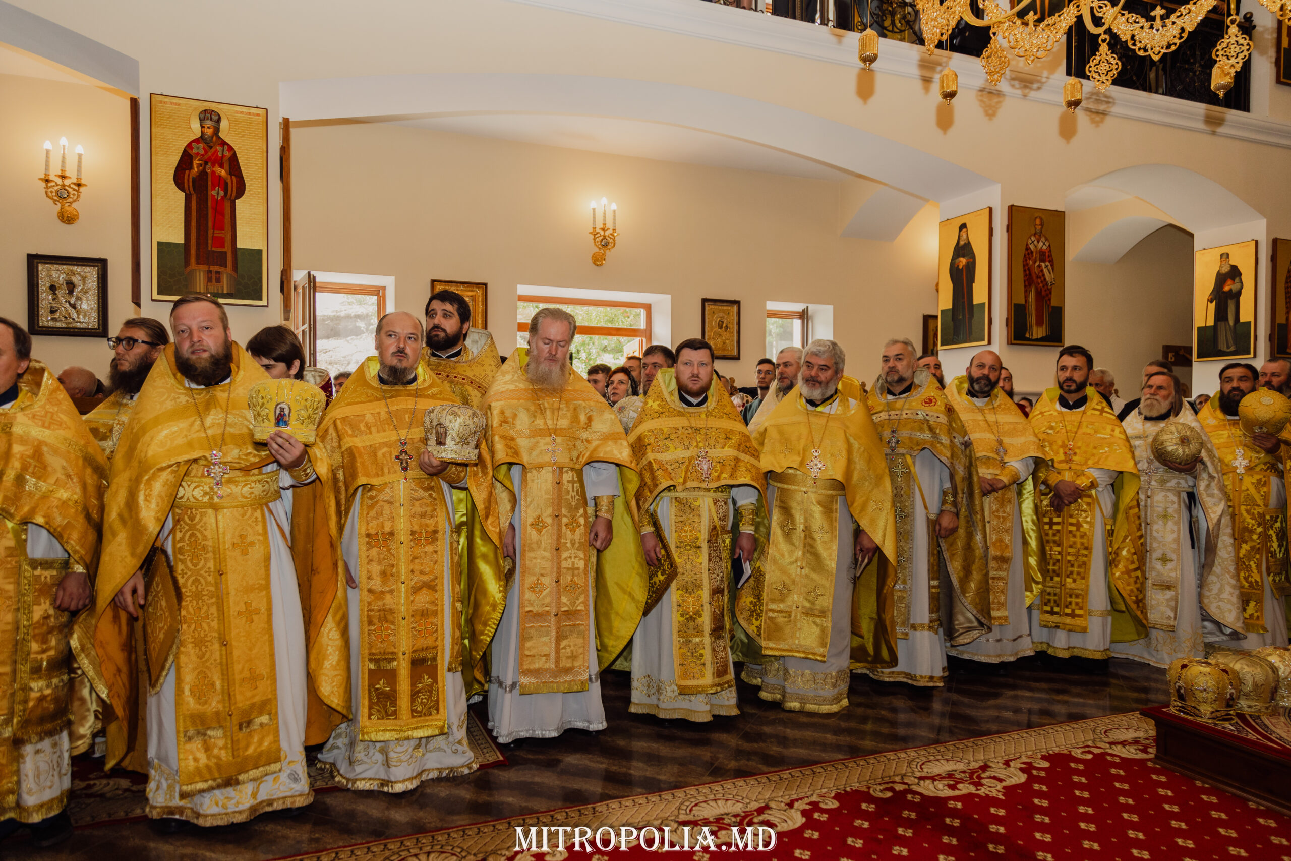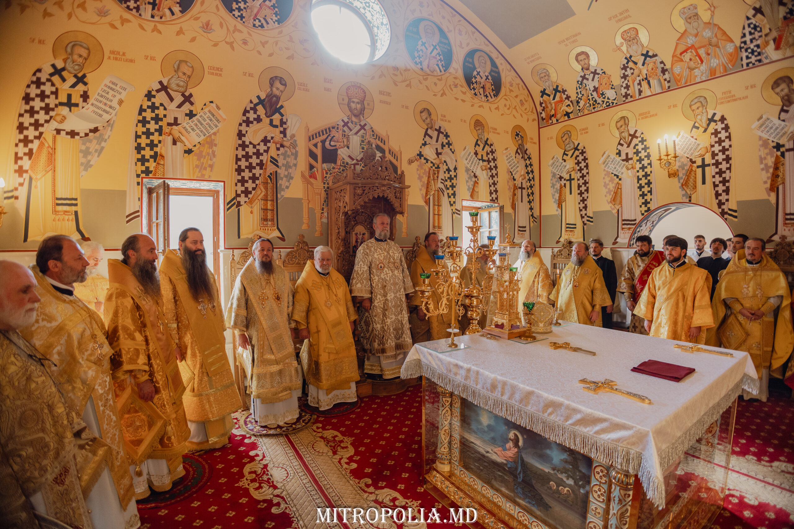 Înaltpreasfinției Sale i-au coliturghisit ÎPS Sava, arhiepiscop de Tiraspol și Dubăsari, ÎPS Nicodim, arhiepiscop de Edineț și Briceni, ÎPS Anatolie, arhiepiscop de Cahul și Comrat, PS Ioan, episcop de Soroca și Drochia, PS Siluan, episcop de Orhei, vicar mitropolitan, PS Filaret, episcop de Căpriana, vicar mitropolitan, PS Nicolae, episcop de Ceadîr-Lunga, vicar al Eparhiei de Cahul și Comrat, PS Patrocl, episcop de Dondușeni, vicar al Eparhiei de Edineț și Briceni, prot. mitr. Vadim Cheibaș, secretar mitropolitan și un impunător sobor de preoţi şi diaconi.