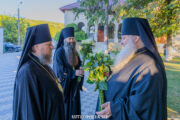 În dimineața zilei, Mitropolitul a fost întâmpinat de către PC Arhim. Irinarh (Costru), starețul Mănăstirii împreună cu soborul de slujitori, obștea monahală și creștinii veniți la Sfânta Liturghie.