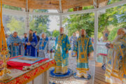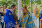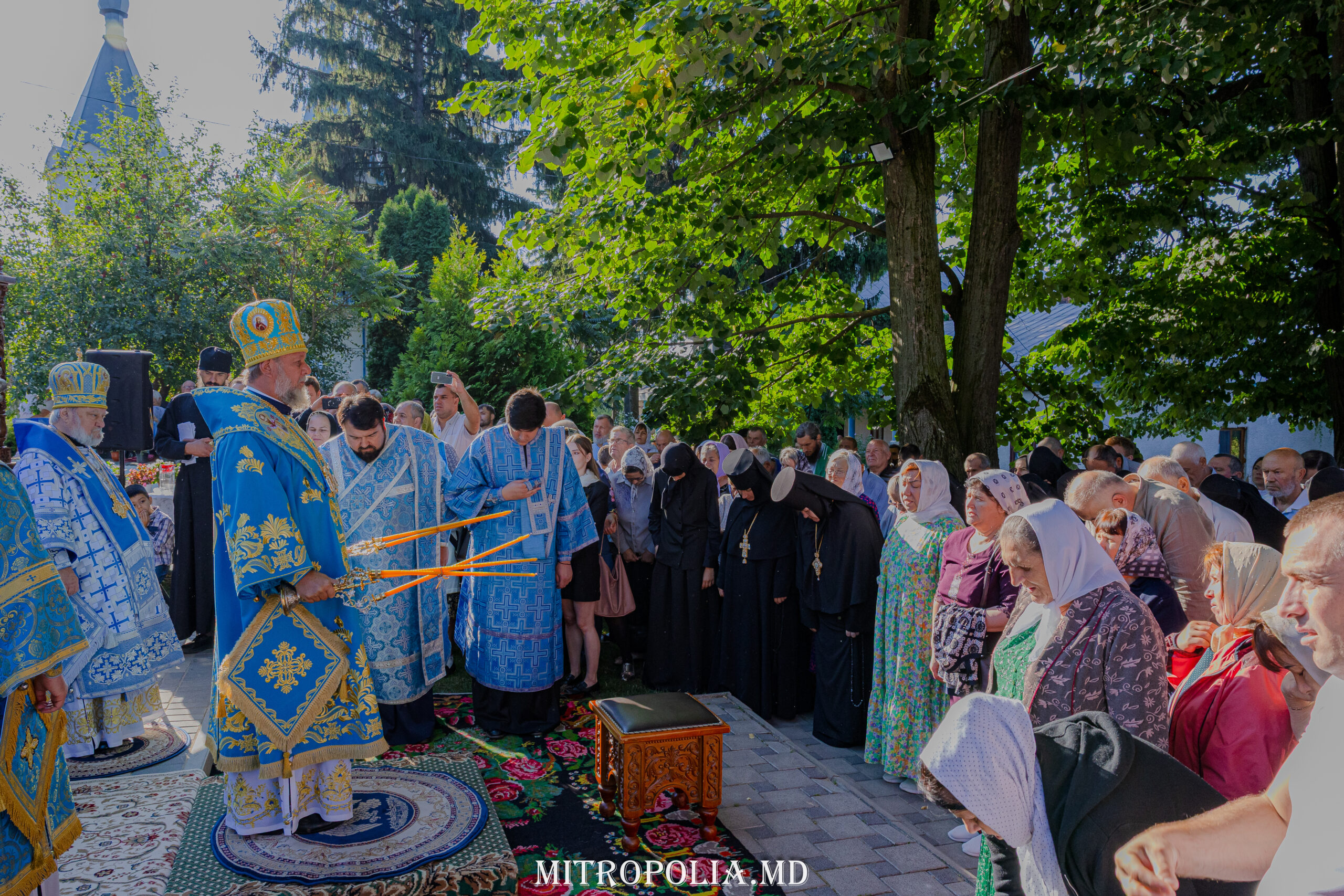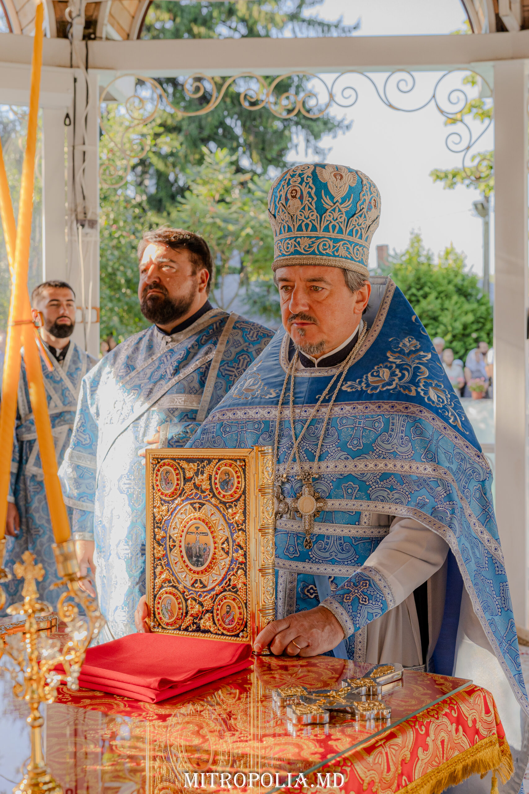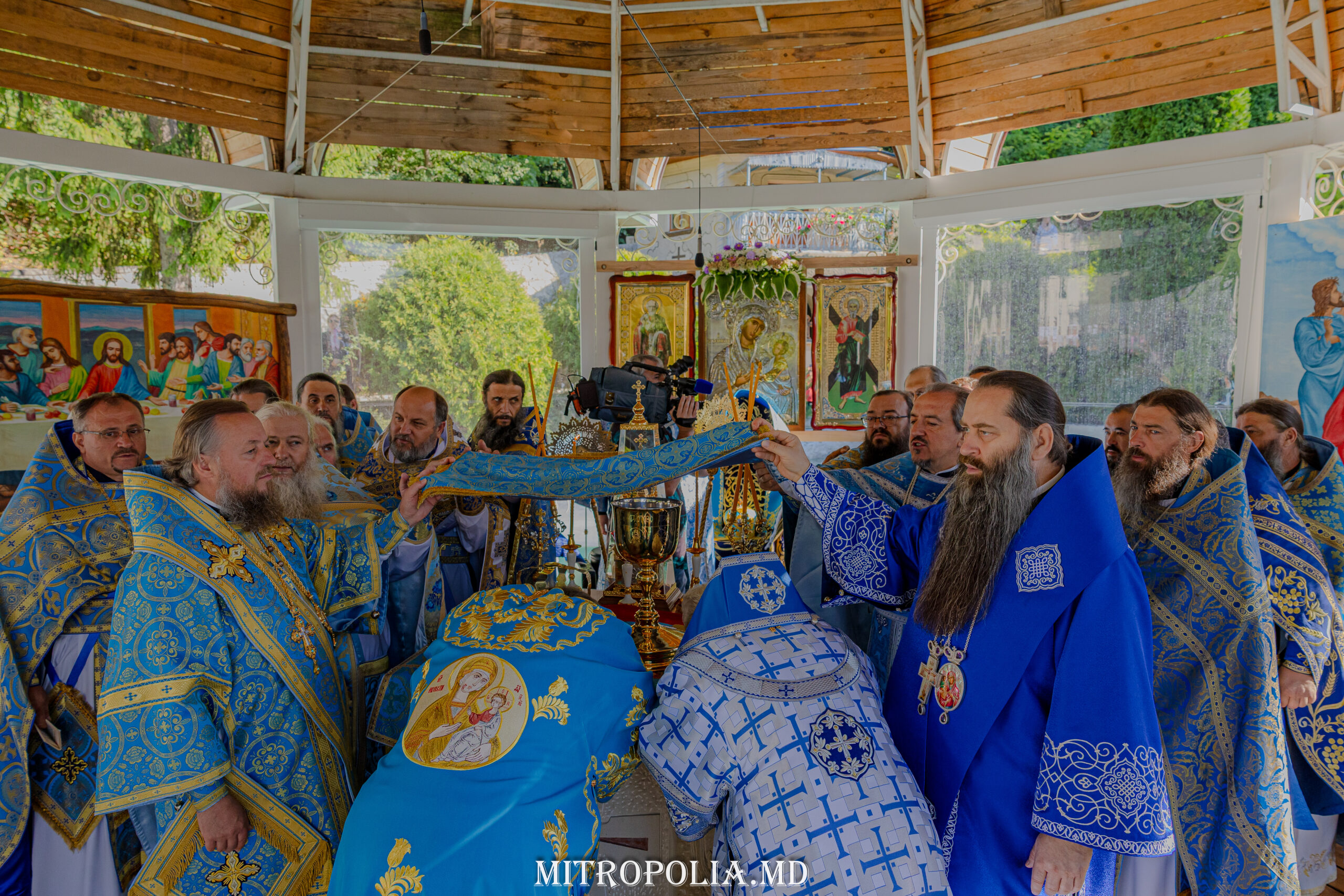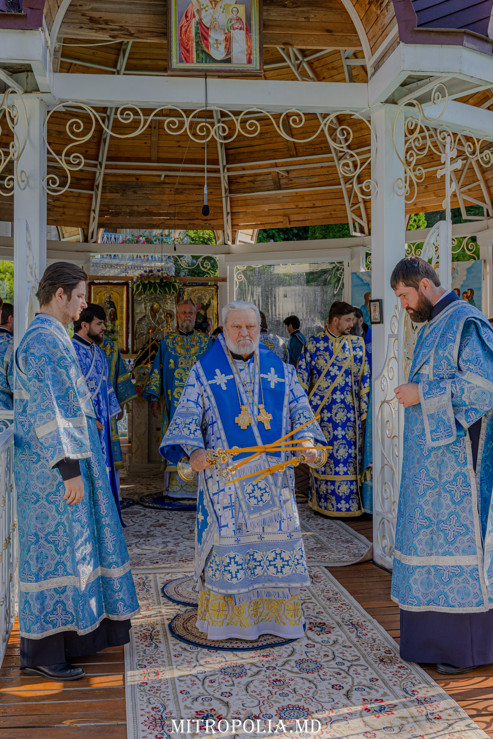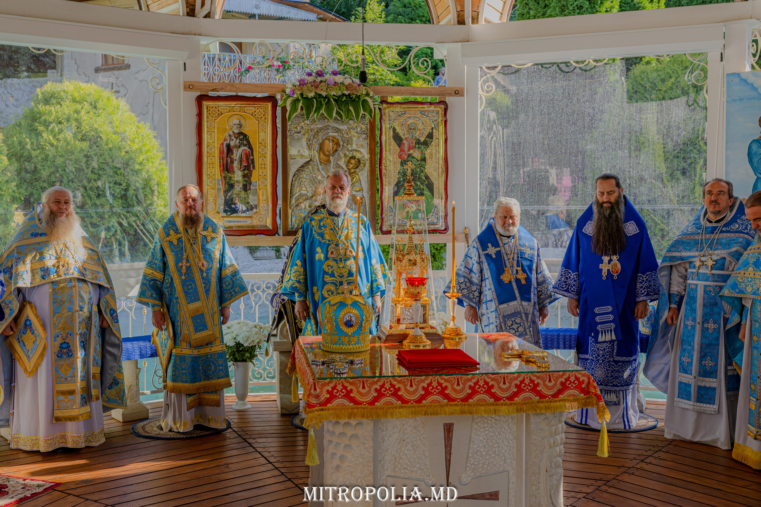 Înaltpreasfinția Sa a avut coliturghisitori pe ÎPS Anatolie, Arhiepiscop de Cahul și Comrat, ÎPS Ioan, Arhiepiscop de Soroca și Drochia, PS Filaret, Episcop de Căpriana și vicar al Mitropoliei, prot. mitr. Vadim Cheibaș, secretar mitropolitan, PC Arhim. Irinarh (Costru), starețul așezământului monahal, PC Arhim. Ioan (Okropiridze), duhovnicul Mănăstirii de Maici “Adormirea Maicii Domnului” din Tbilisi, Georgia și un sobor de preoți și diaconi prezenți la Serviciul Divin.
