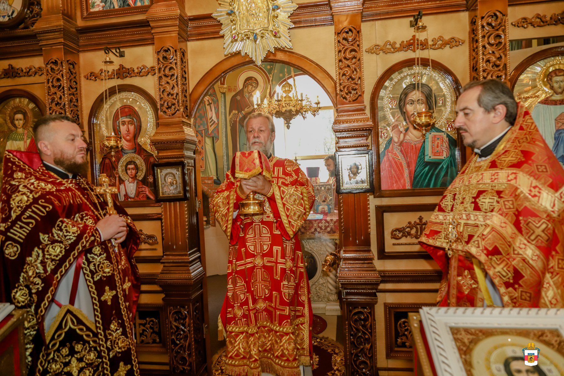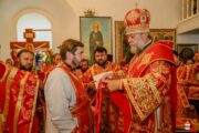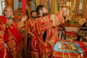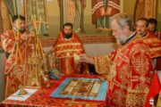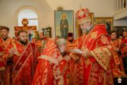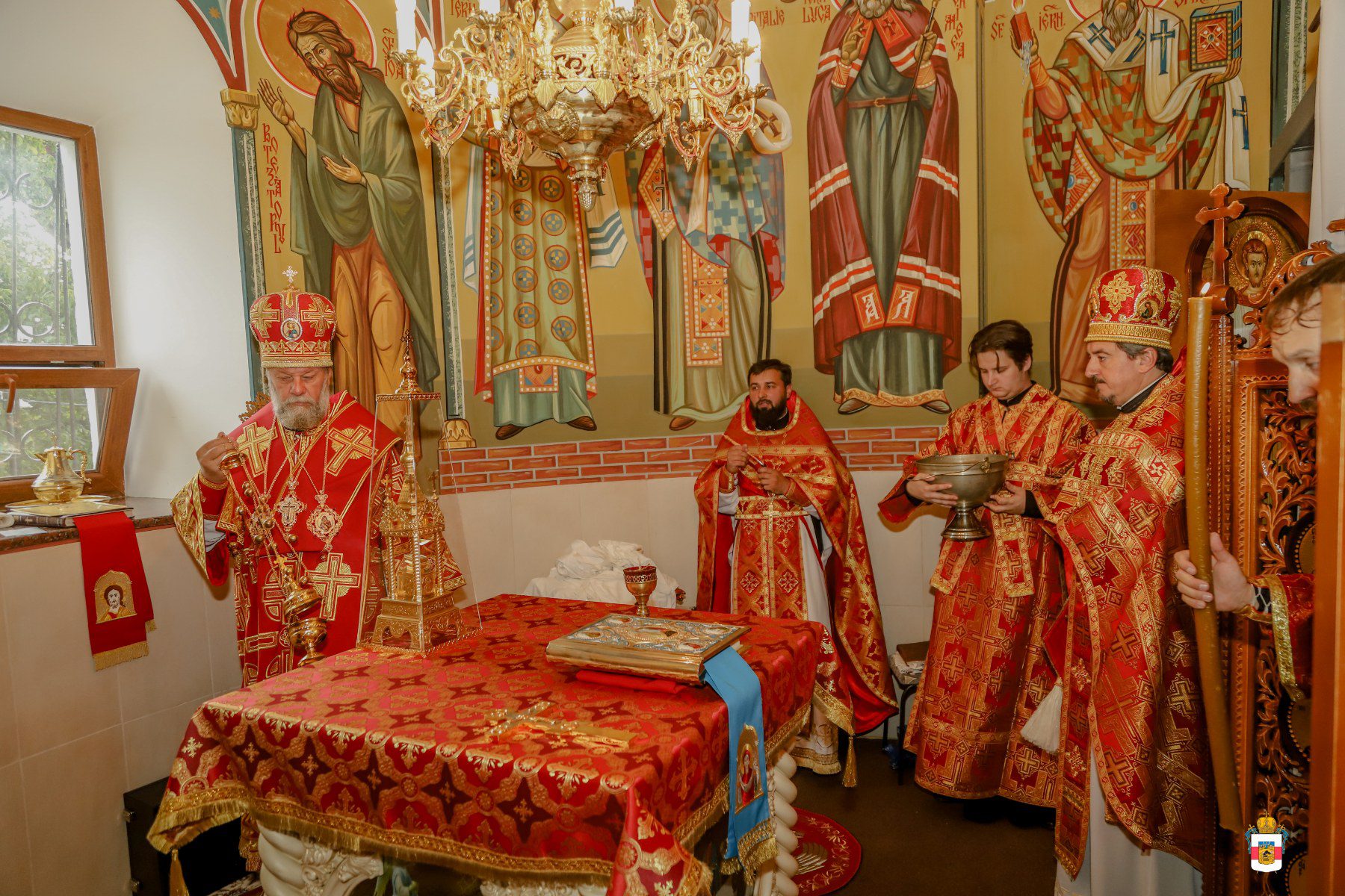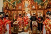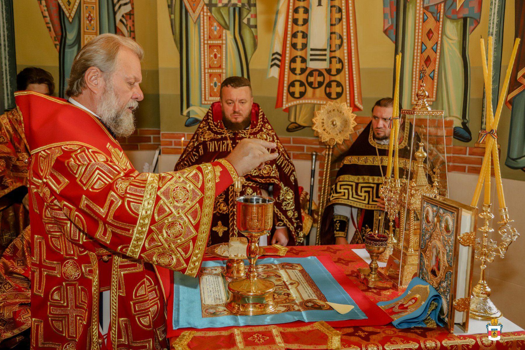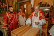 A urmat slujba de sfințire a noului prestol, după care Întâistătătorul a dat binecuvântare pentru Sfânta Liturghie.