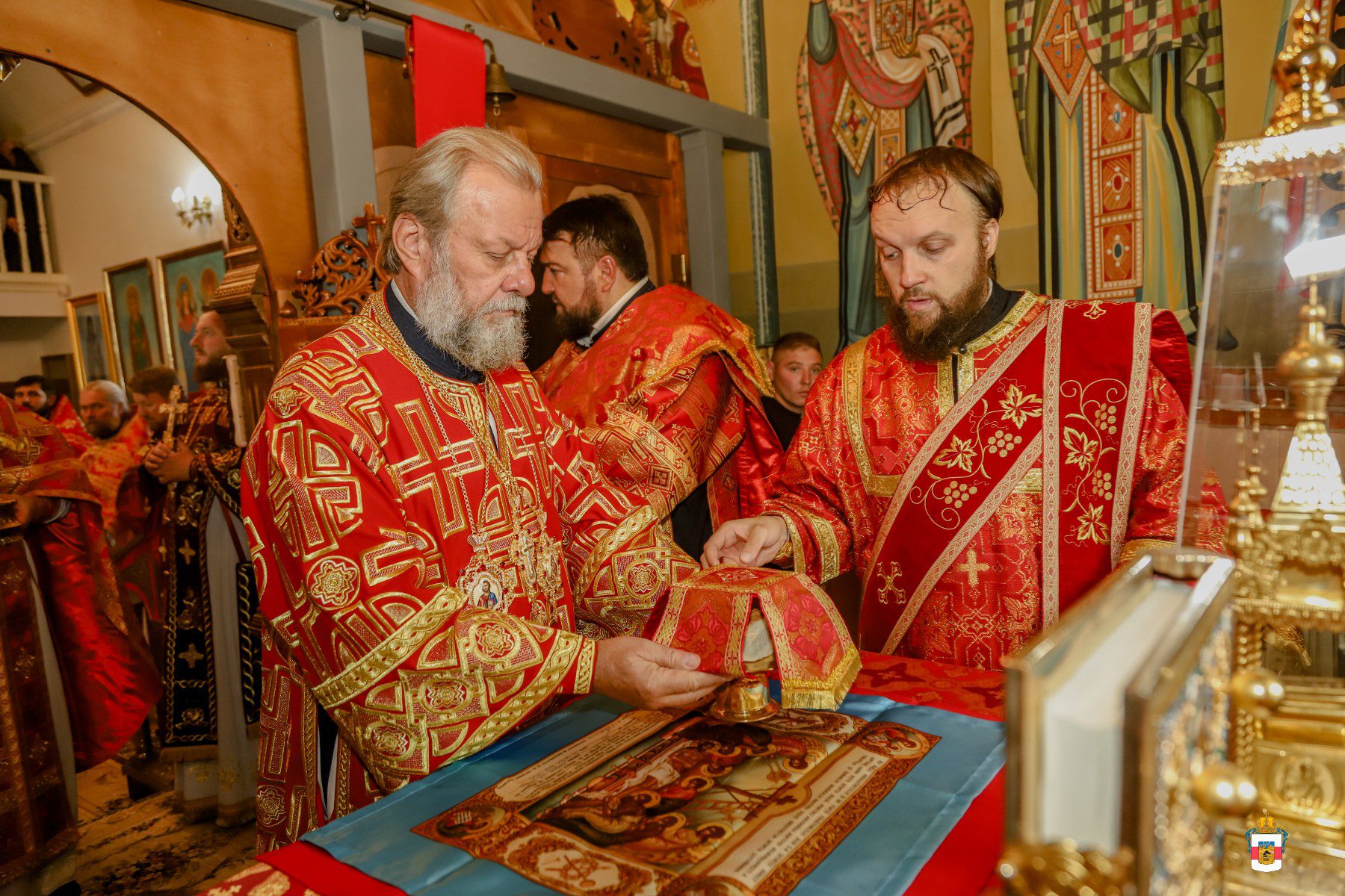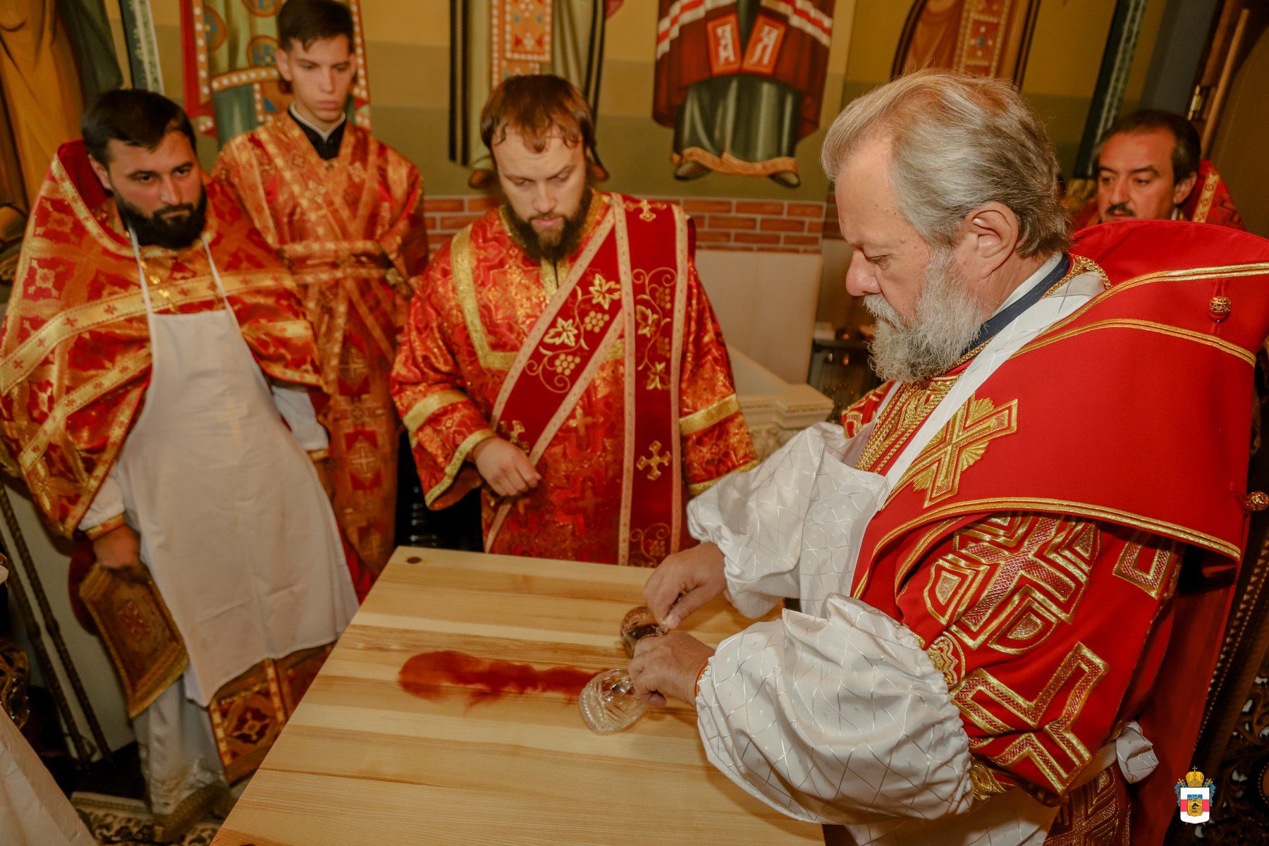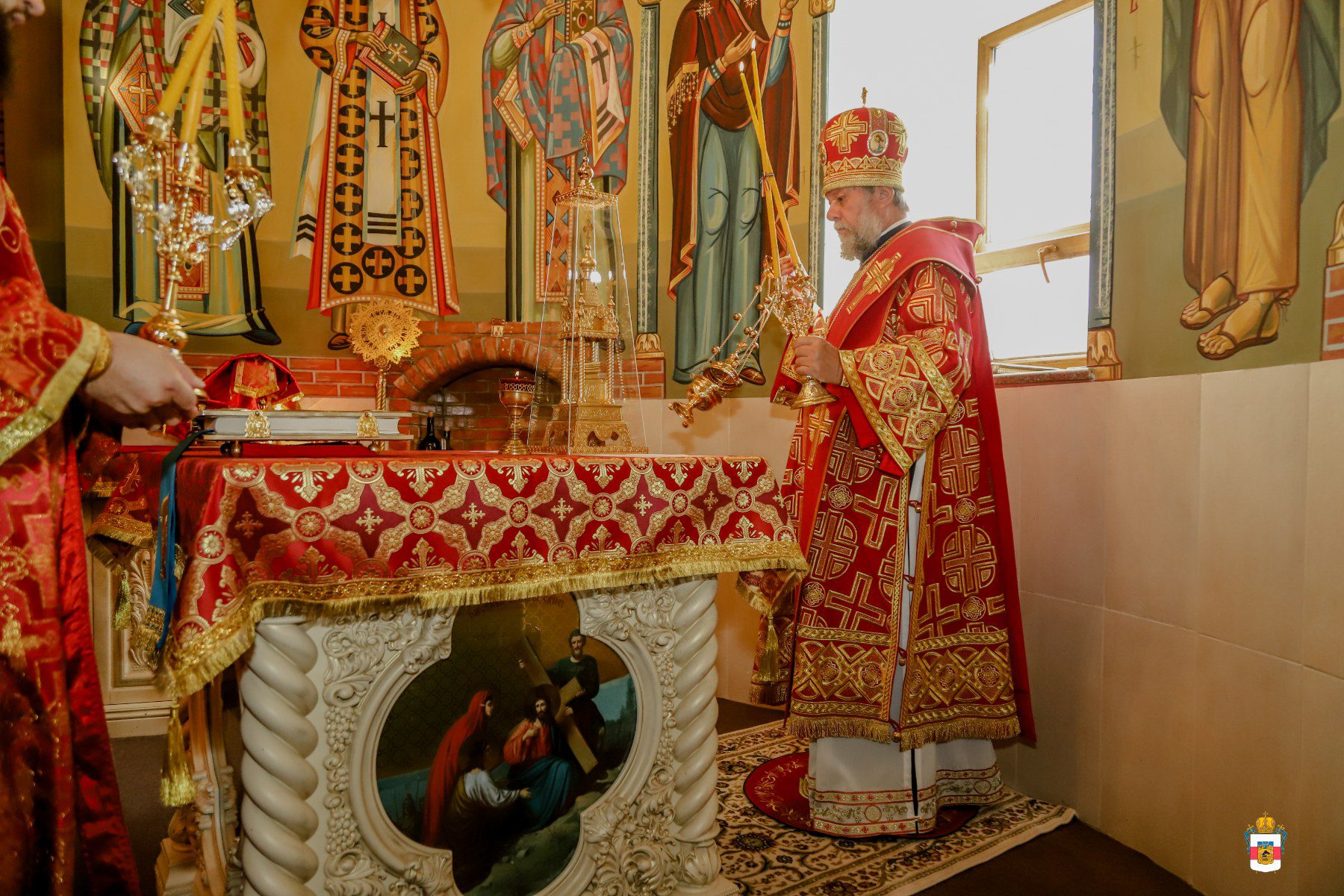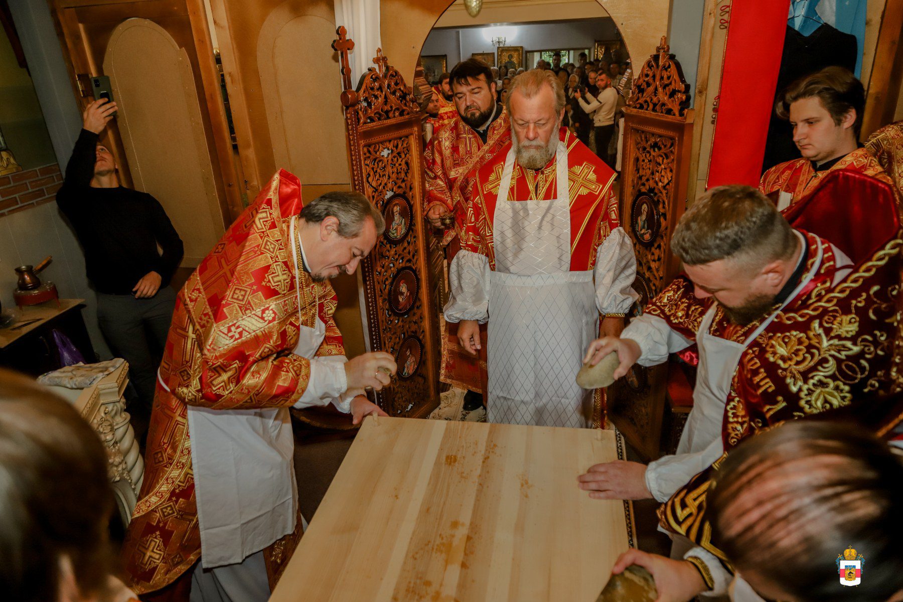 A urmat slujba de sfințire a noului prestol, după care Întâistătătorul a dat binecuvântare pentru Sfânta Liturghie.