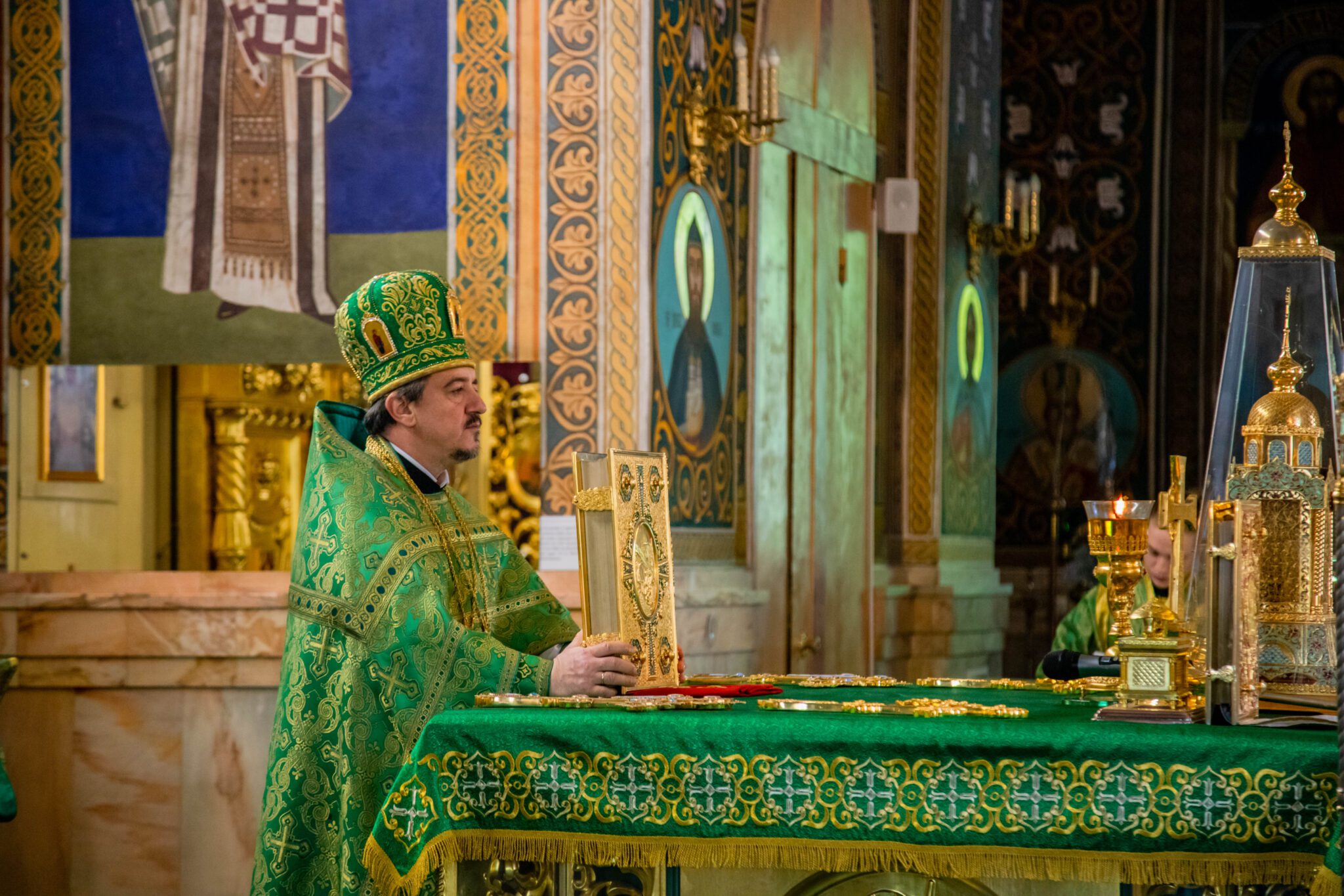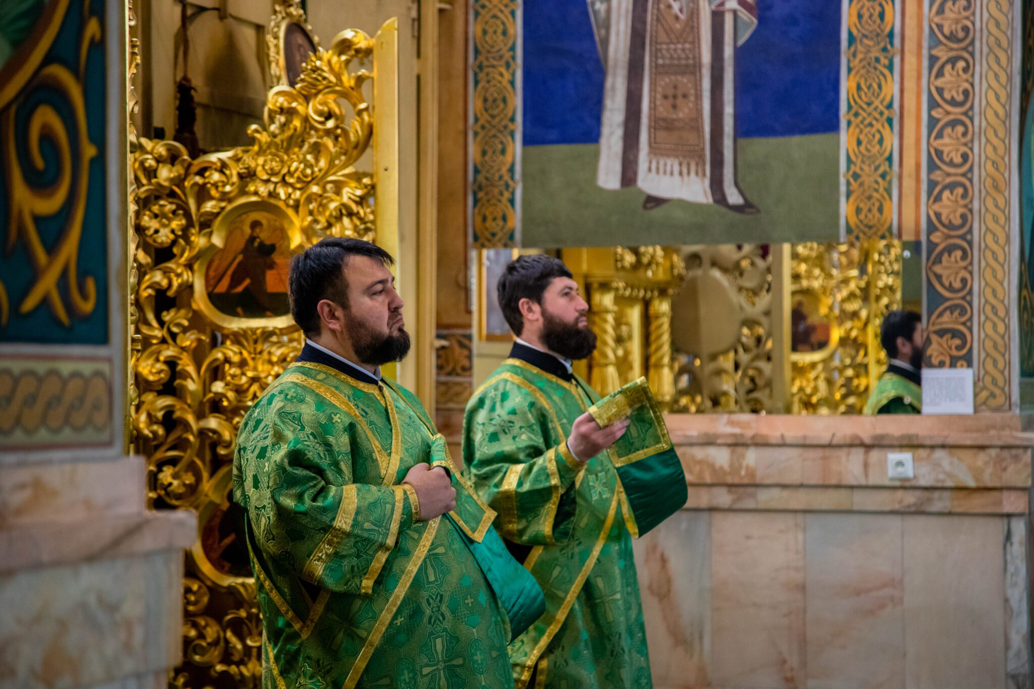 Întâistătătorului Bisericii Ortodoxe din Moldova i-au coliturghisit: Secretarul mitropolitan prot. mitr. Vadim Cheibaș și soborul de slujitori ai catedralei.