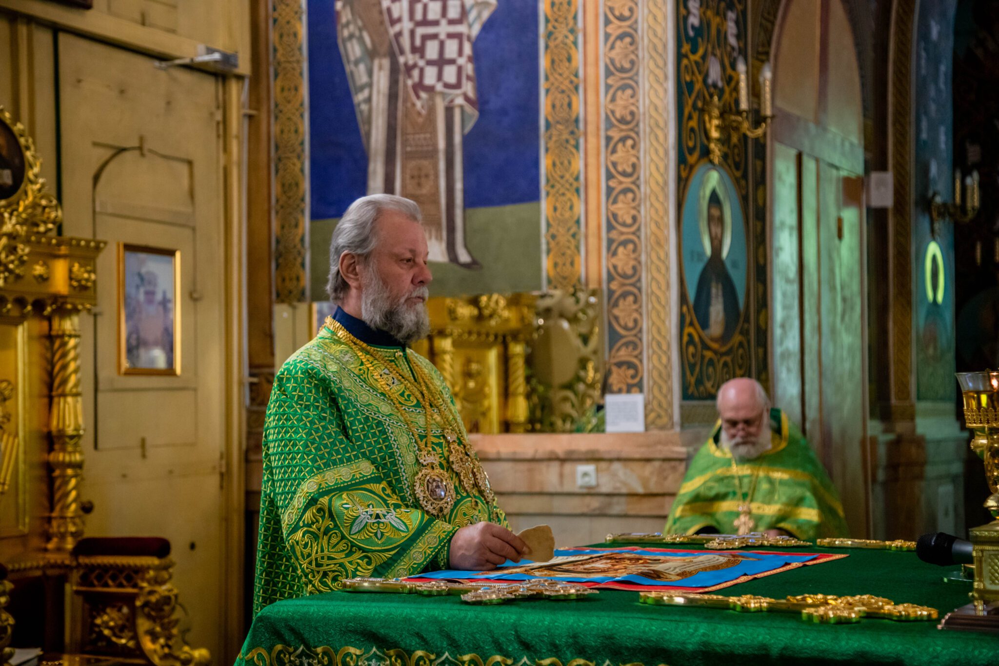 După Sfânta Liturghie a fost oficiată slujba Vecerniei, în timpul căreia, ÎPS Mitropolit Vladimir și preoții prezenți, au citit rugăciunile de îngenunchere, prin care s-a mulțumit Bunului Dumnezeu pentru binefacerile Sale, cerându-se și în continuare mila și îndurarea Atotțiitorului față de poporul Său.