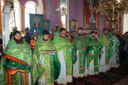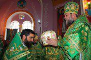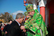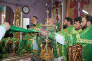 Serviciul divin, la care au participat alături de Înaltpreasfinţia Sa, un numeros sobor preoțesc, a început cu rânduiala de sfinţire a bisericii, după care, la Vohodul Mic, părintele-paroh Prot. Marcel Bîrgău, a fost decorat de către Mitropolit cu dreptul de a purta Mitră, pentru munca depusă cu sârguinţă spre binele şi mărirea Bisericii Ortodoxe din Moldova.