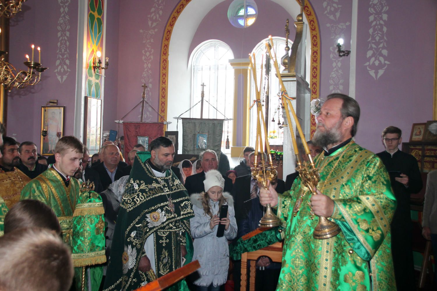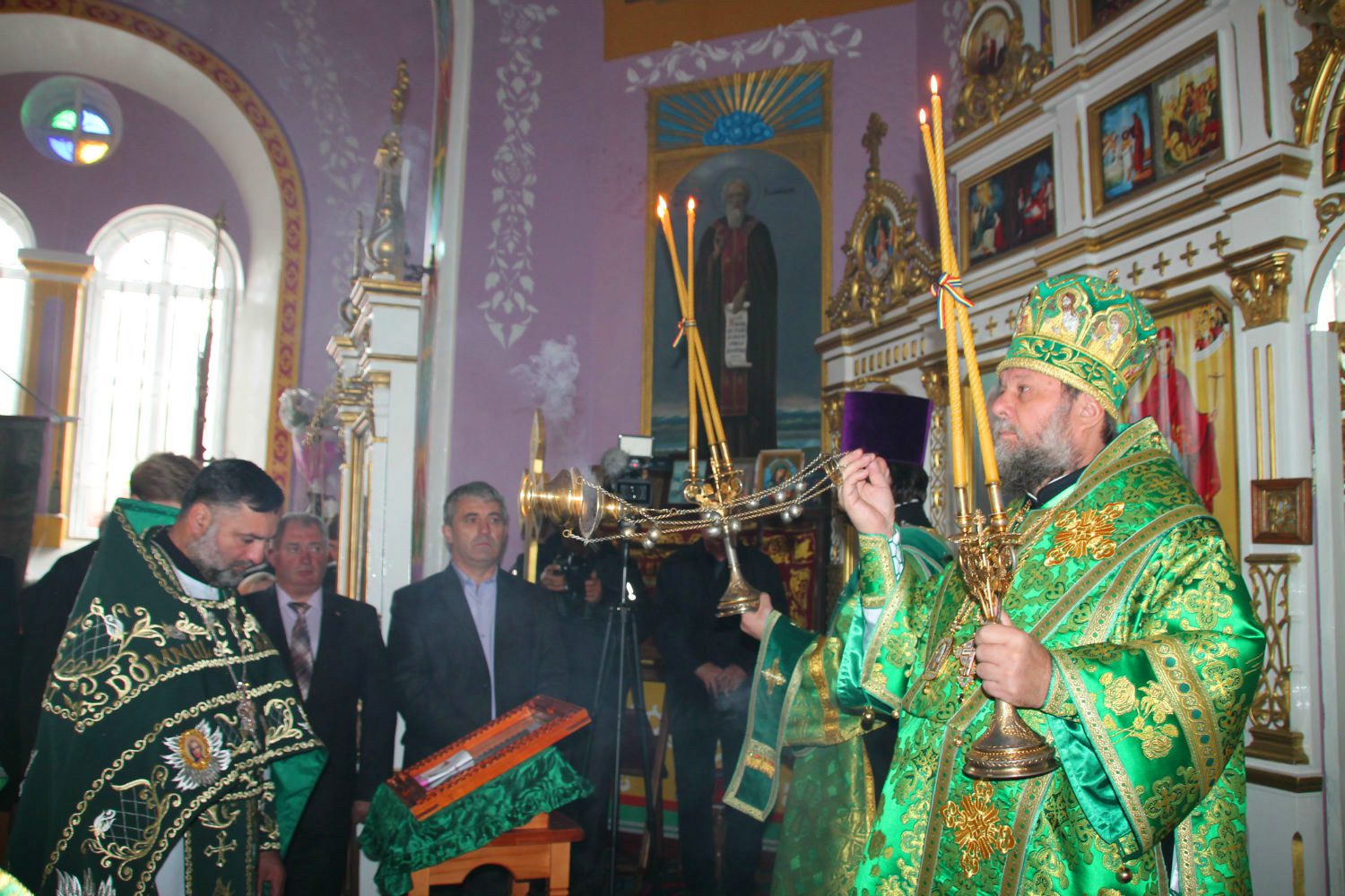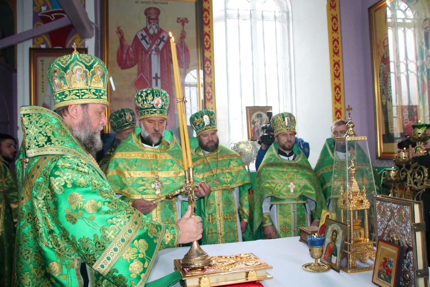 Serviciul divin, la care au participat alături de Înaltpreasfinţia Sa, un numeros sobor preoțesc, a început cu rânduiala de sfinţire a bisericii, după care, la Vohodul Mic, părintele-paroh Prot. Marcel Bîrgău, a fost decorat de către Mitropolit cu dreptul de a purta Mitră, pentru munca depusă cu sârguinţă spre binele şi mărirea Bisericii Ortodoxe din Moldova.