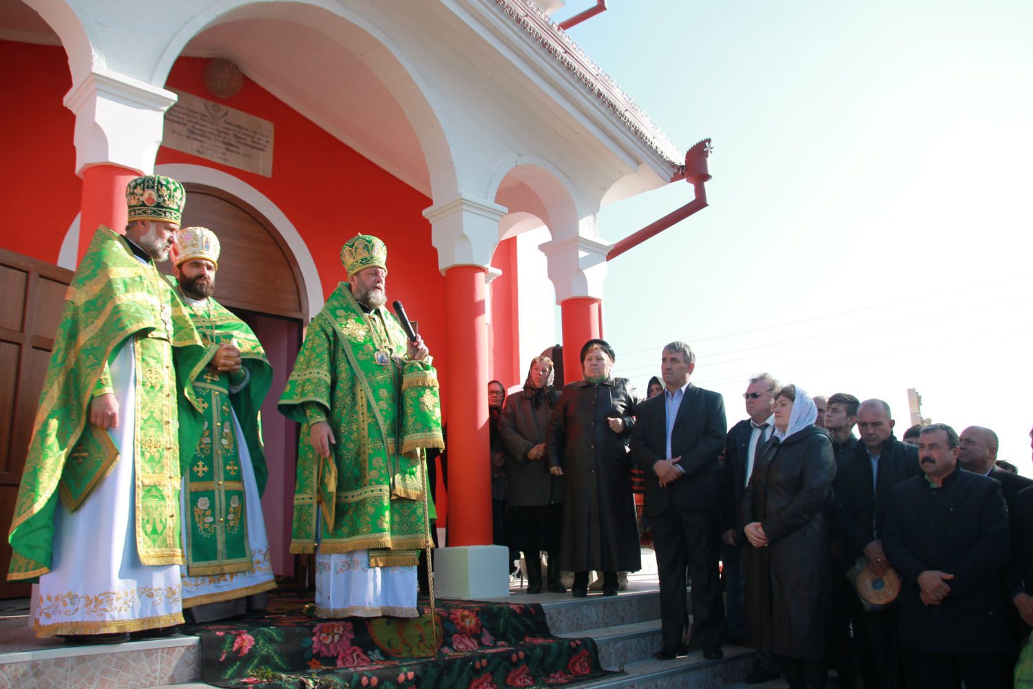 După Liturghie a fost săvârşită sfinţirea exterioară a bisericii, iar mai târziu a urmat un Tedeum de mulţumire.
