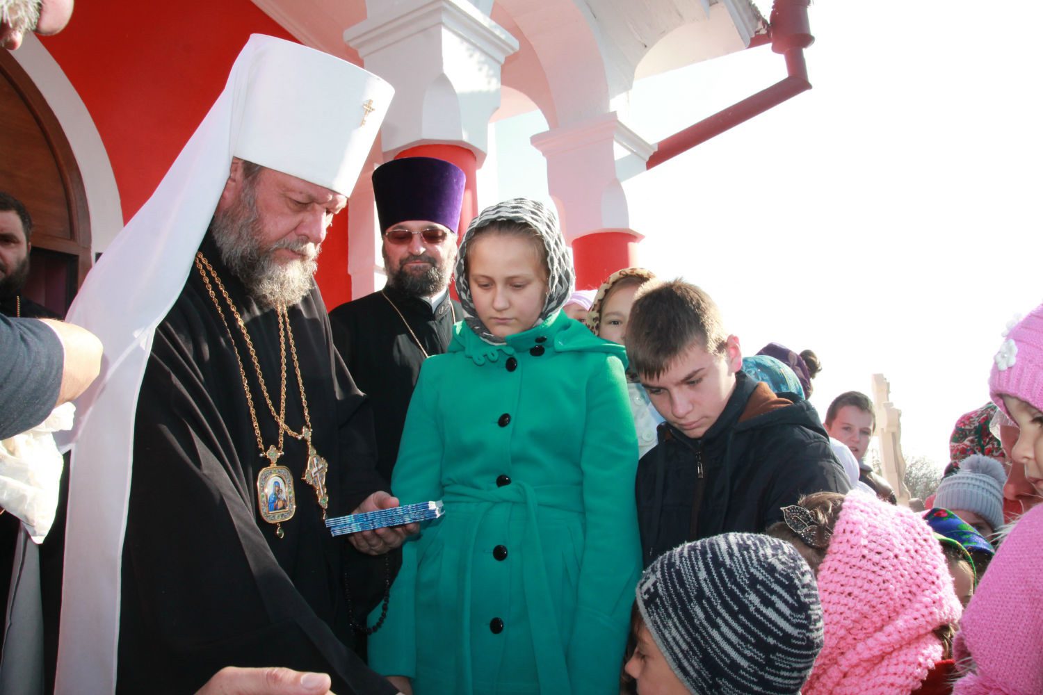 La final, Vlădica Vladimir a împărțit copiilor adunaţi cărțulii de rugăciune și iconiţe cu chipul Mântuitorului, care să le fie spre întărire și creștere duhovnicească şi amintire a acestei frumoase întâlniri.