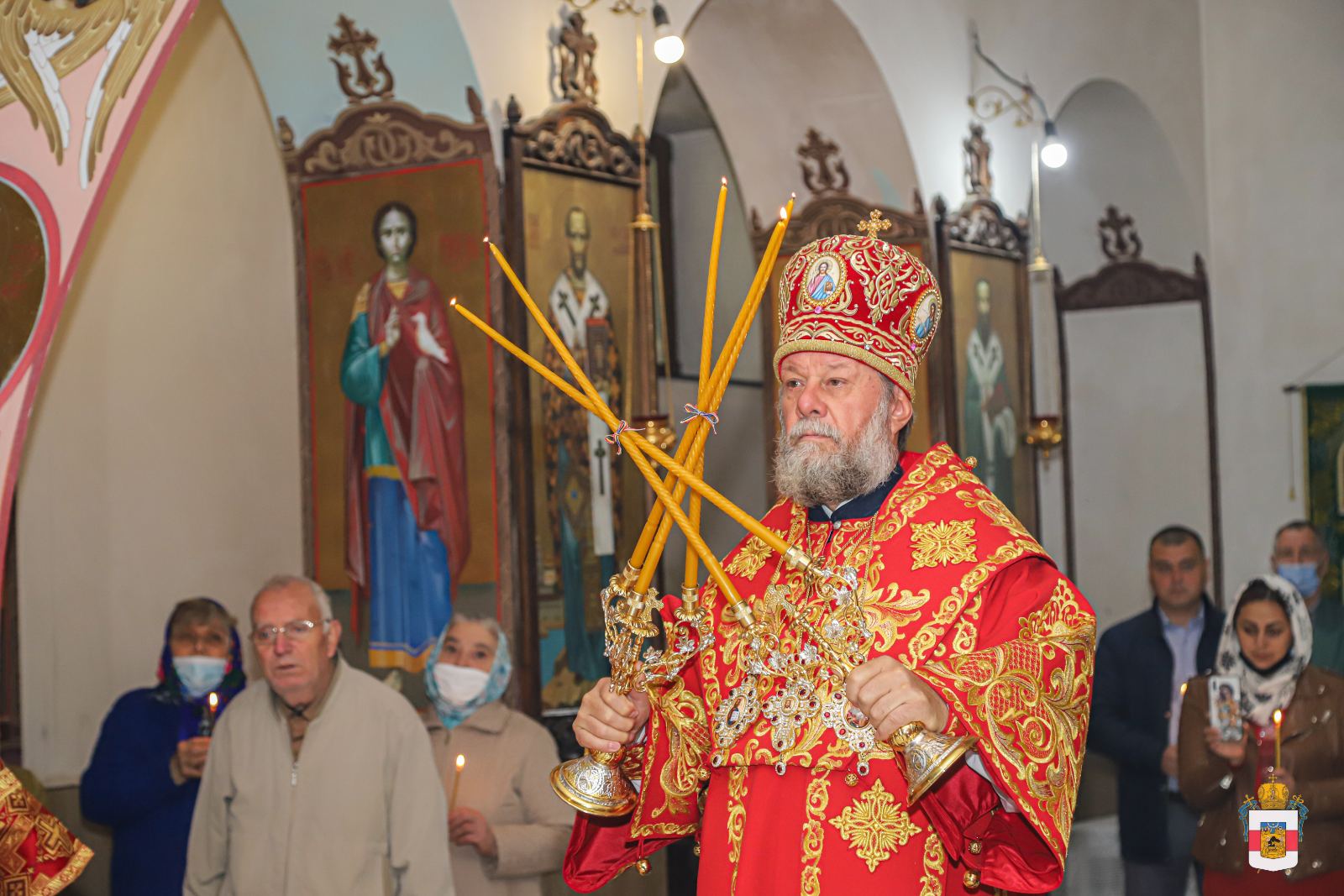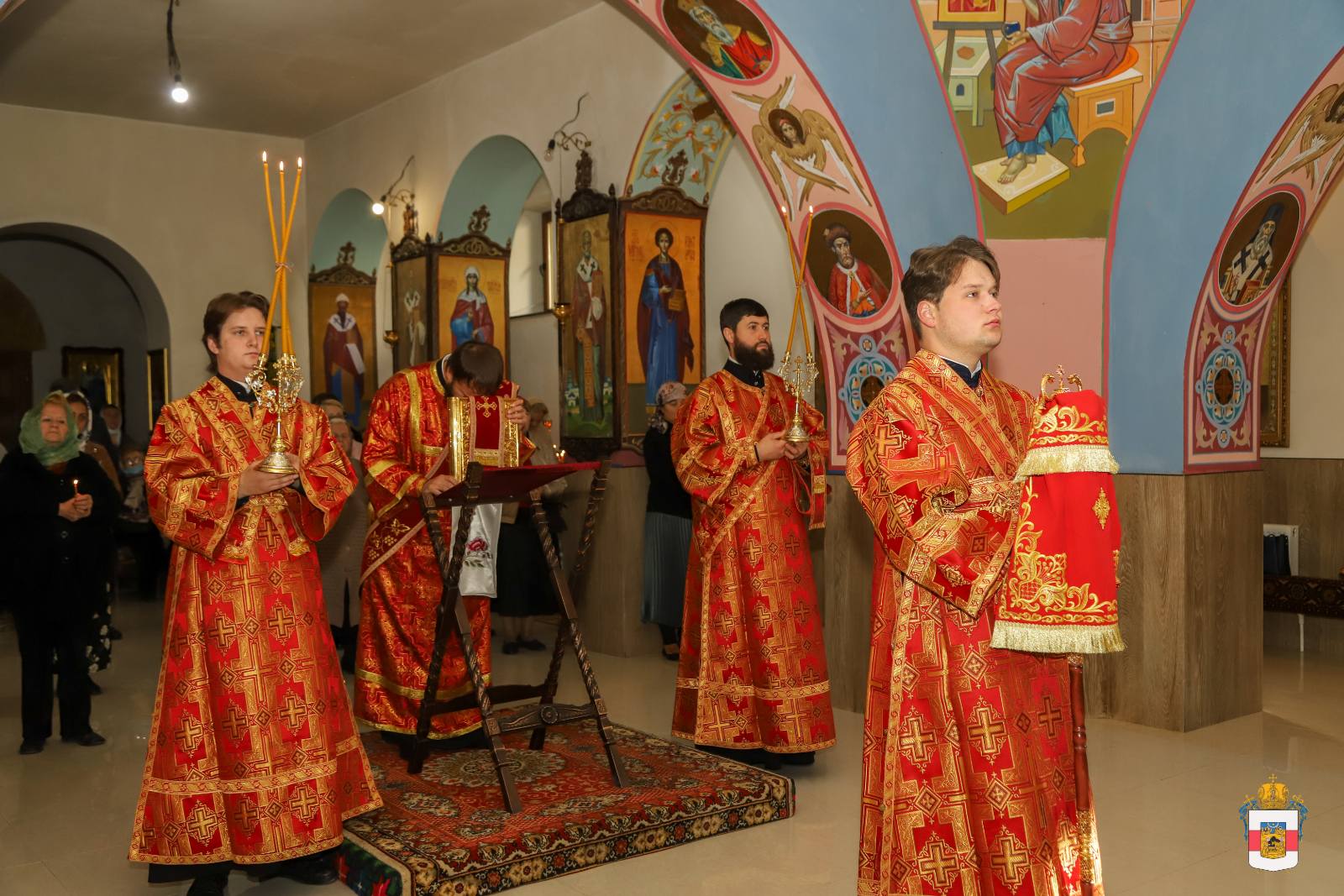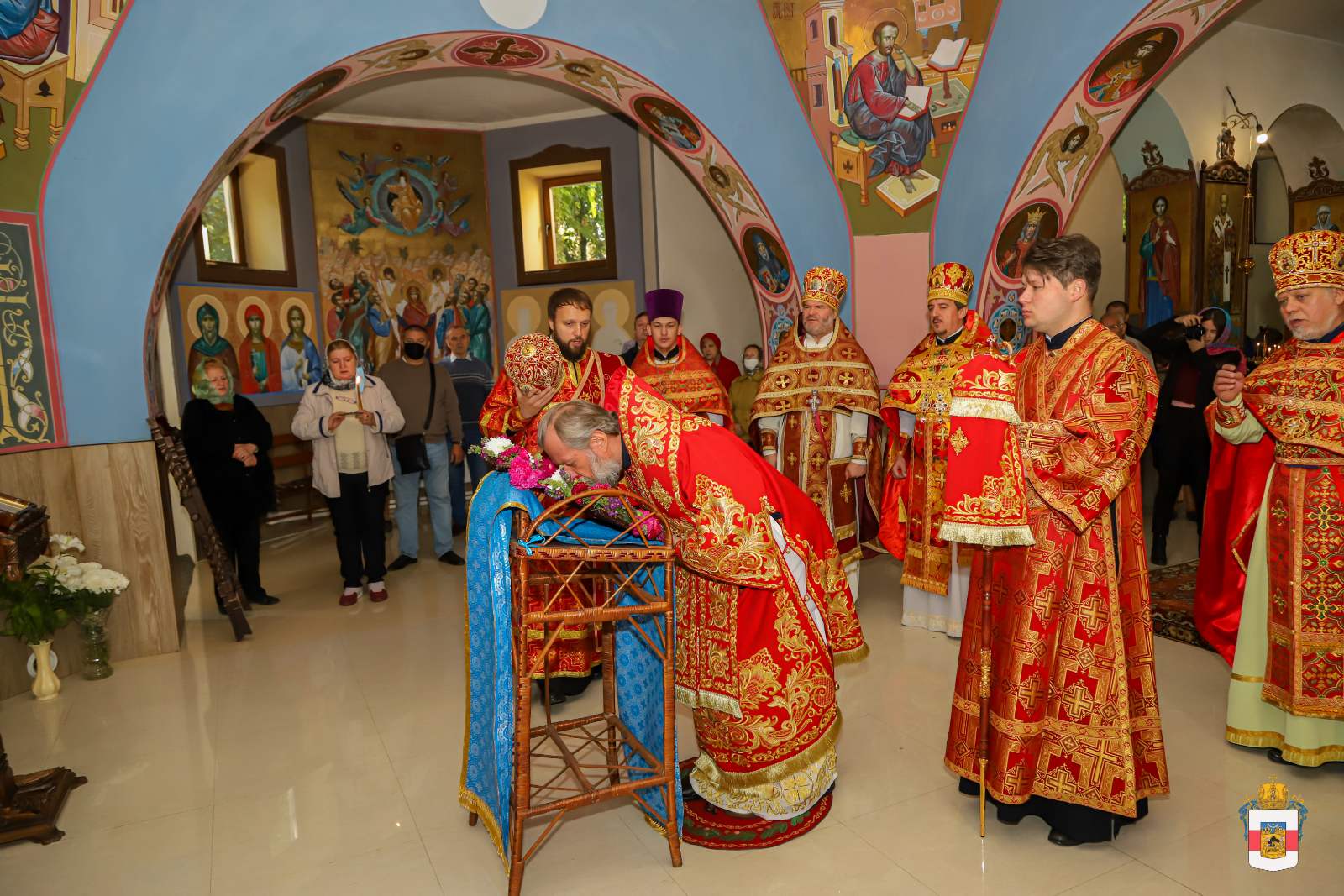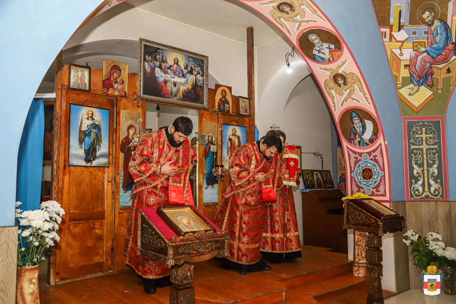 Slujba arhierească a reunit în rugăciune credincioșii comunității, printre care și ctitorii și binefăcătorii noii biserici, ce s-au rugat într-un gând și au mijlocit în fața Sfinteler Mironosițe ajutor și ocrotire cerească.