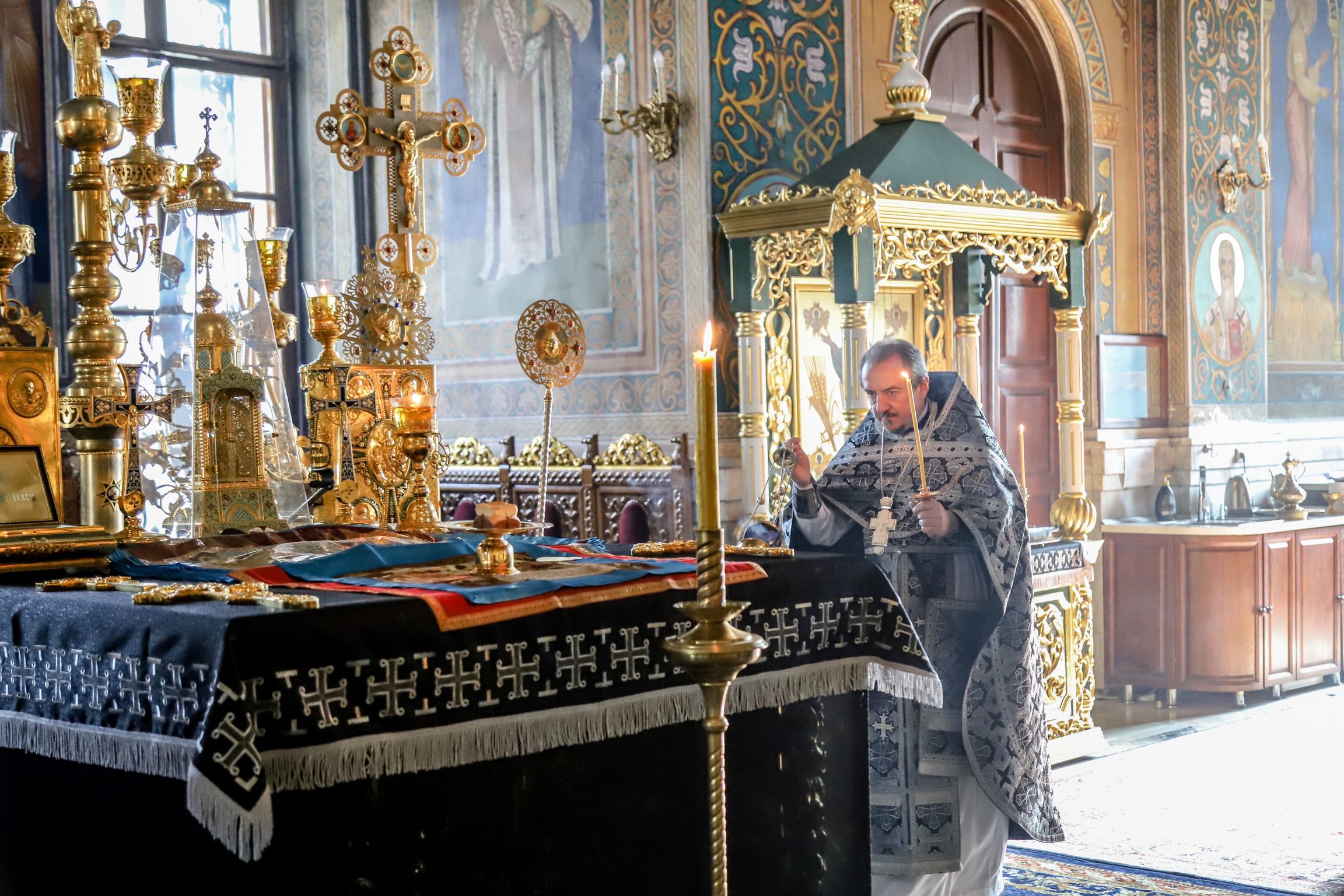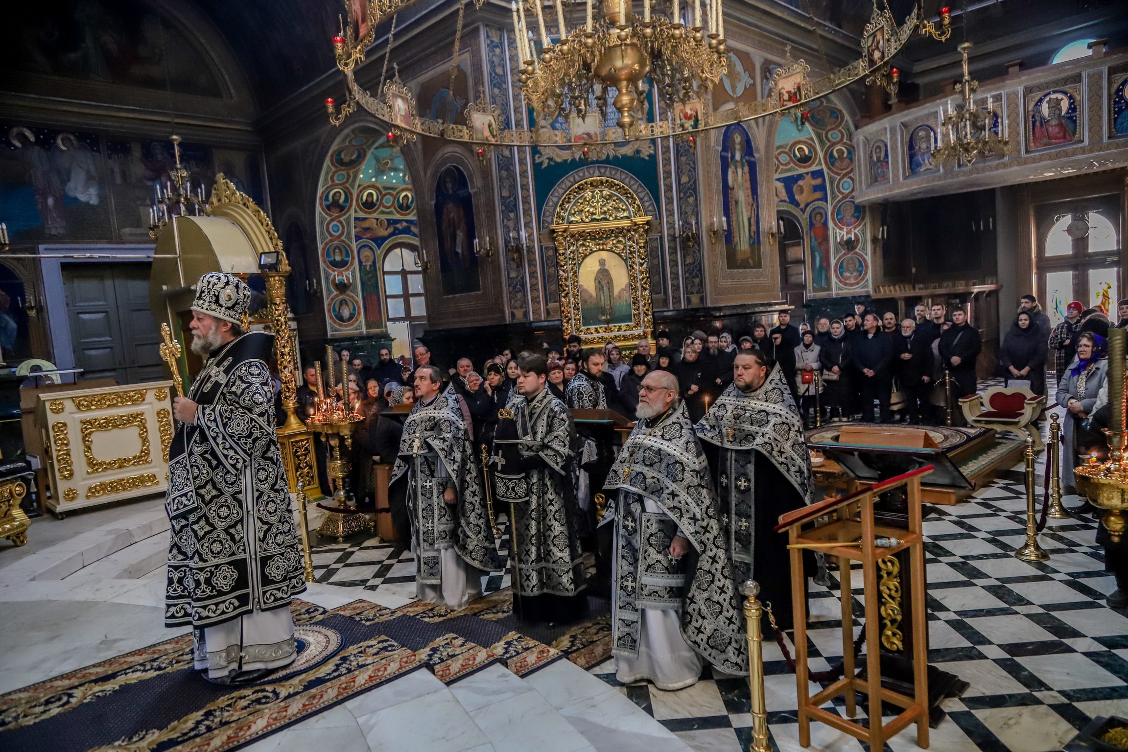Înaltpreasfinției Sale i-au coliturghisit: prot. mitr. Vadim Cheibaș, secretar mitropolitan și eclesiarh al catedralei împreună cu soborul preoțesc prezent la rugăciune.