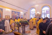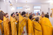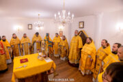 Serviciul divin a început cu rânduiala Sfințirii Sfintei Mese de către Înaltpreasfințitul Vladimir, Mitropolitul Chișinăului și al întregii Moldove, după care a urmat Dumnezeiasca Liturghie la care au participat PC Arhim. Nectarie (Gherman), prorector al ATOM, prot. Alexandru Comendant, decan al facultății de Teologie și un sobor de preoți și diaconi, studenți și absolvenți ai acestei instituții teologice precum și mulțime de credincioși.