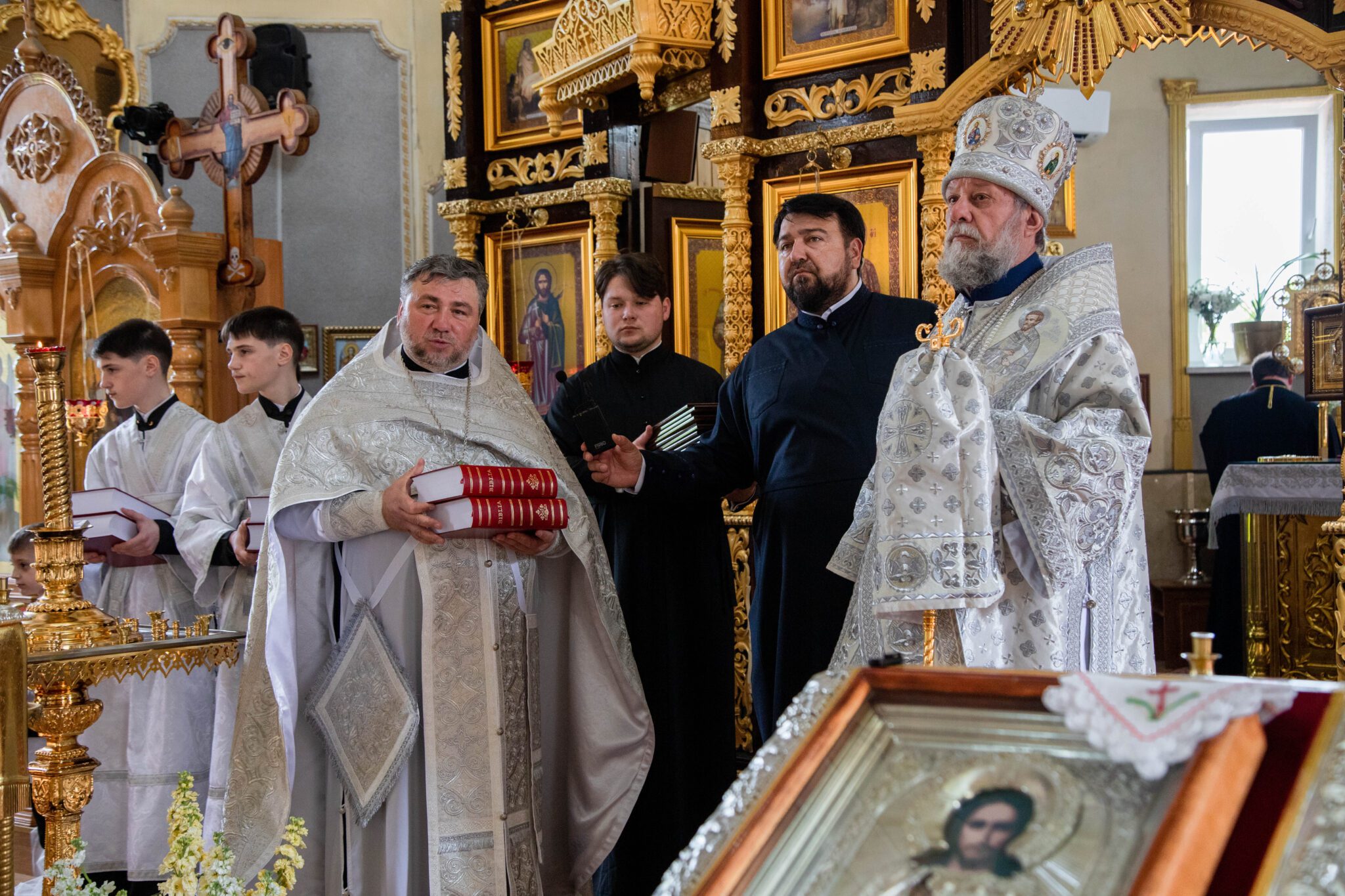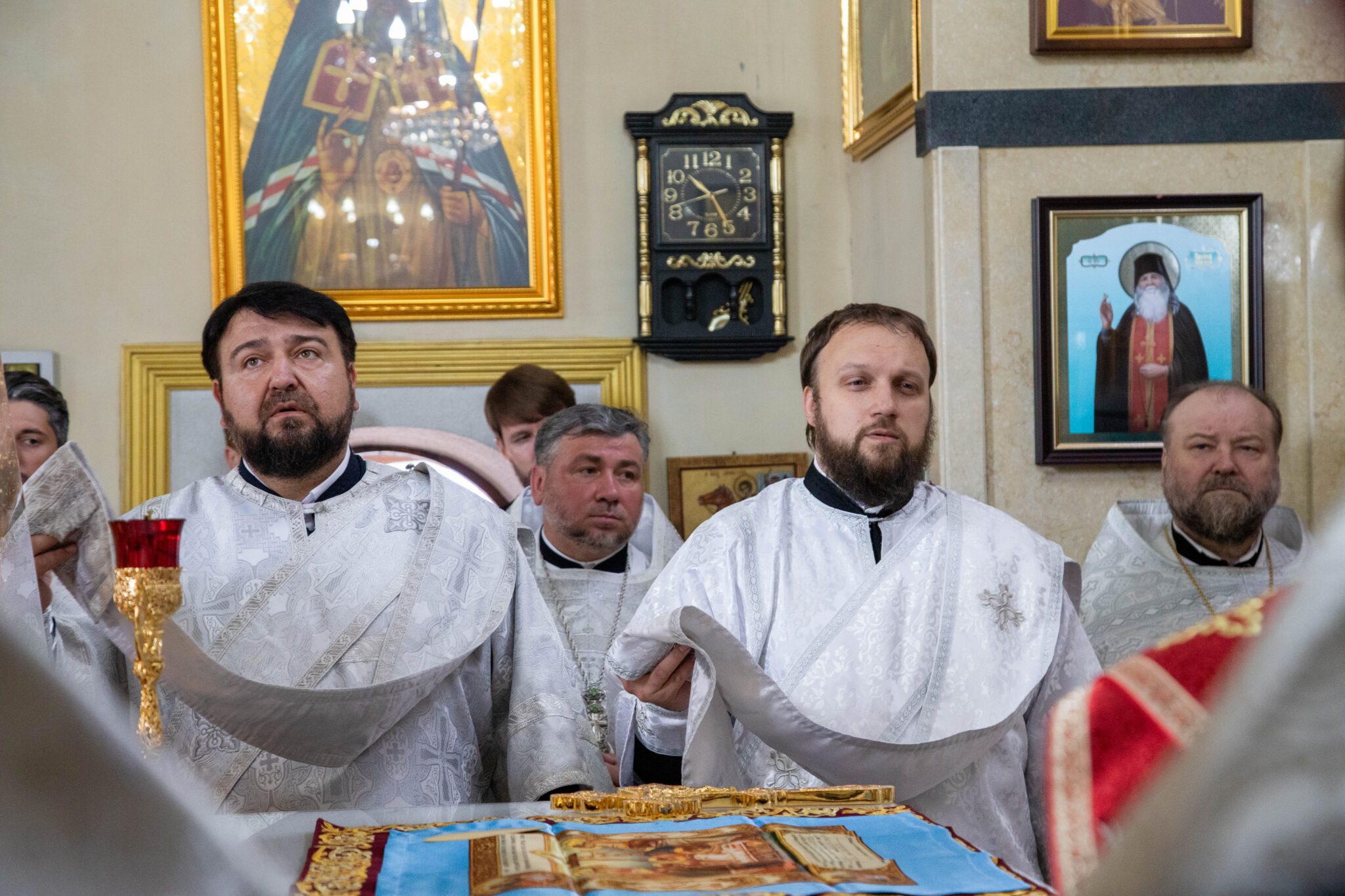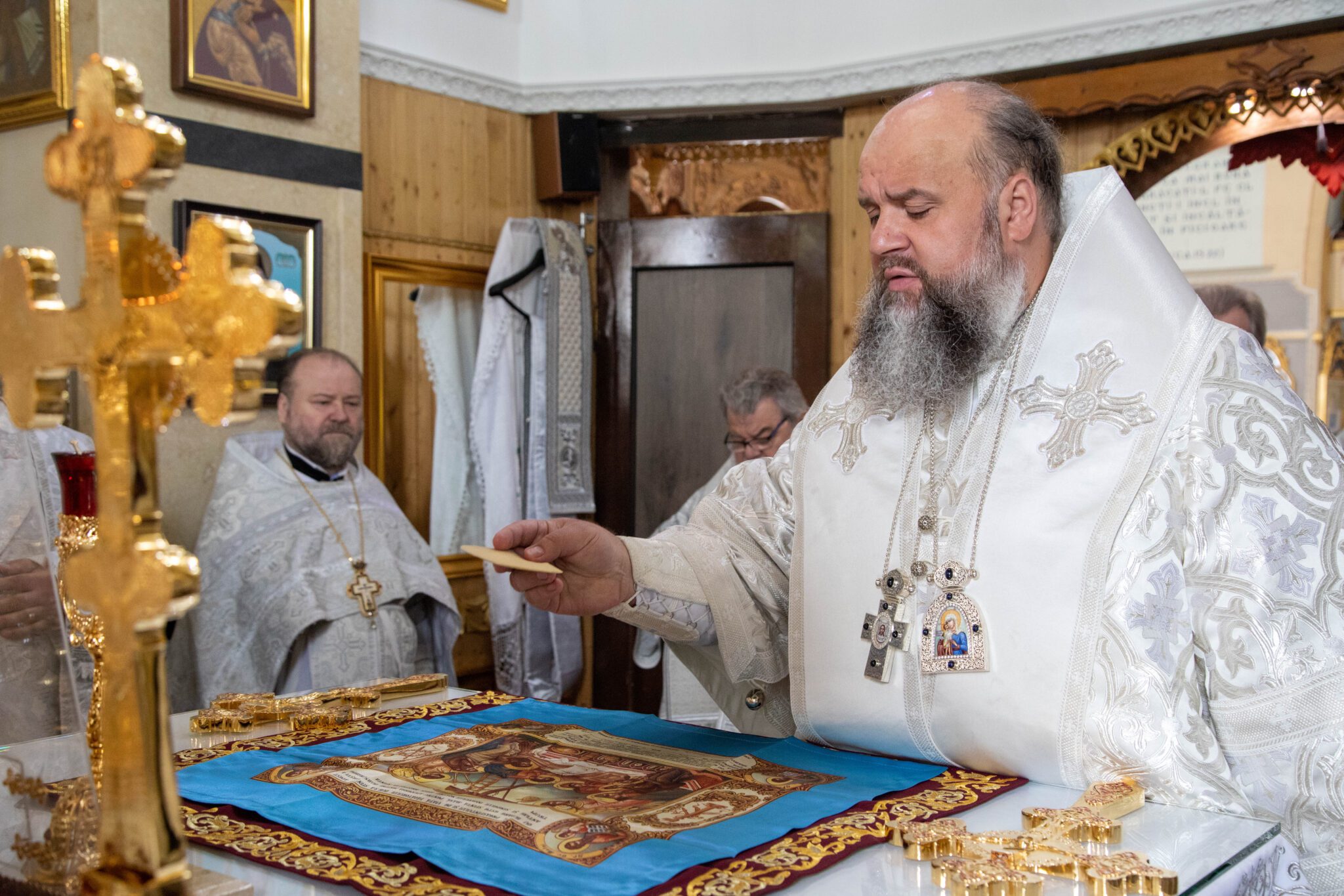 Înaltpreasfinței Sale i-a coliturghisit: ÎPS Nicodim, arhiepiscop de Edineț și Briceni, PS Siluan, episcop de Orhei și vicar mitropolitan, PC arhim. Nicolae (Roșca), duhovnic-administrator al Mănăstirii Ciuflea, PC arhim. Filaret (Cuzmin), starețul Mănăstirii Căpriana, prot. mitr. Igor Mămăligă, părintele-paroh și un sobor de preoți și diaconi.