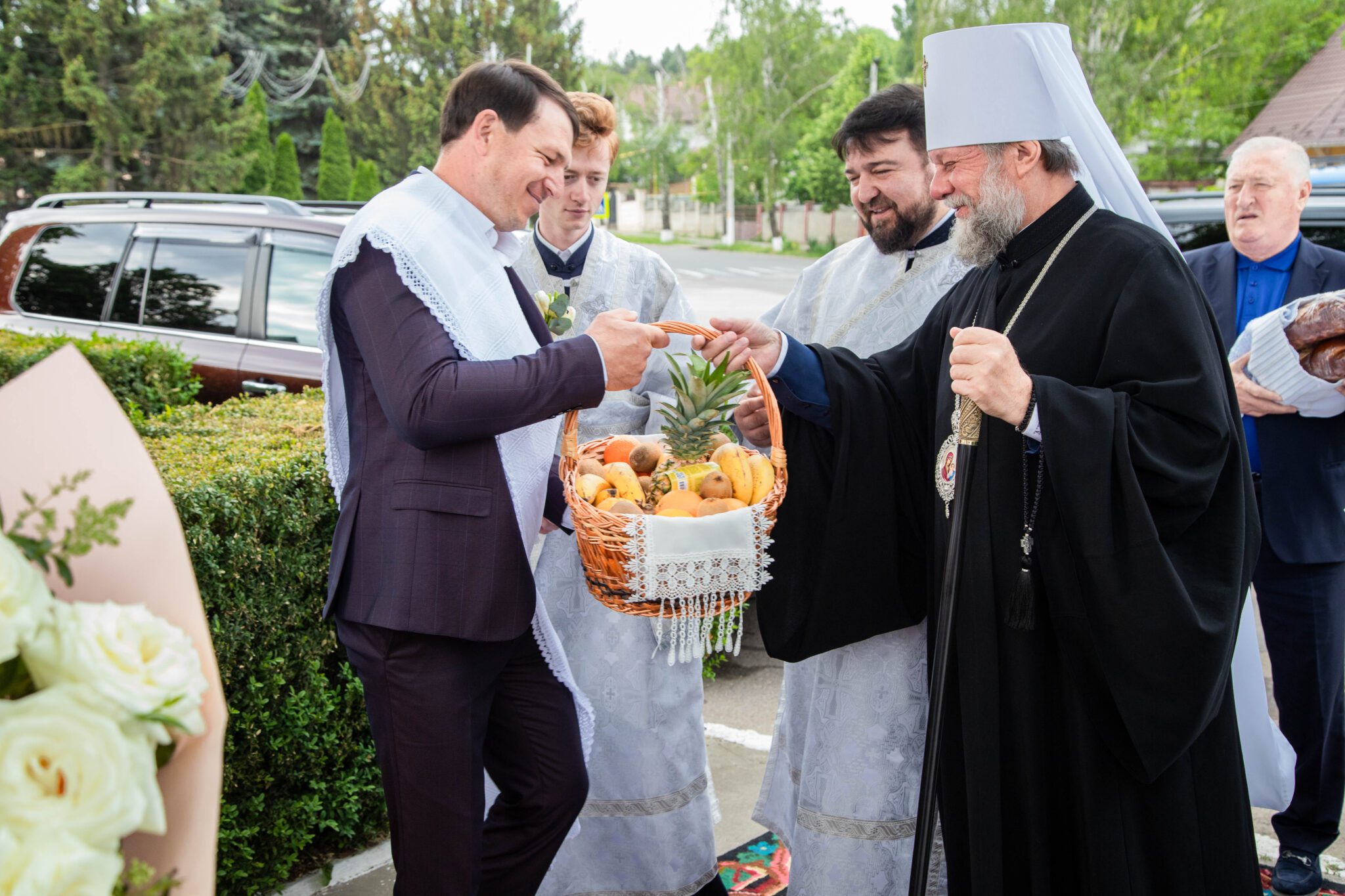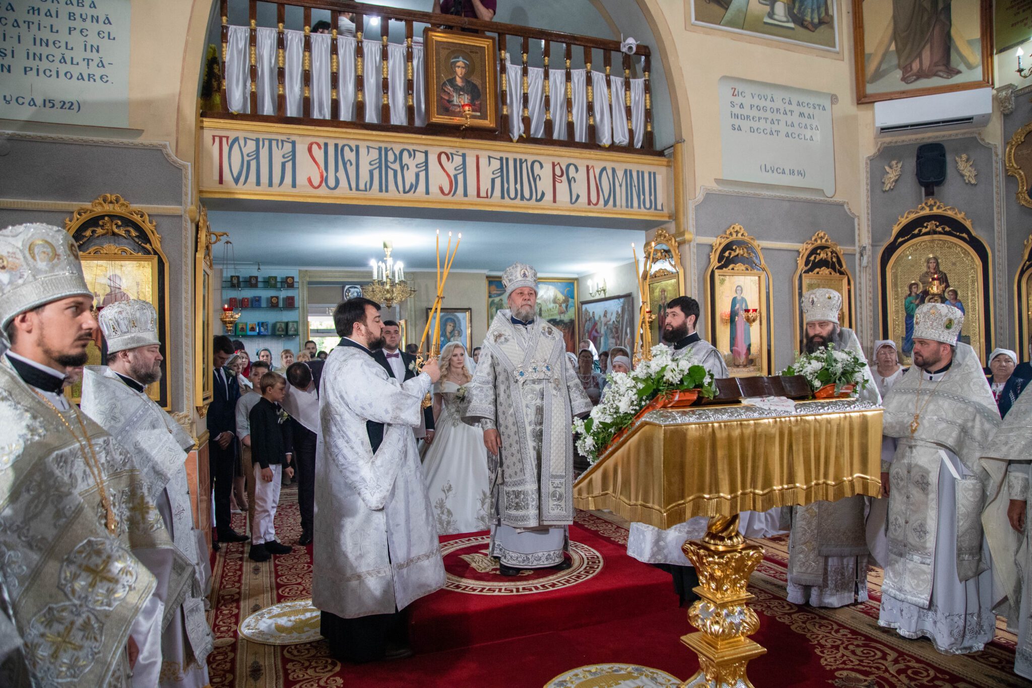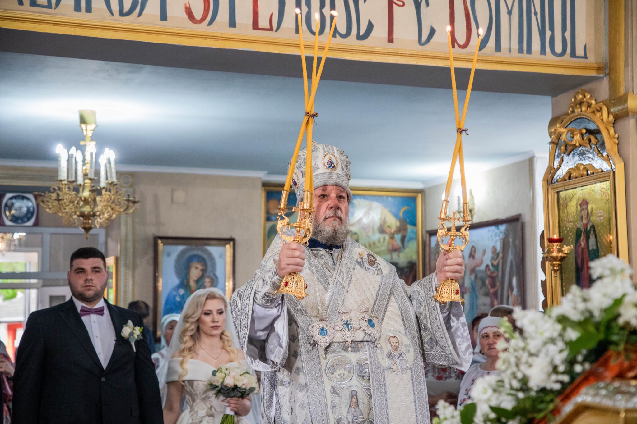Înaltpreasfinția Sa a felicitat pe nou încununații Vladimir și Elena și i-a binecuvântat dorindu-le căsnicie fericită, ani îndelungați, sănătoși și cu spor în toată fapta cea bună, deasemenea și pe părintele-paroh prot. Igor, pentru munca pe care o depune în această parohie deja de mai mulți ani inclusiv și pe enoriașii care sunt mereu alături de păstorul lor și îl susțin în toate lucrurile bune ce se petrec în această parohie.