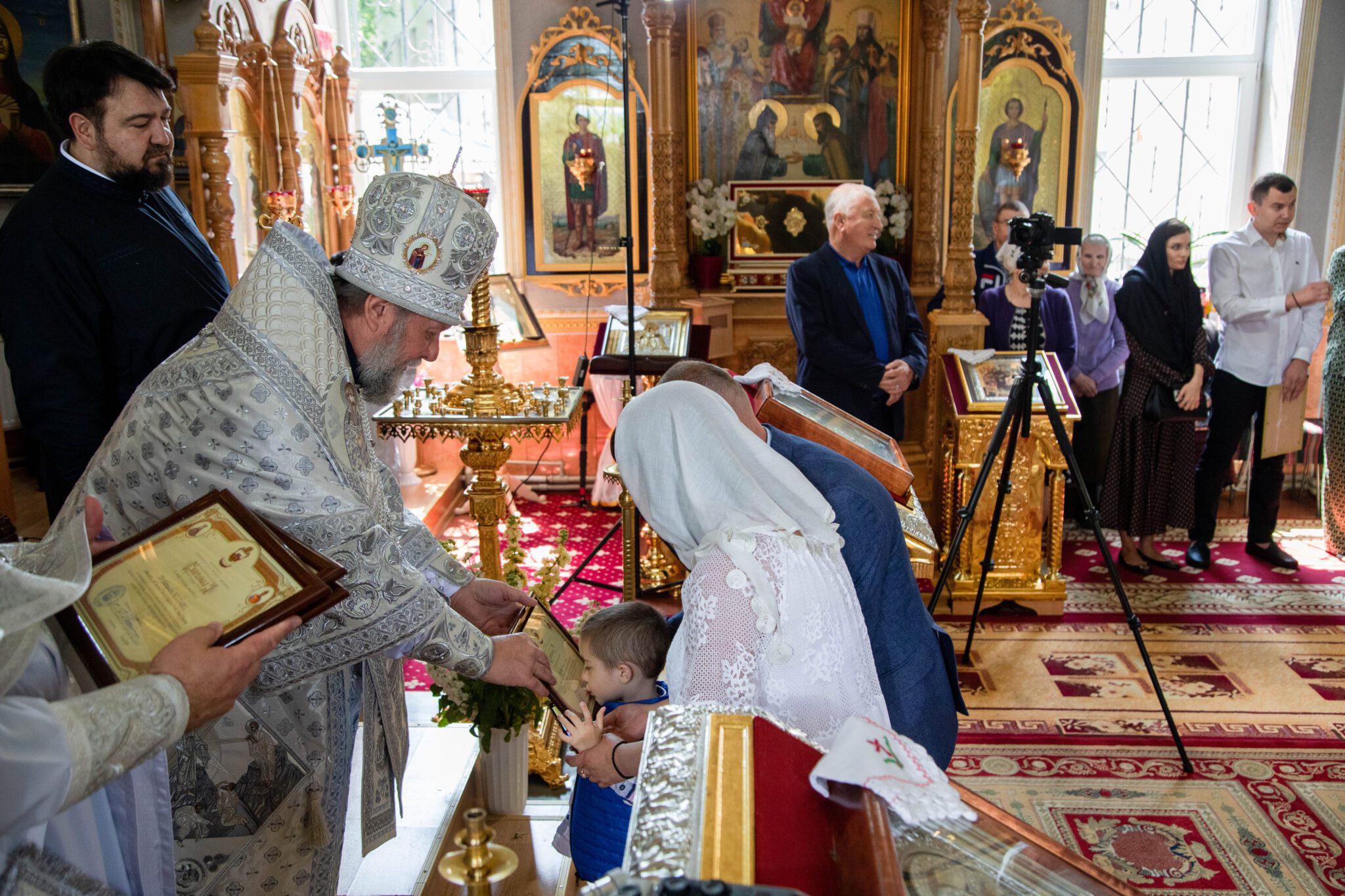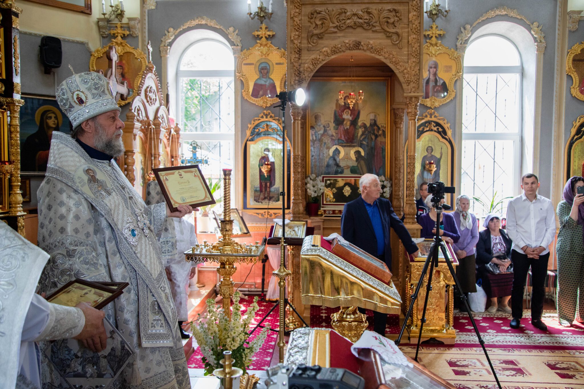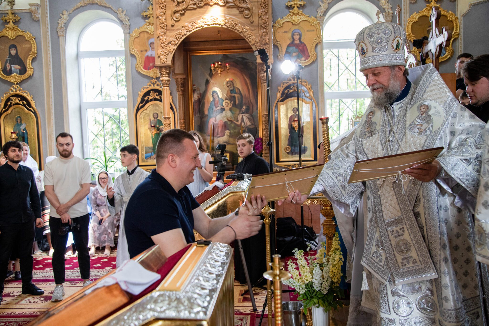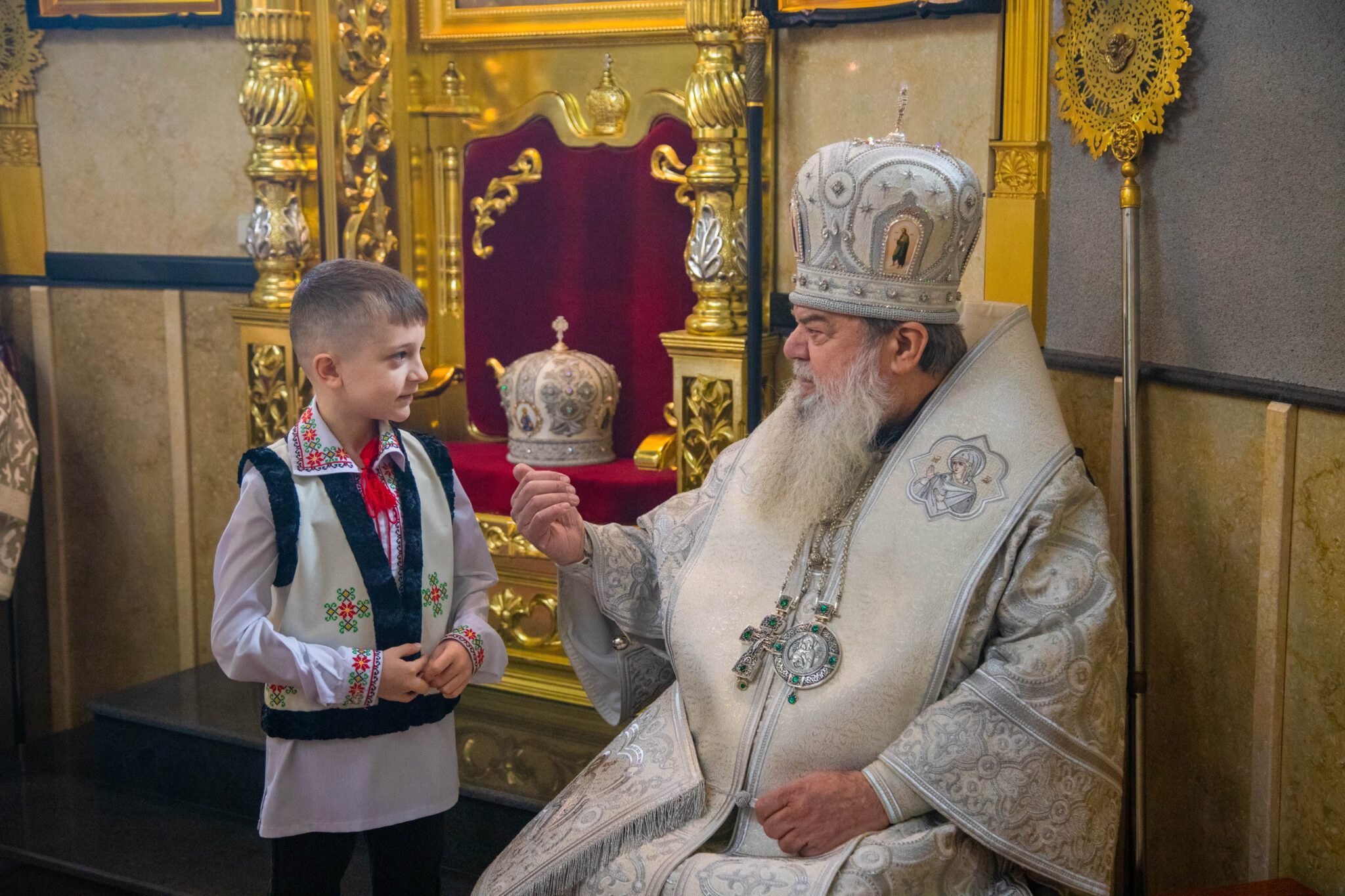 Înaltpreasfinția Sa a felicitat pe nou încununații Vladimir și Elena și i-a binecuvântat dorindu-le căsnicie fericită, ani îndelungați, sănătoși și cu spor în toată fapta cea bună, deasemenea și pe părintele-paroh prot. Igor, pentru munca pe care o depune în această parohie deja de mai mulți ani inclusiv și pe enoriașii care sunt mereu alături de păstorul lor și îl susțin în toate lucrurile bune ce se petrec în această parohie.