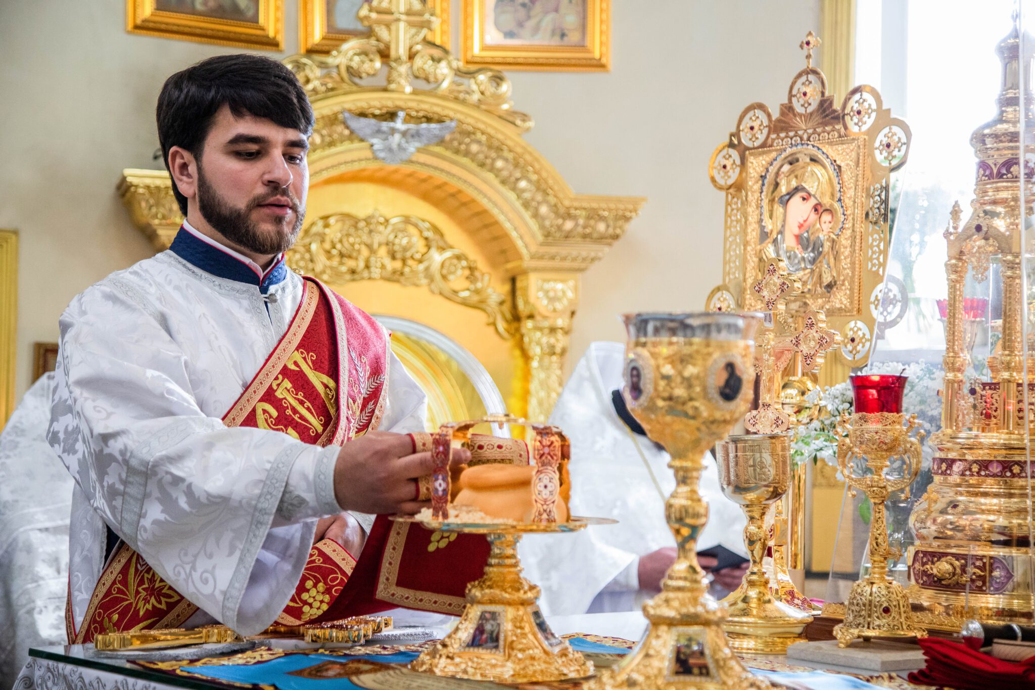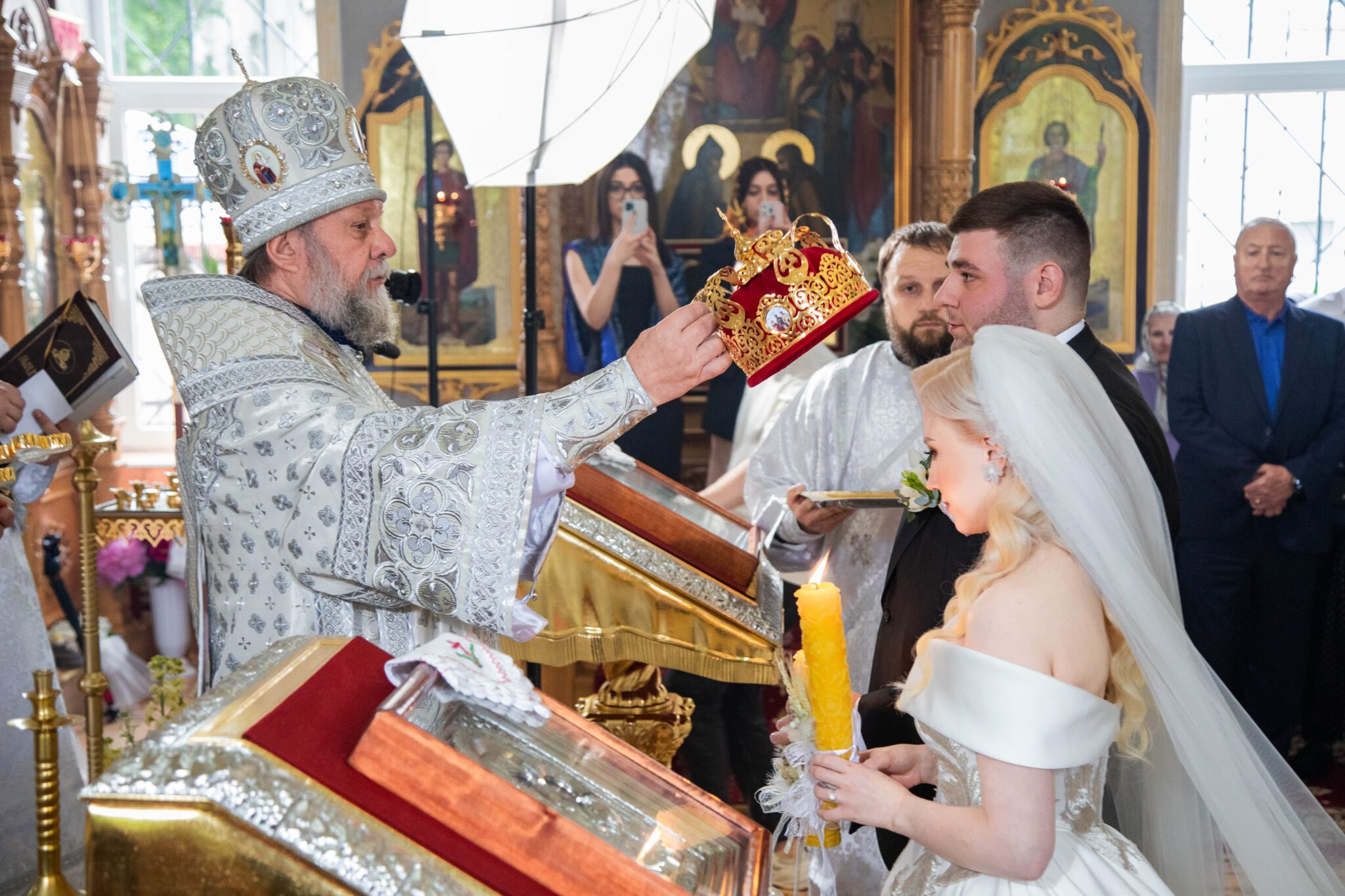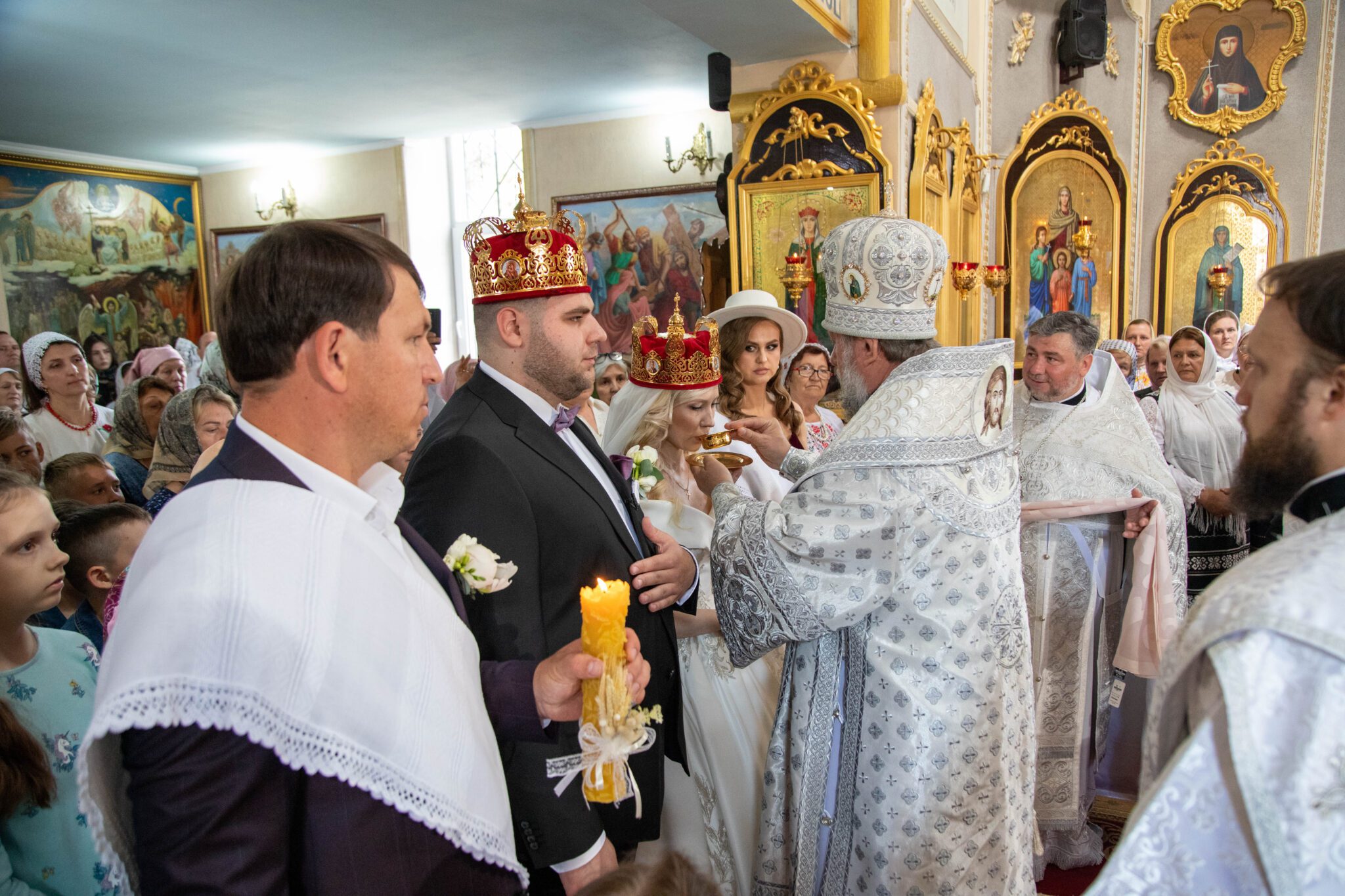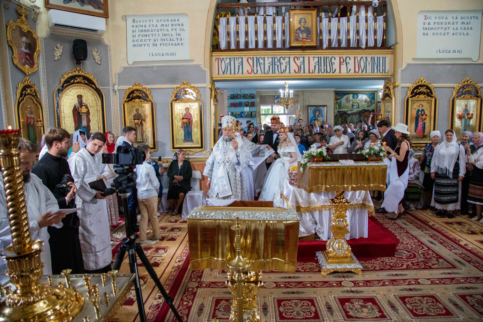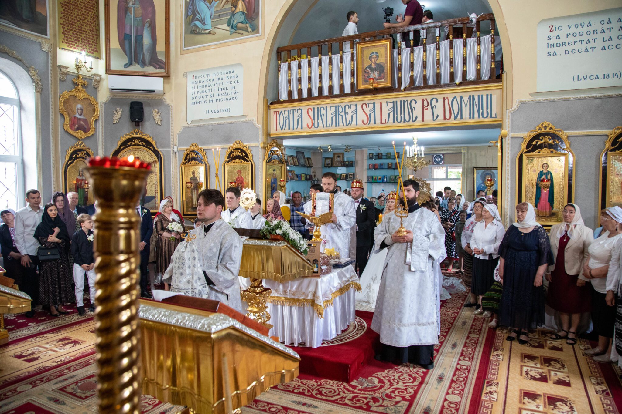 Astăzi, cum se obișnuia încă pe vremurile de cândva, în cadrul Sfintei Liturghii, a avut loc Taina Cununiei asupra tinerilor Vladimir și Elena Mămăligă, fiul părintelui paroh, Igor Mămăligă.