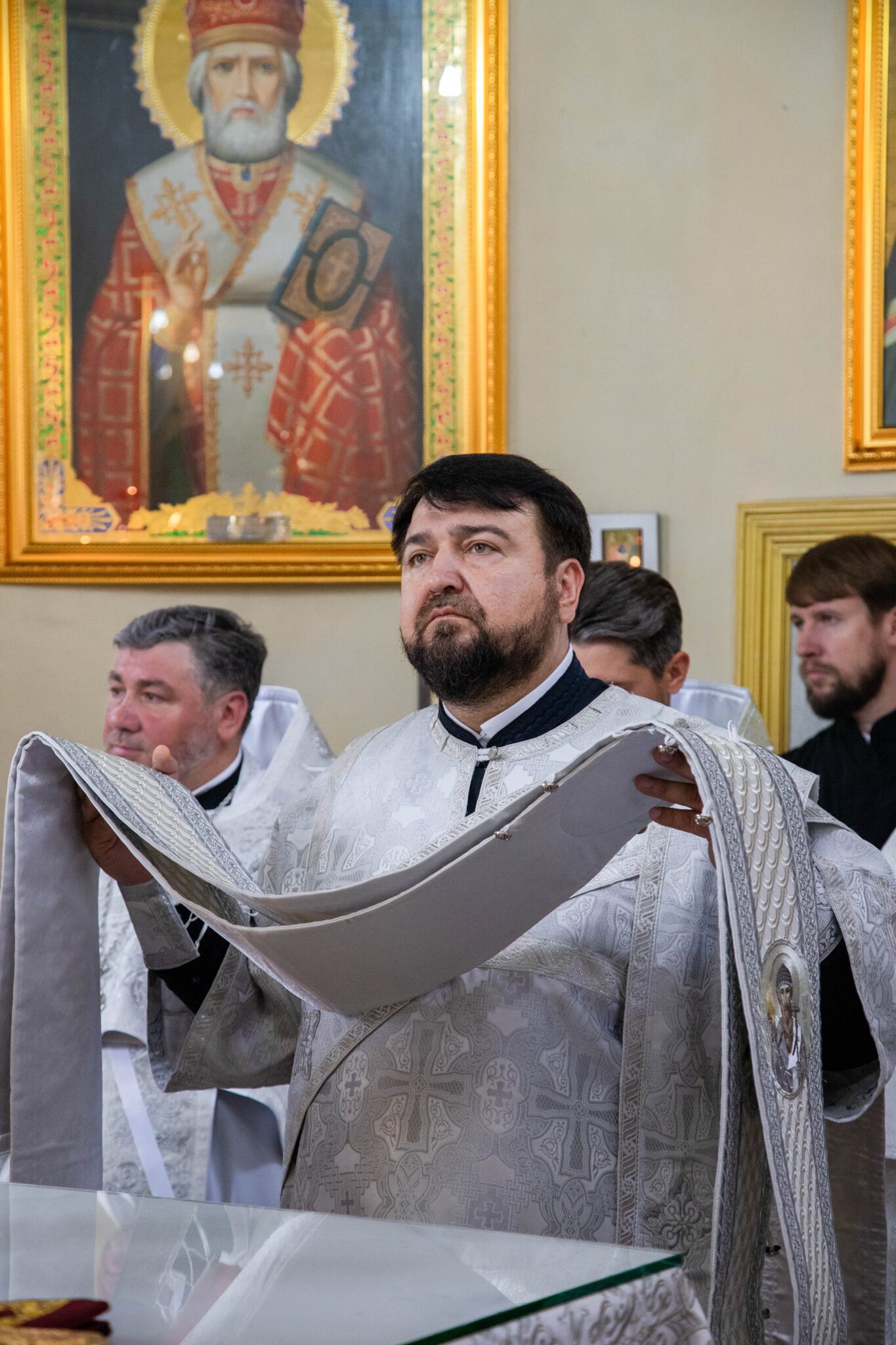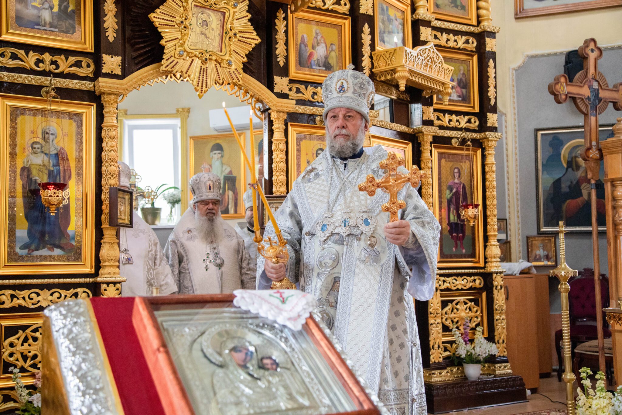 Înaltpreasfinței Sale i-a coliturghisit: ÎPS Nicodim, arhiepiscop de Edineț și Briceni, PS Siluan, episcop de Orhei și vicar mitropolitan, PC arhim. Nicolae (Roșca), duhovnic-administrator al Mănăstirii Ciuflea, PC arhim. Filaret (Cuzmin), starețul Mănăstirii Căpriana, prot. mitr. Igor Mămăligă, părintele-paroh și un sobor de preoți și diaconi.