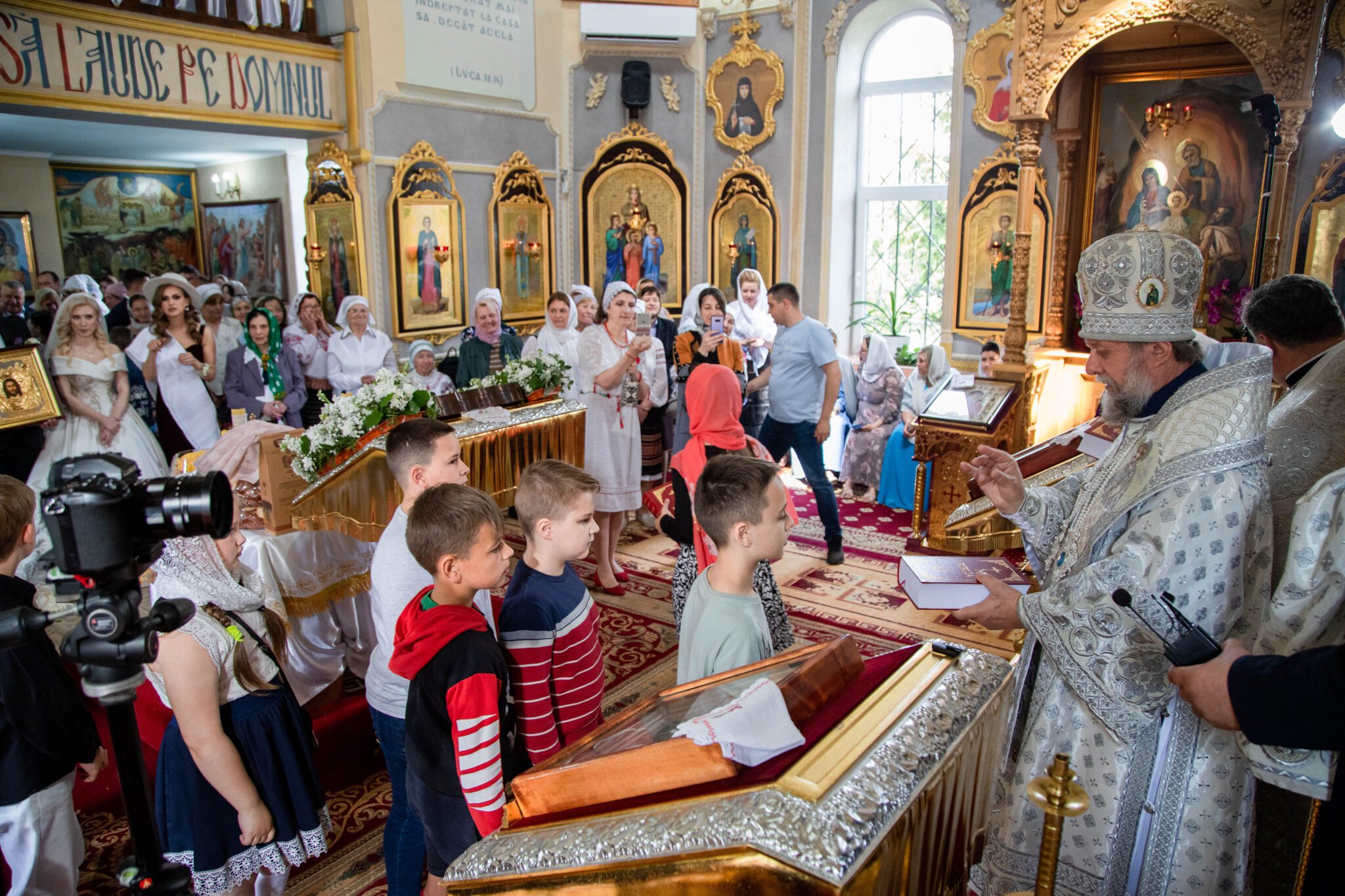 După Sfânta Liturghie, mai mulți copii care au depus efort pentru a obține rezultate cât mai bune la studii, au primit din partea Întâistătătorului câte o biblie iar ctitori ai Sfintei biserici au fost decorați cu diplome mitropolitane.