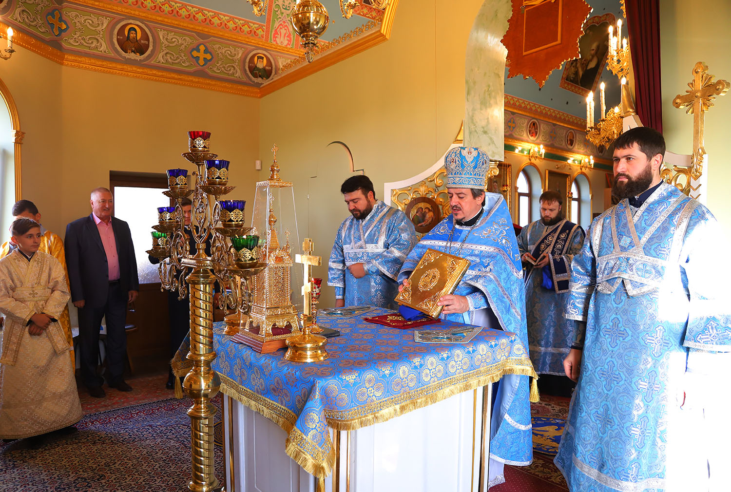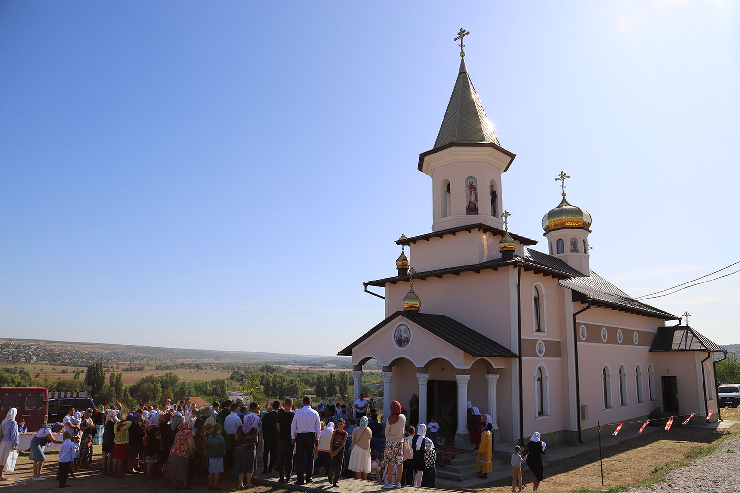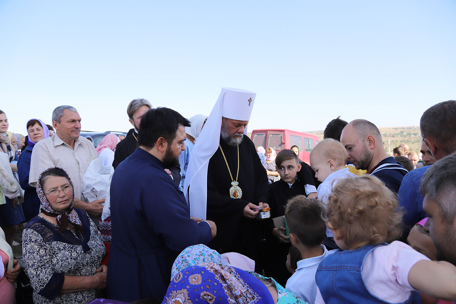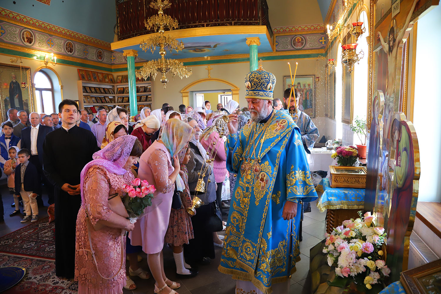 Cu acest prilej deosebit pentru tânăra comunitate parohială, dis-de-dimineață, harnicul paroh al bisericii, Prot. Mitr. Cristofor Tverdostup, dimpreună cu familia și credincioșii păstoriți, l-au întâmpinat călduros pe Întâistătătorul Bisericii noastre, ÎPS Mitropolit Vladimir.