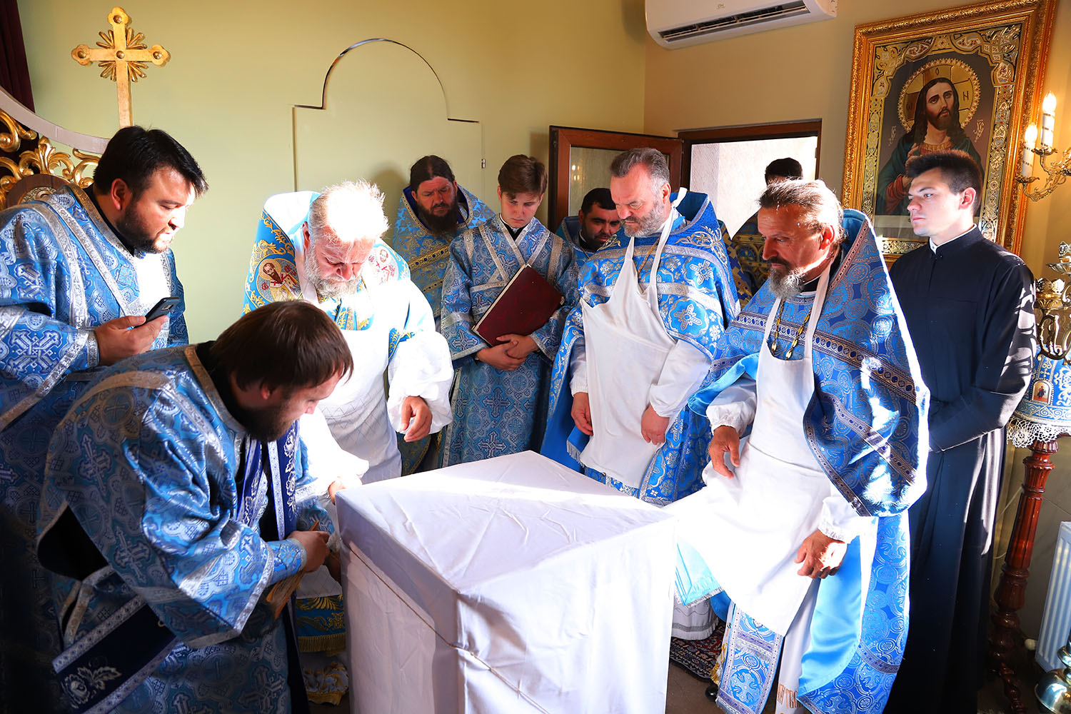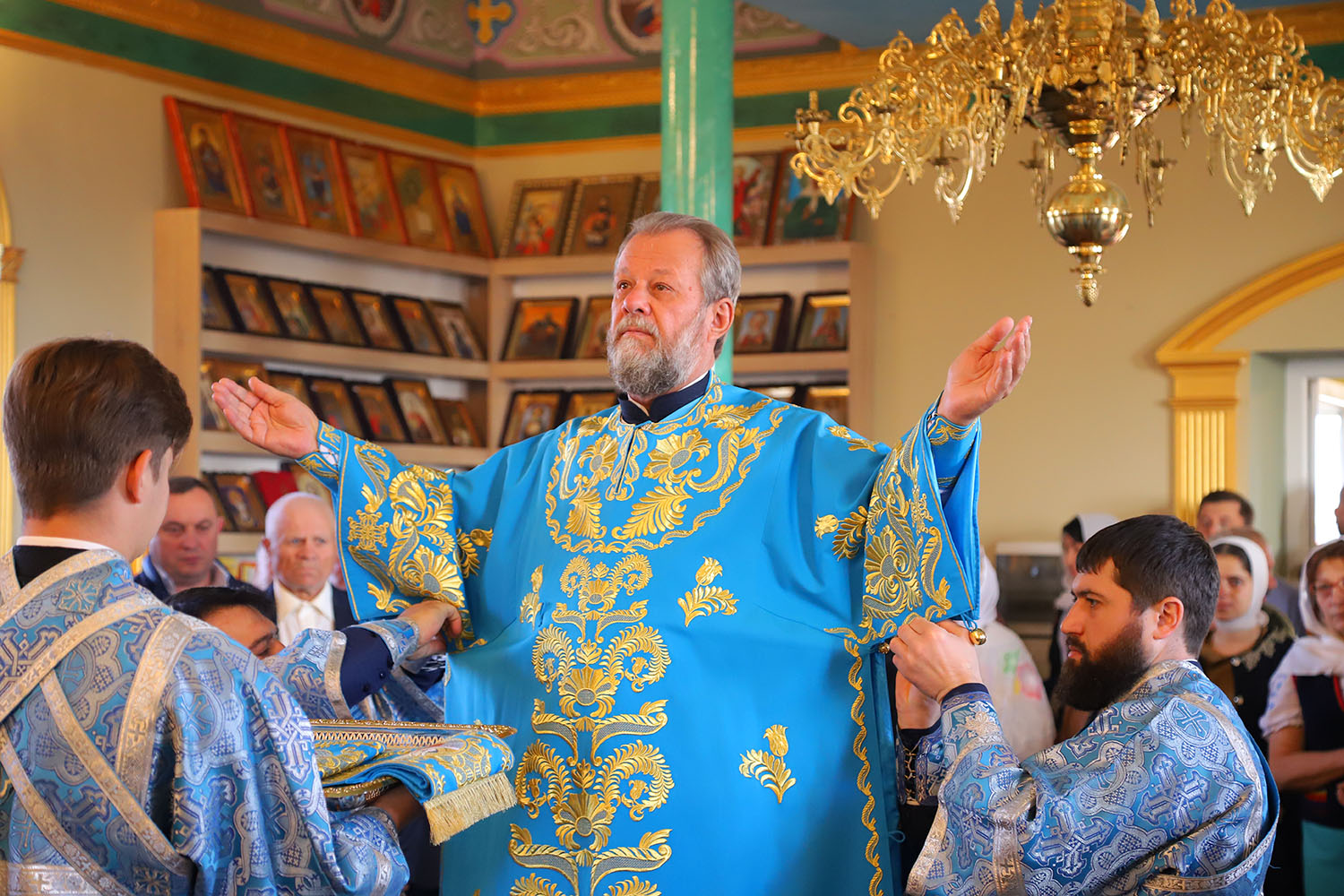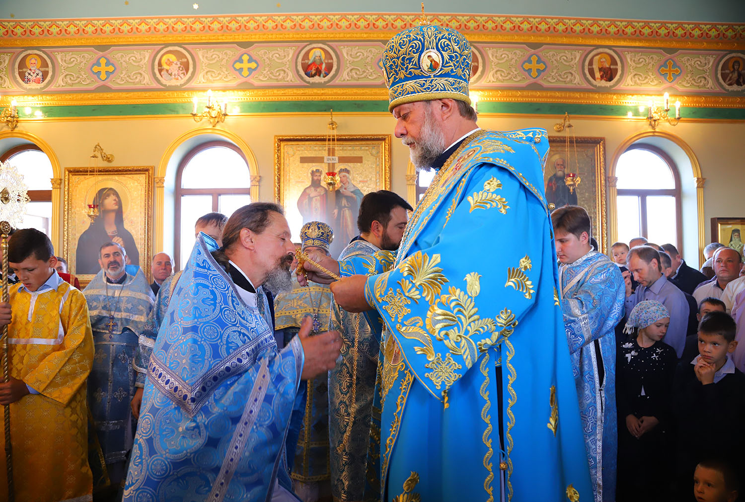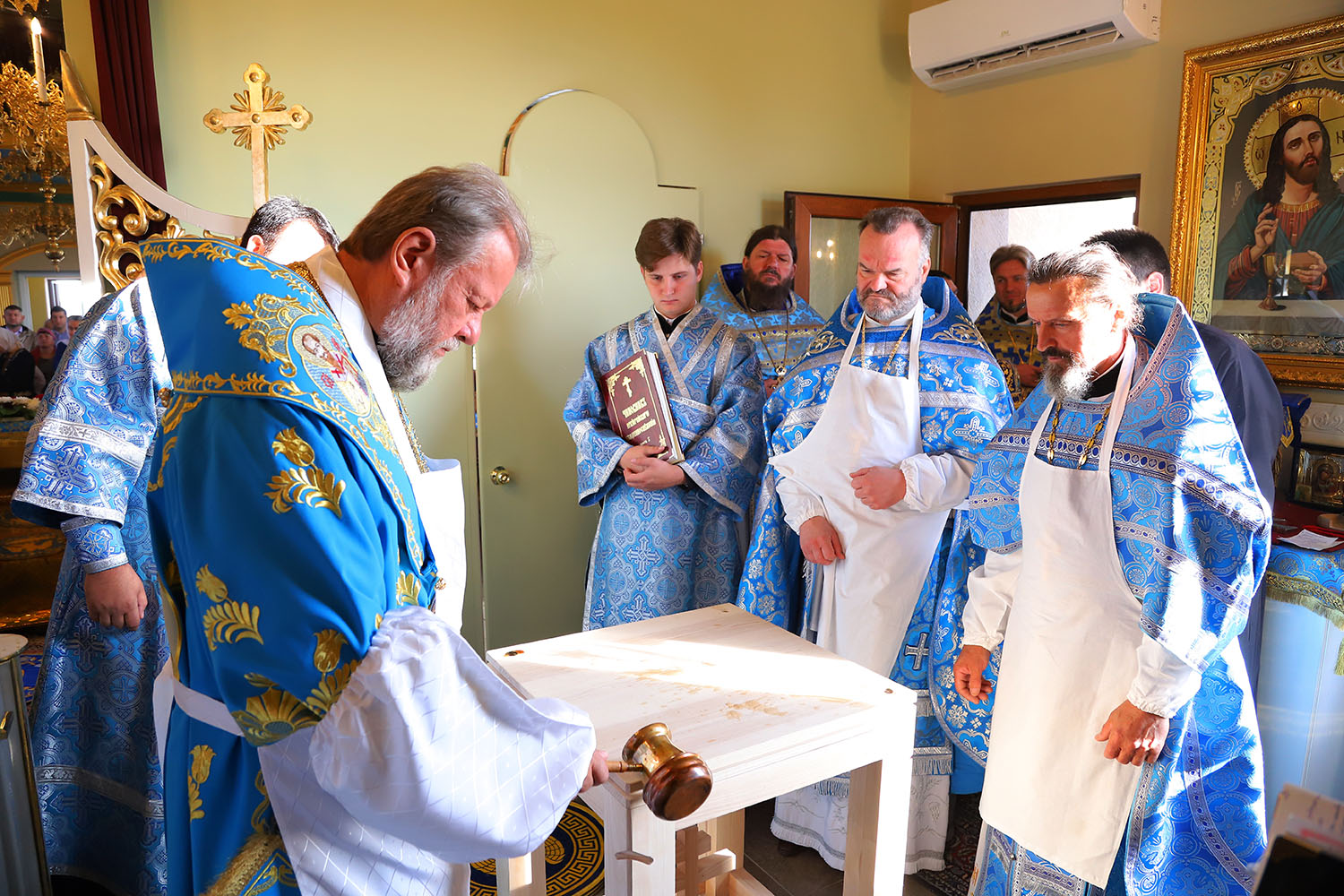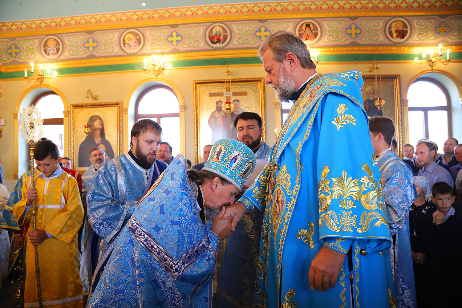 Cu acest prilej deosebit pentru tânăra comunitate parohială, dis-de-dimineață, harnicul paroh al bisericii, Prot. Mitr. Cristofor Tverdostup, dimpreună cu familia și credincioșii păstoriți, l-au întâmpinat călduros pe Întâistătătorul Bisericii noastre, ÎPS Mitropolit Vladimir.