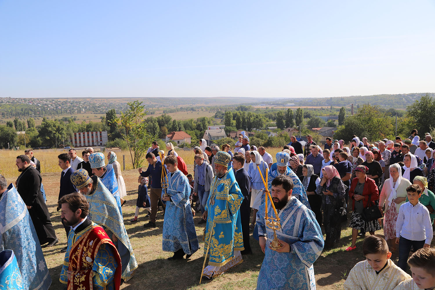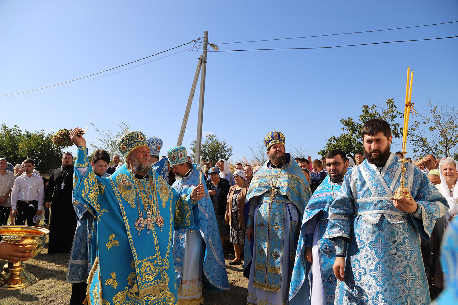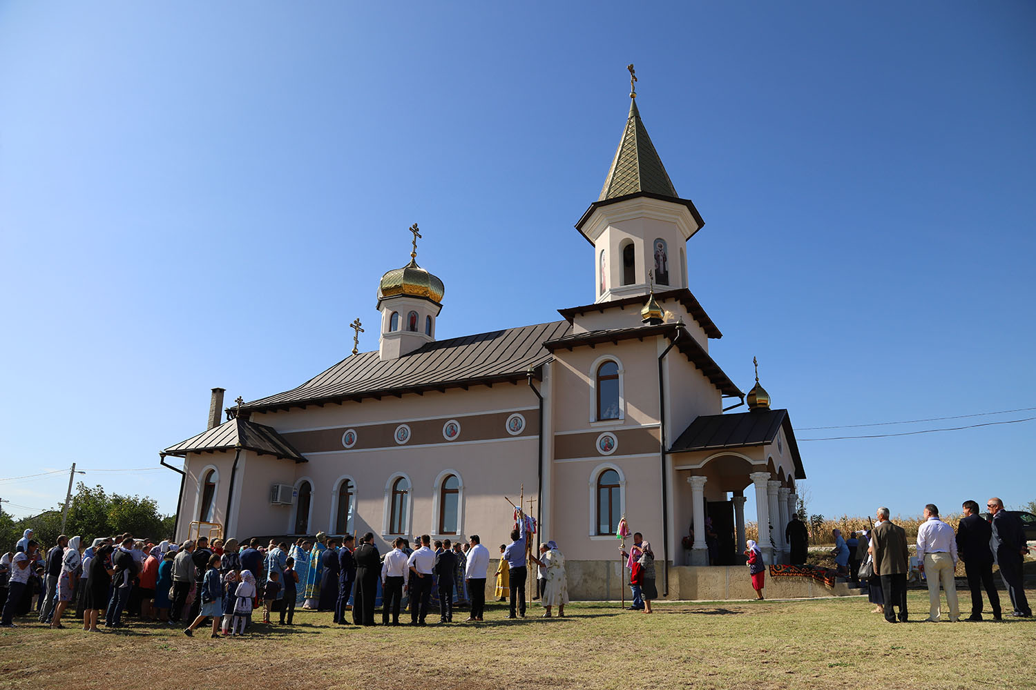 Slujba arhierească a reunit în rugăciune clerul Bisericii și credincioșii comunității, printre care și ctitorii și binefăcătorii noii biserici din orășelul Sângera, ce s-au rugat într-un gând și au mijlocit în fața Mântuitorului ajutor în ispite și ocrotire cerească.