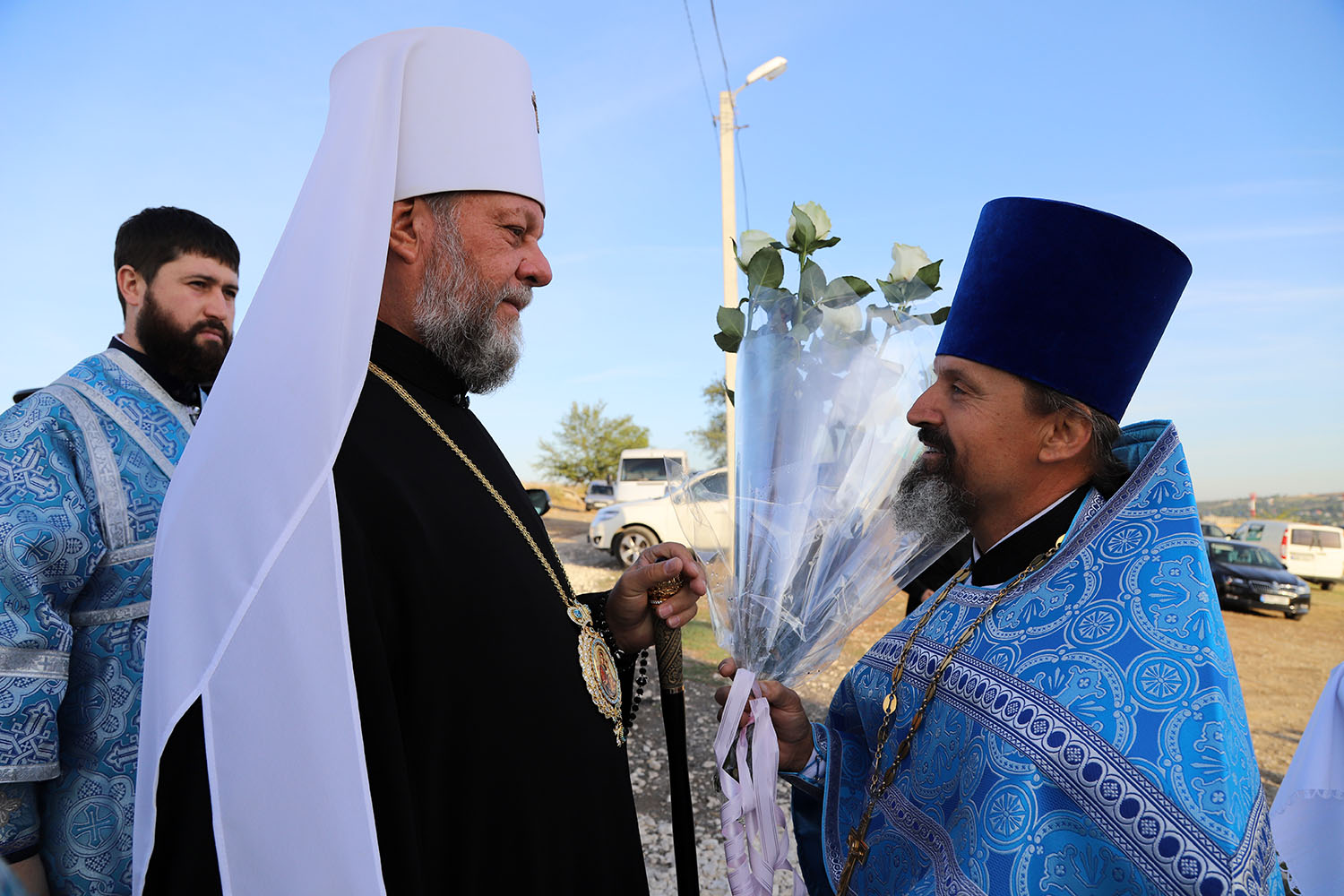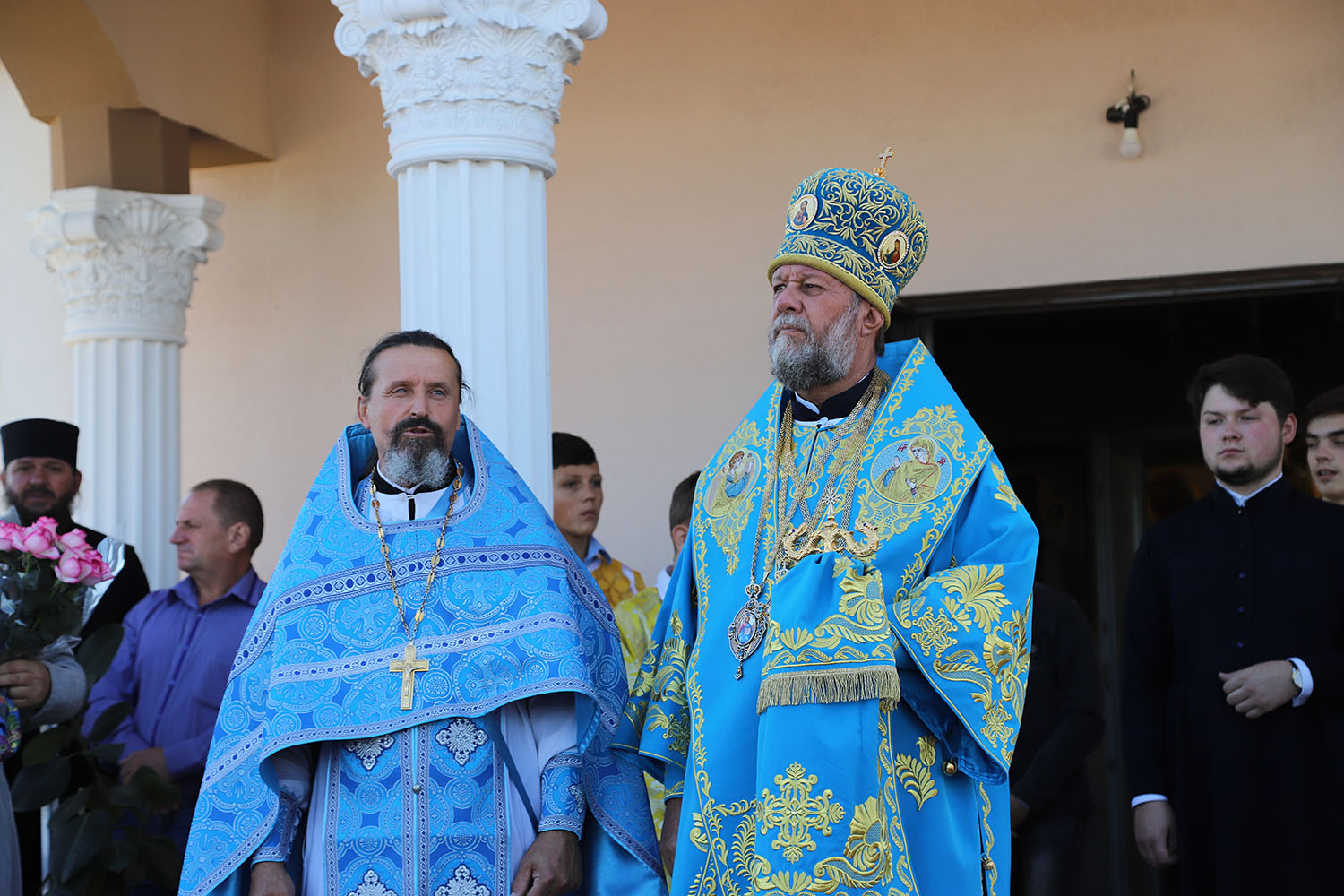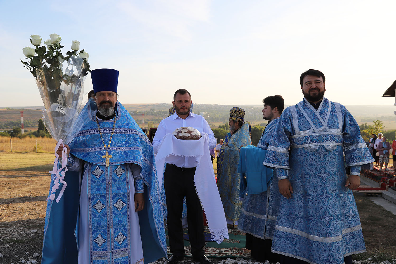 Cu acest prilej deosebit pentru tânăra comunitate parohială, dis-de-dimineață, harnicul paroh al bisericii, Prot. Mitr. Cristofor Tverdostup, dimpreună cu familia și credincioșii păstoriți, l-au întâmpinat călduros pe Întâistătătorul Bisericii noastre, ÎPS Mitropolit Vladimir.