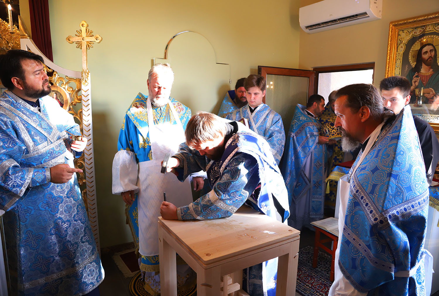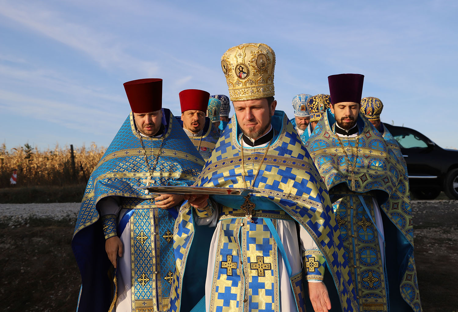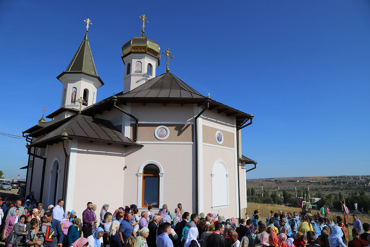 Cu acest prilej deosebit pentru tânăra comunitate parohială, dis-de-dimineață, harnicul paroh al bisericii, Prot. Mitr. Cristofor Tverdostup, dimpreună cu familia și credincioșii păstoriți, l-au întâmpinat călduros pe Întâistătătorul Bisericii noastre, ÎPS Mitropolit Vladimir.