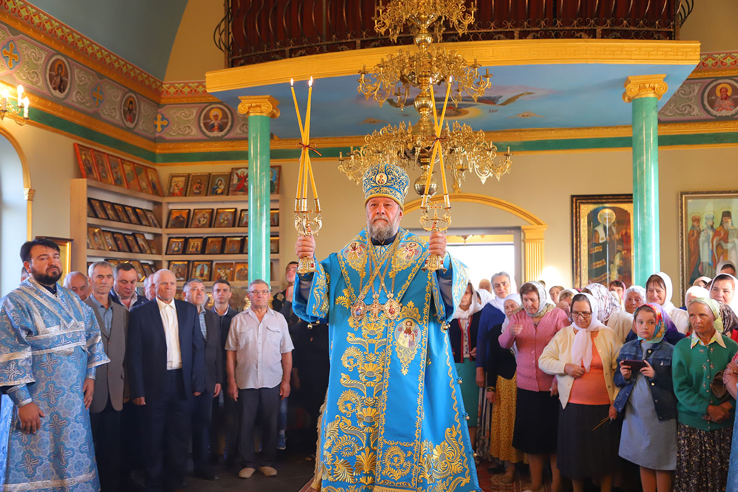 Slujba arhierească a reunit în rugăciune clerul Bisericii și credincioșii comunității, printre care și ctitorii și binefăcătorii noii biserici din orășelul Sângera, ce s-au rugat într-un gând și au mijlocit în fața Mântuitorului ajutor în ispite și ocrotire cerească.