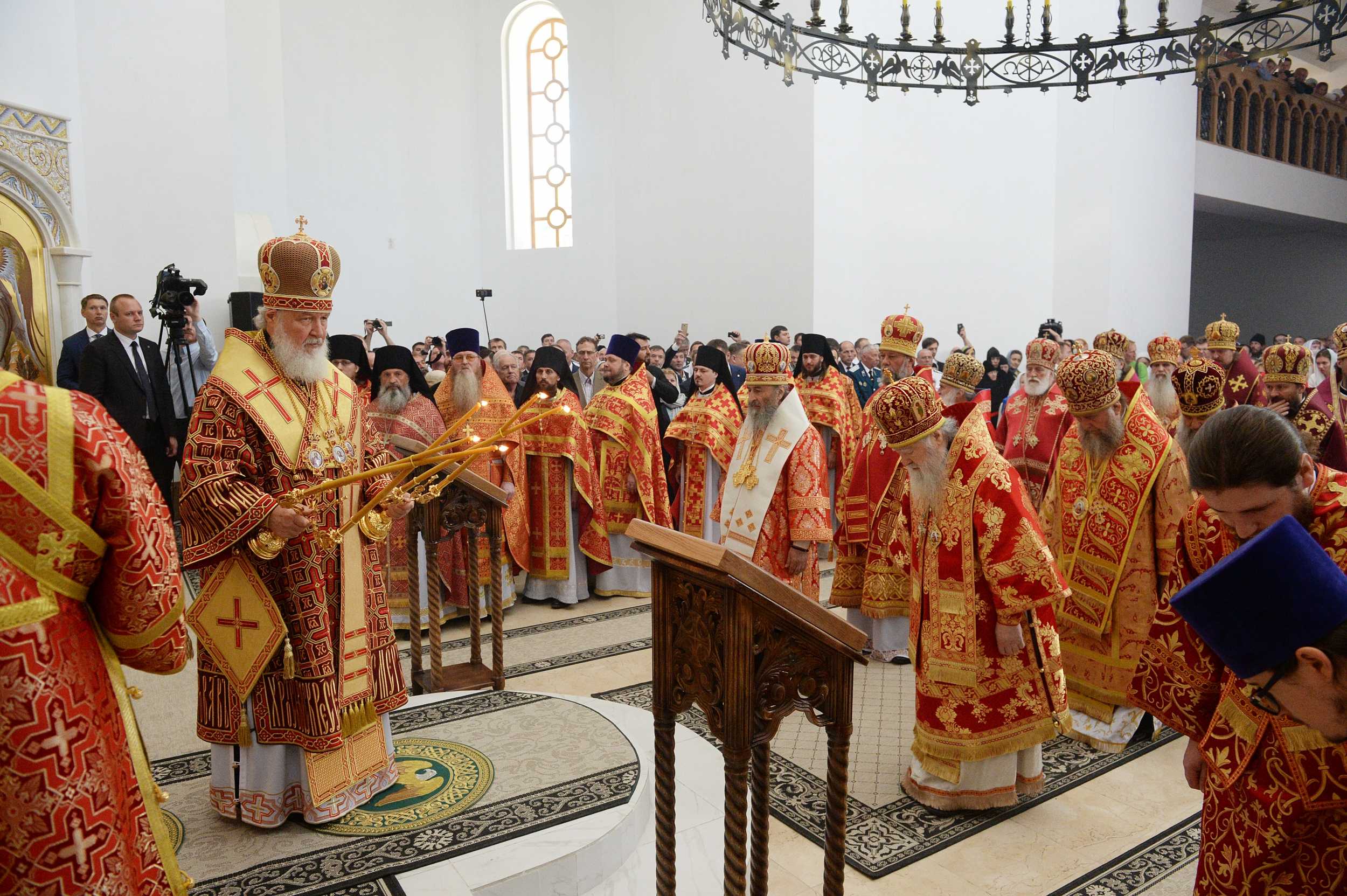 La slujba de sfințire, alături de SS Patriarhul Kiril a înălțat rugăciuni și ÎPS Mitropolit Vladimir.