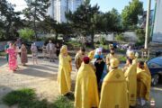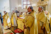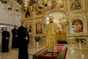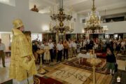 Serviciul Divin a fost oficiat în demisolul bisericii ce poartă hramul în cinstea Sfinților Cuvioși Teodor și Vasilie de la Lavra Pecerska din Kiev.