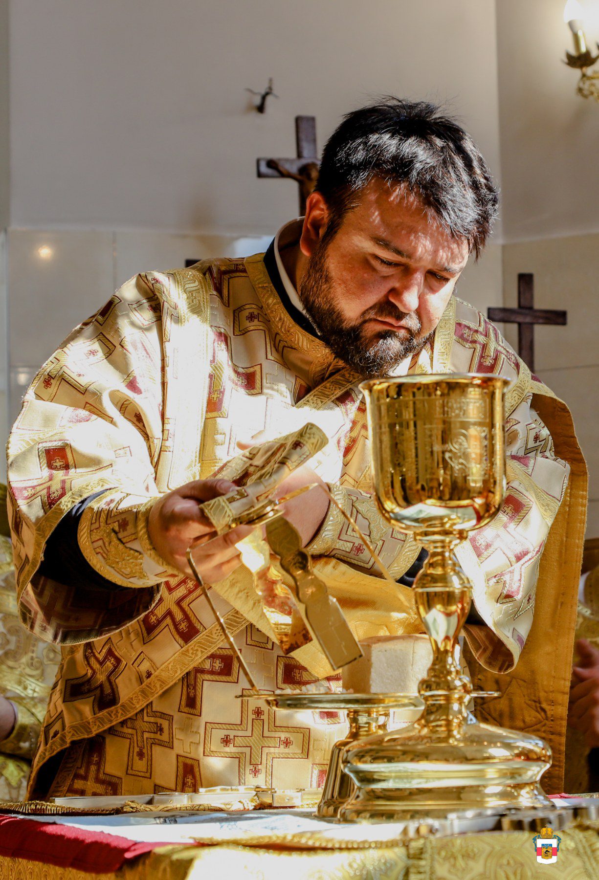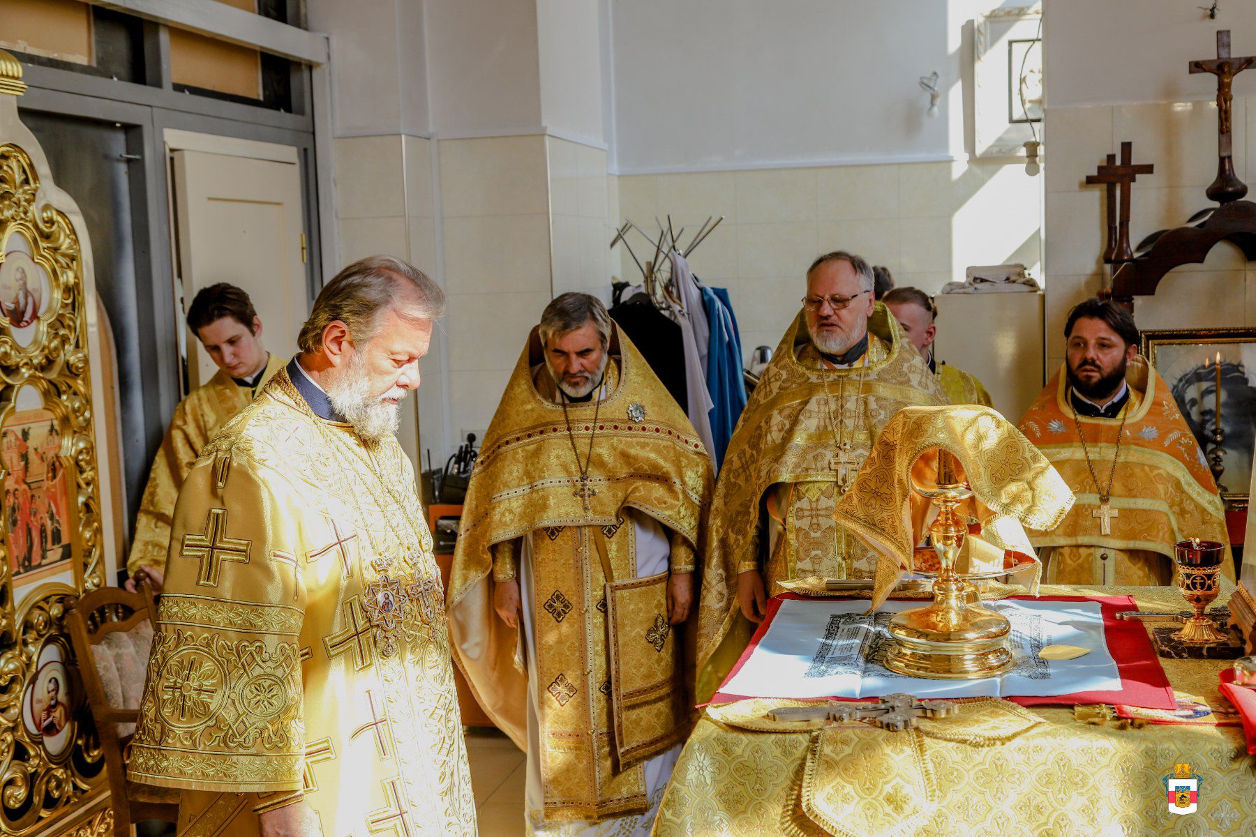 Serviciul Divin a fost oficiat în demisolul bisericii ce poartă hramul în cinstea Sfinților Cuvioși Teodor și Vasilie de la Lavra Pecerska din Kiev.