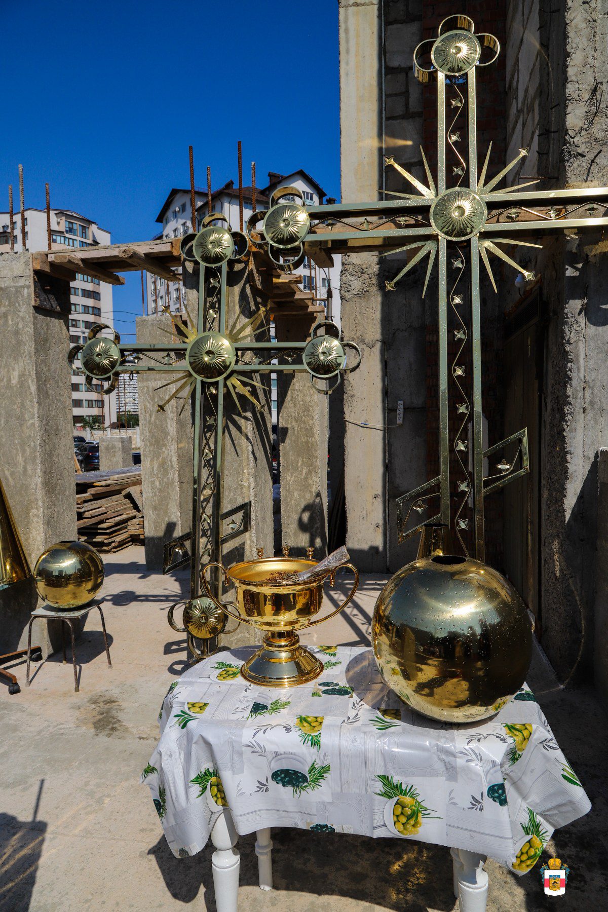 Cu Binecuvântarea Bunului Dumnezeu și rucăciunile Sfințiților Pătinți, au fost Sfințite Crucile realizate pentru cupolele bisericii.