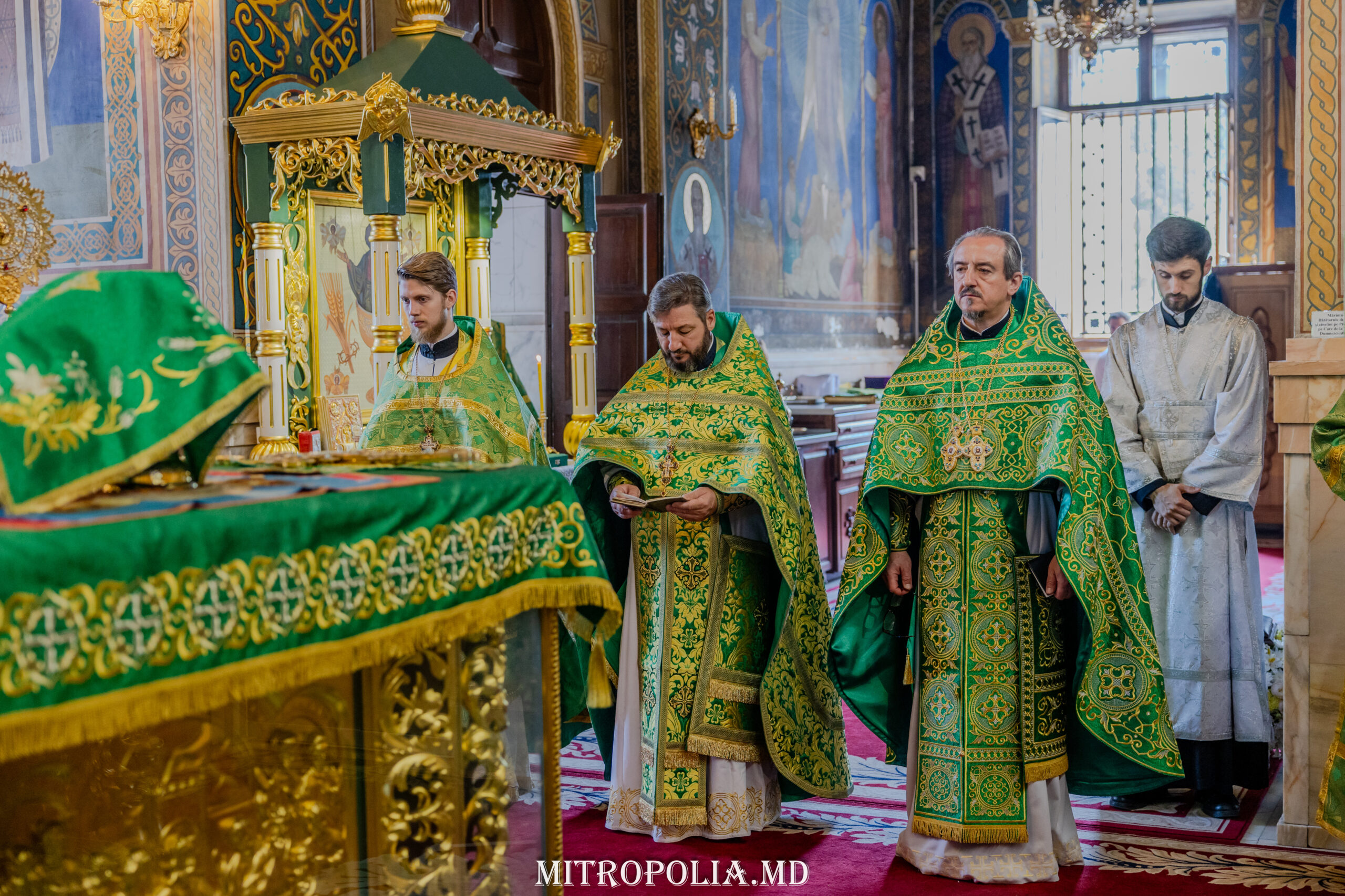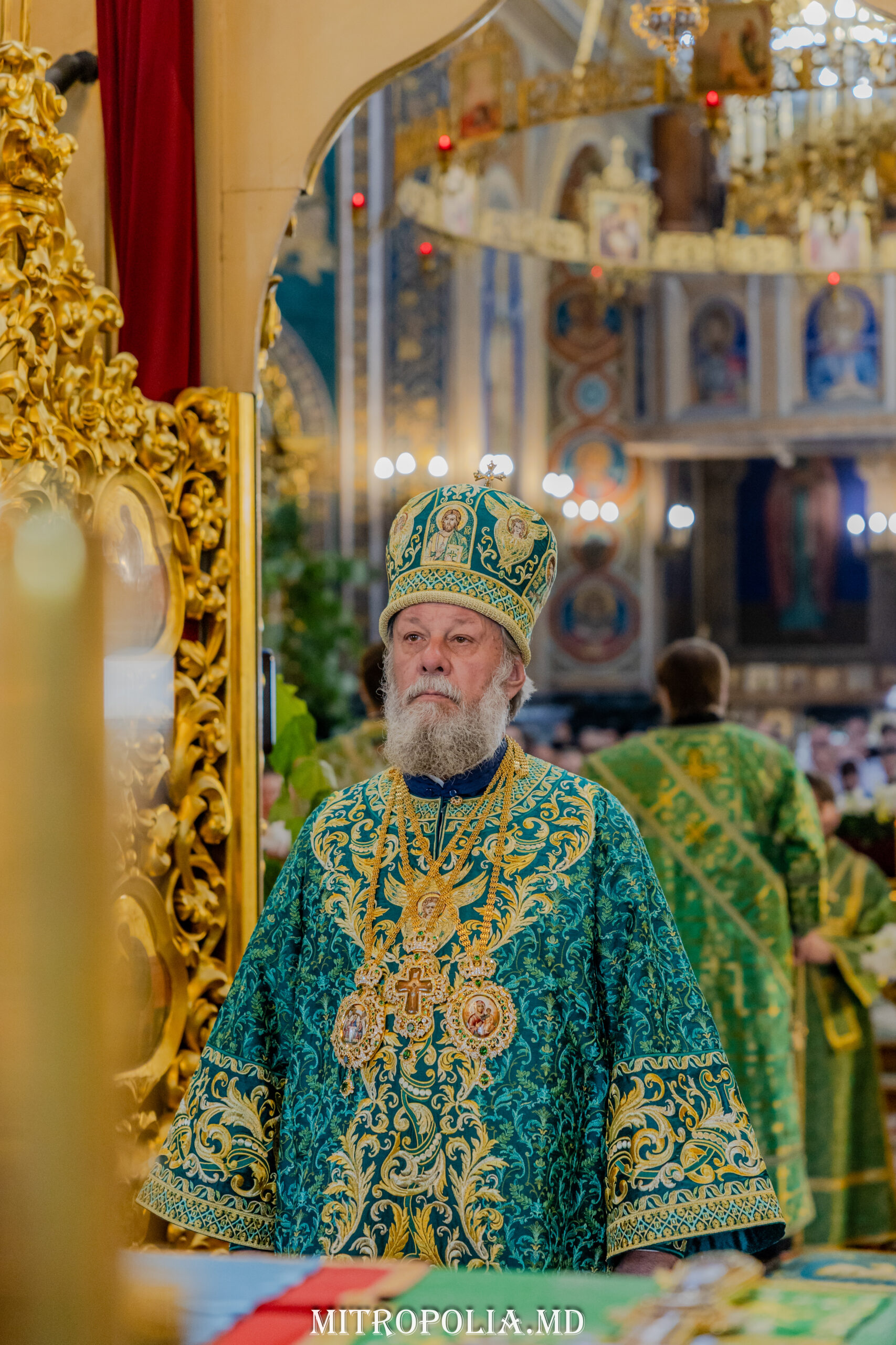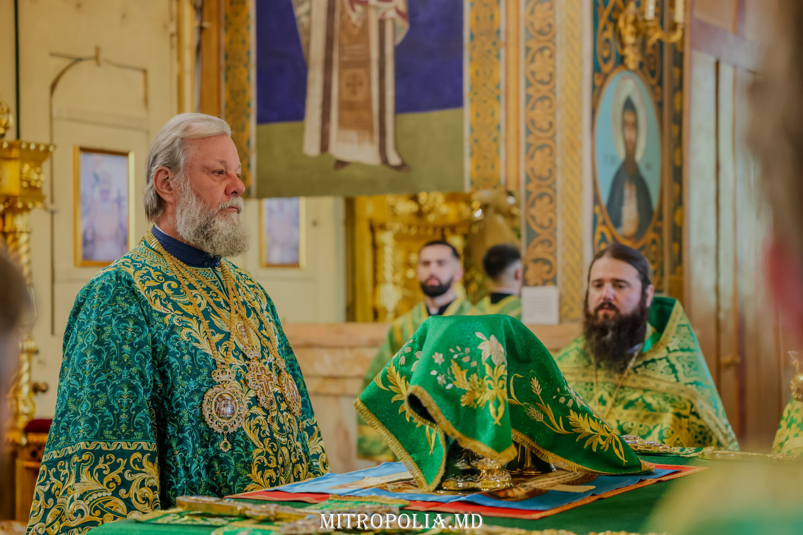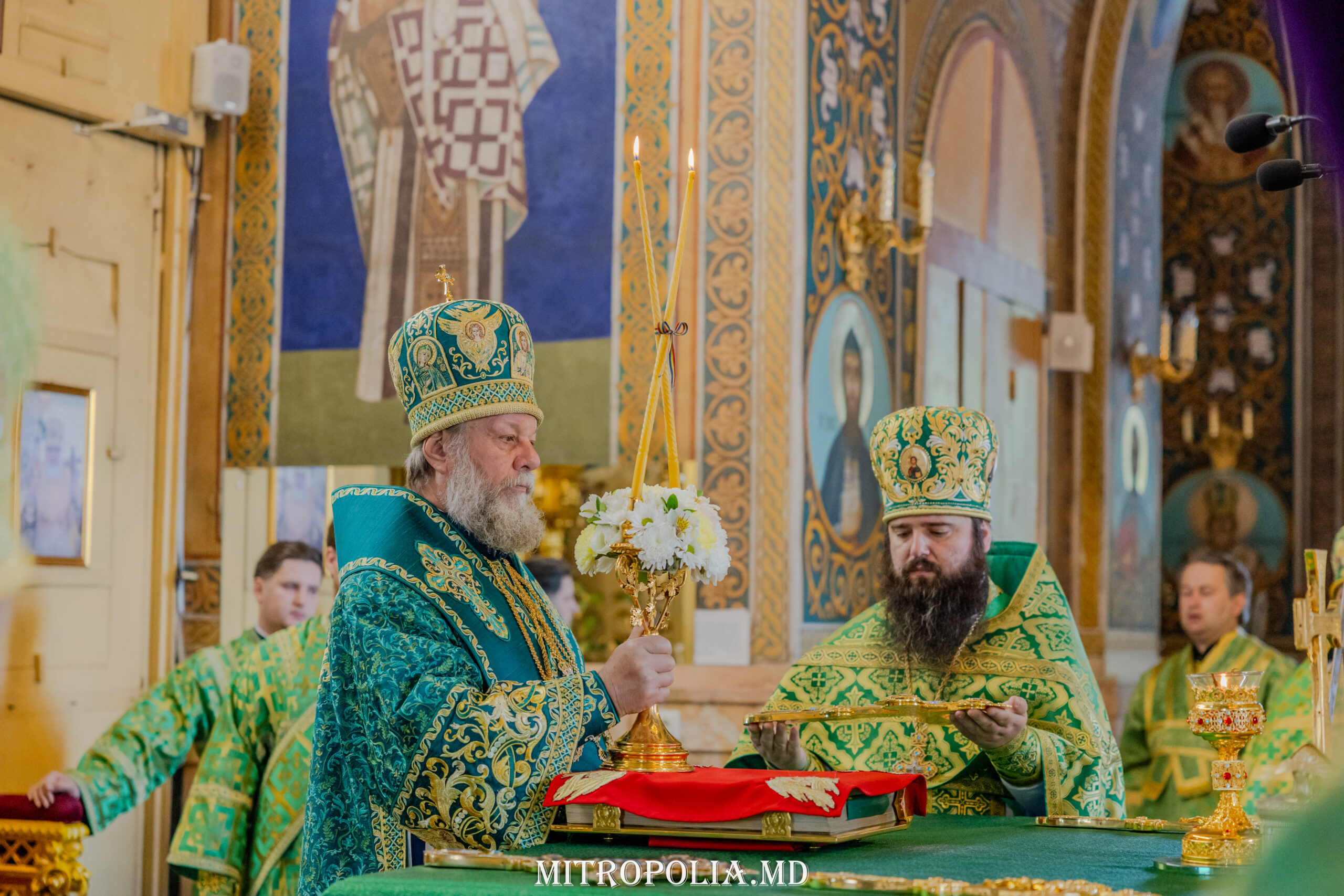 Întâistătătorului Bisericii Ortodoxe din Moldova i-au coliturghisit: secretarul mitropoliei, prot. mitr. Vadim Cheibaș și soborul de slujitori ai Catedralei.
