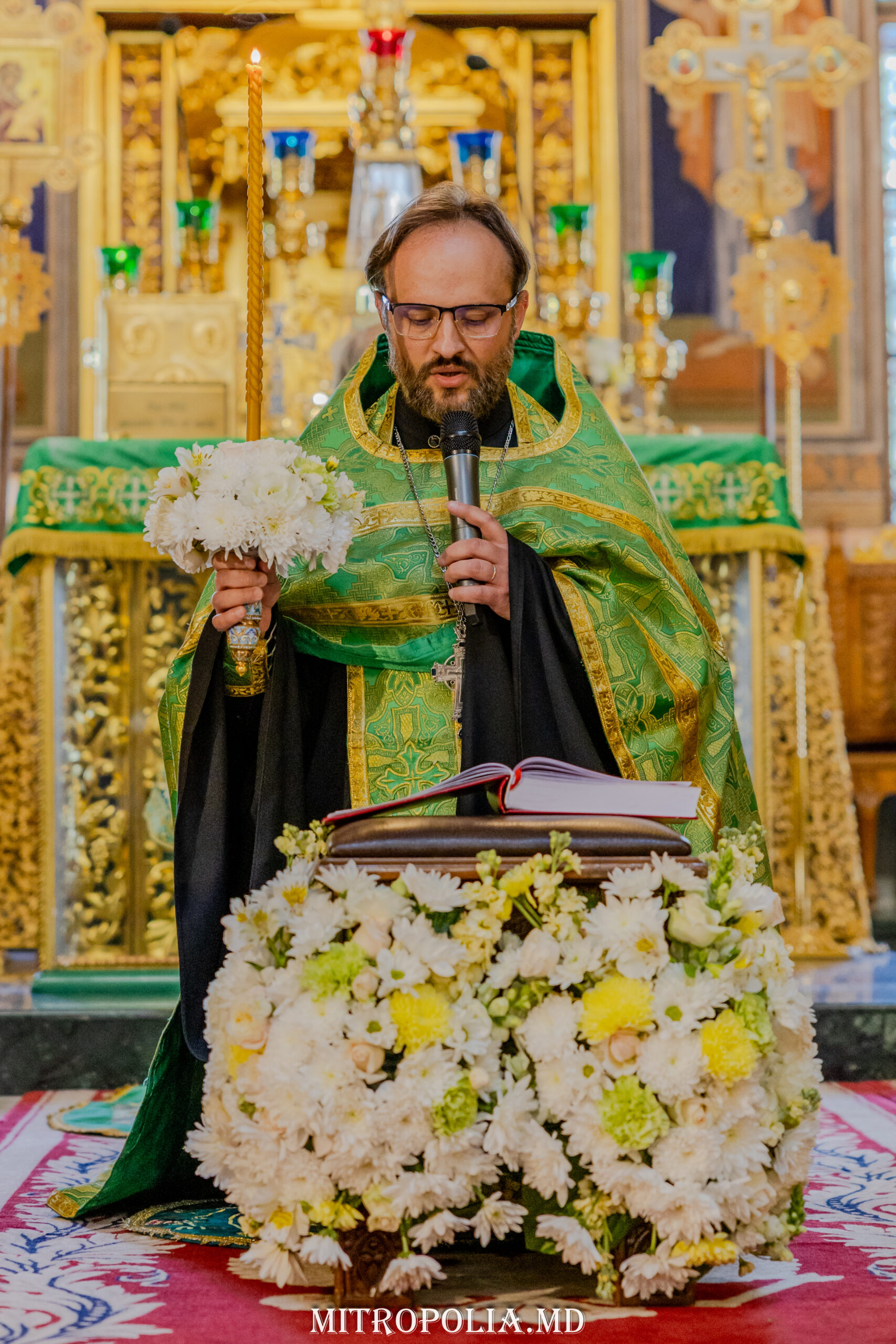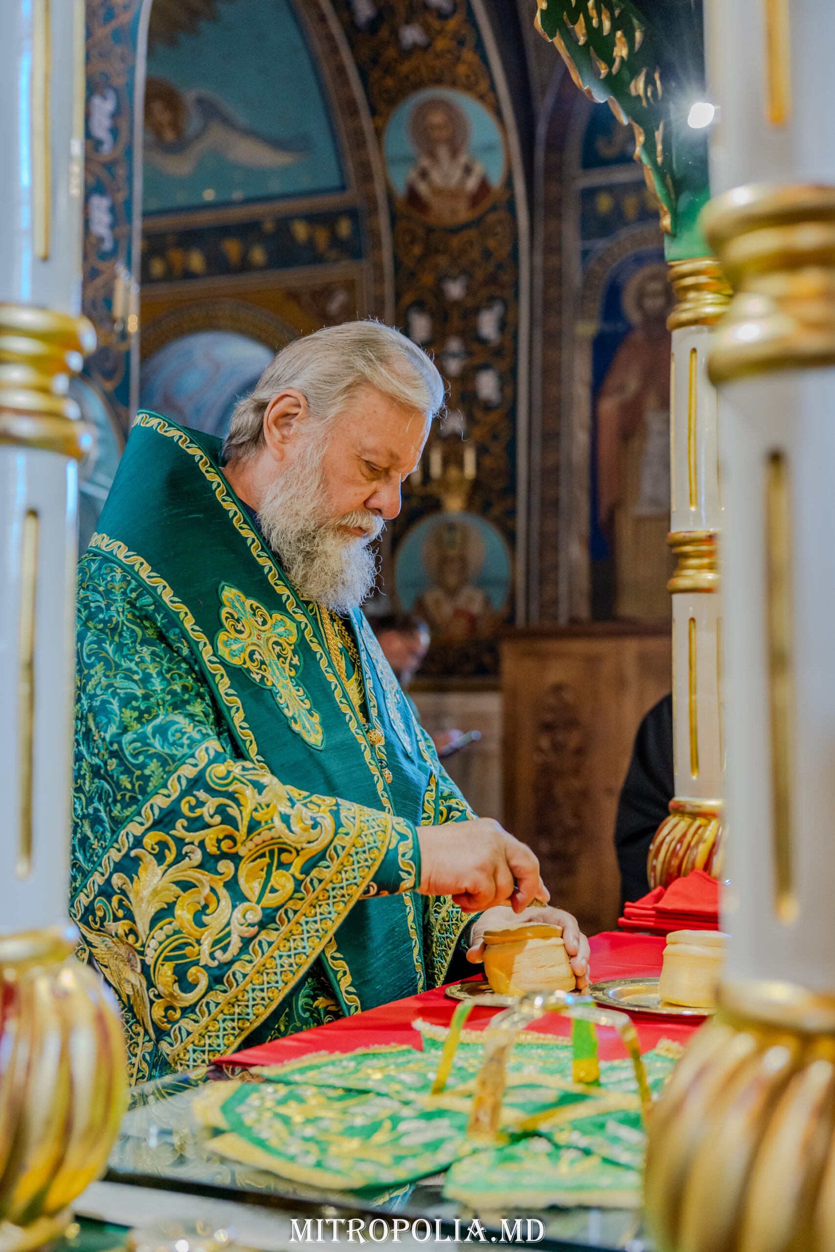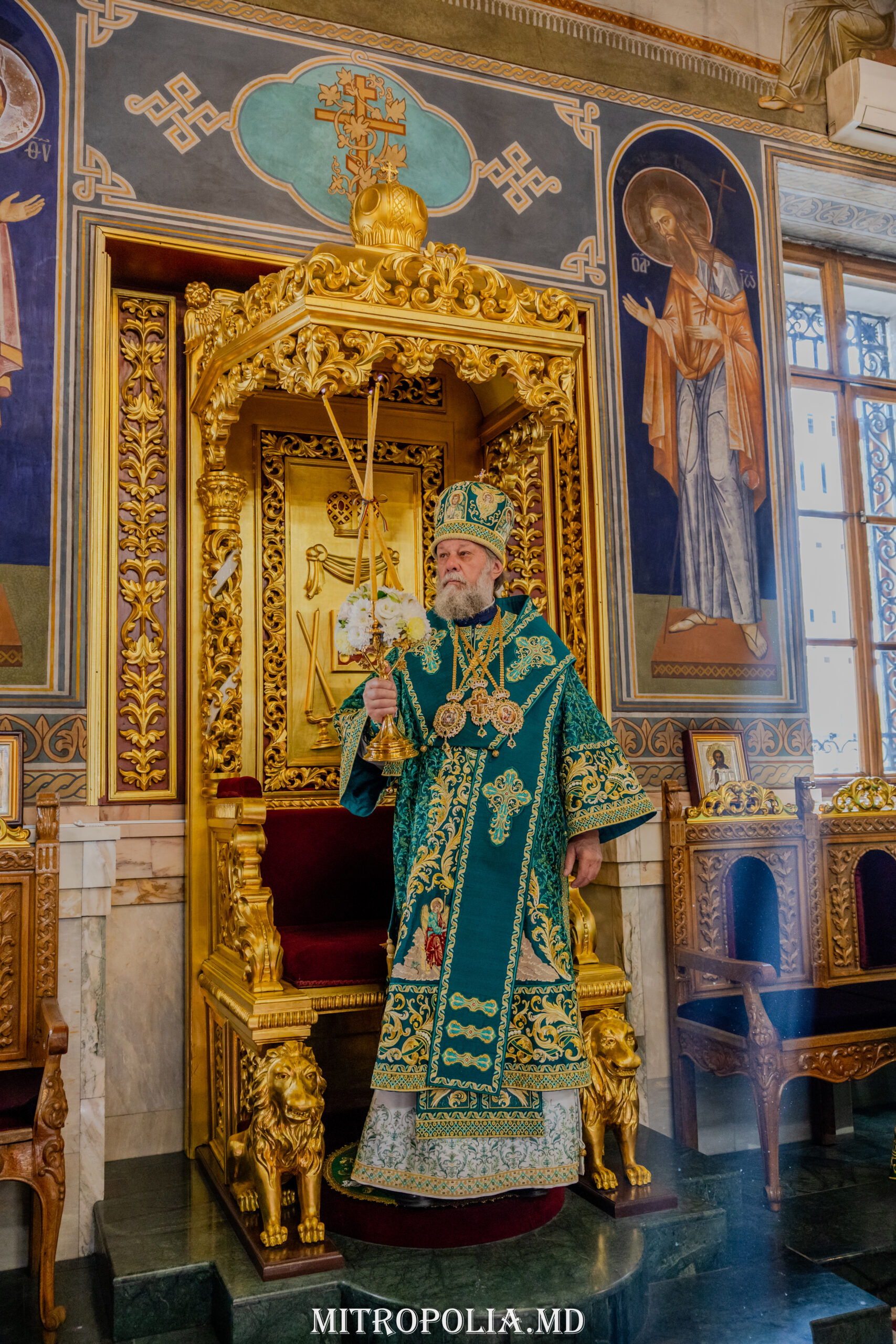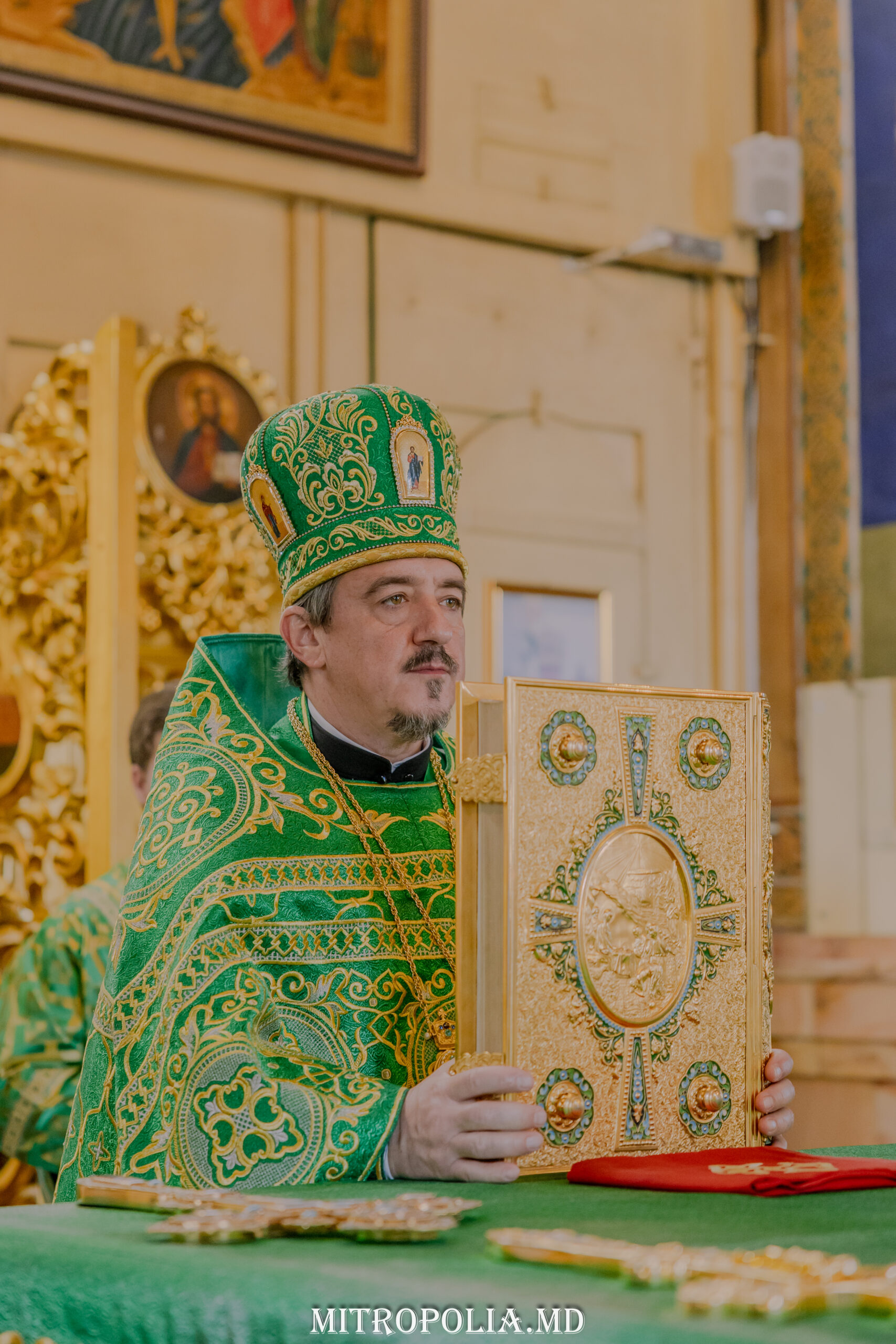 Întâistătătorului Bisericii Ortodoxe din Moldova i-au coliturghisit: secretarul mitropoliei, prot. mitr. Vadim Cheibaș și soborul de slujitori ai Catedralei.