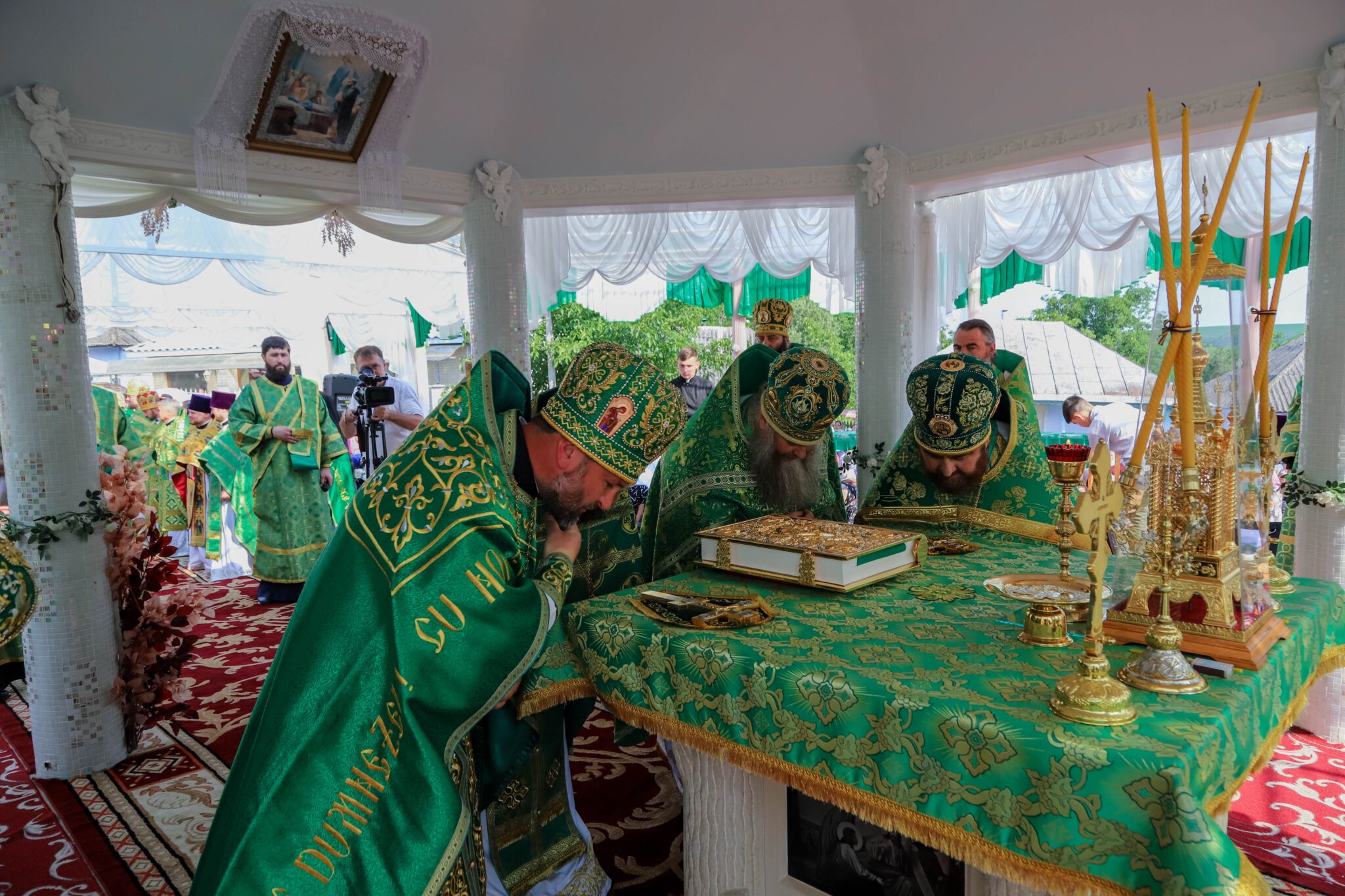 Alături de ÎPS Mitropolit Vladimir au înălțat rugăciuni: ÎPS Nicodim, arhiepiscop de Edineț și Briceni și episcopii vicari PS Ioan de Soroca și PS Siluan de Orhei, prot. mitr. Vadim Cheibaș, secretar mitropolitan împreună cu un sobor de peste 100 de preoți și diaconi din cuprinsul Mitropoliei.