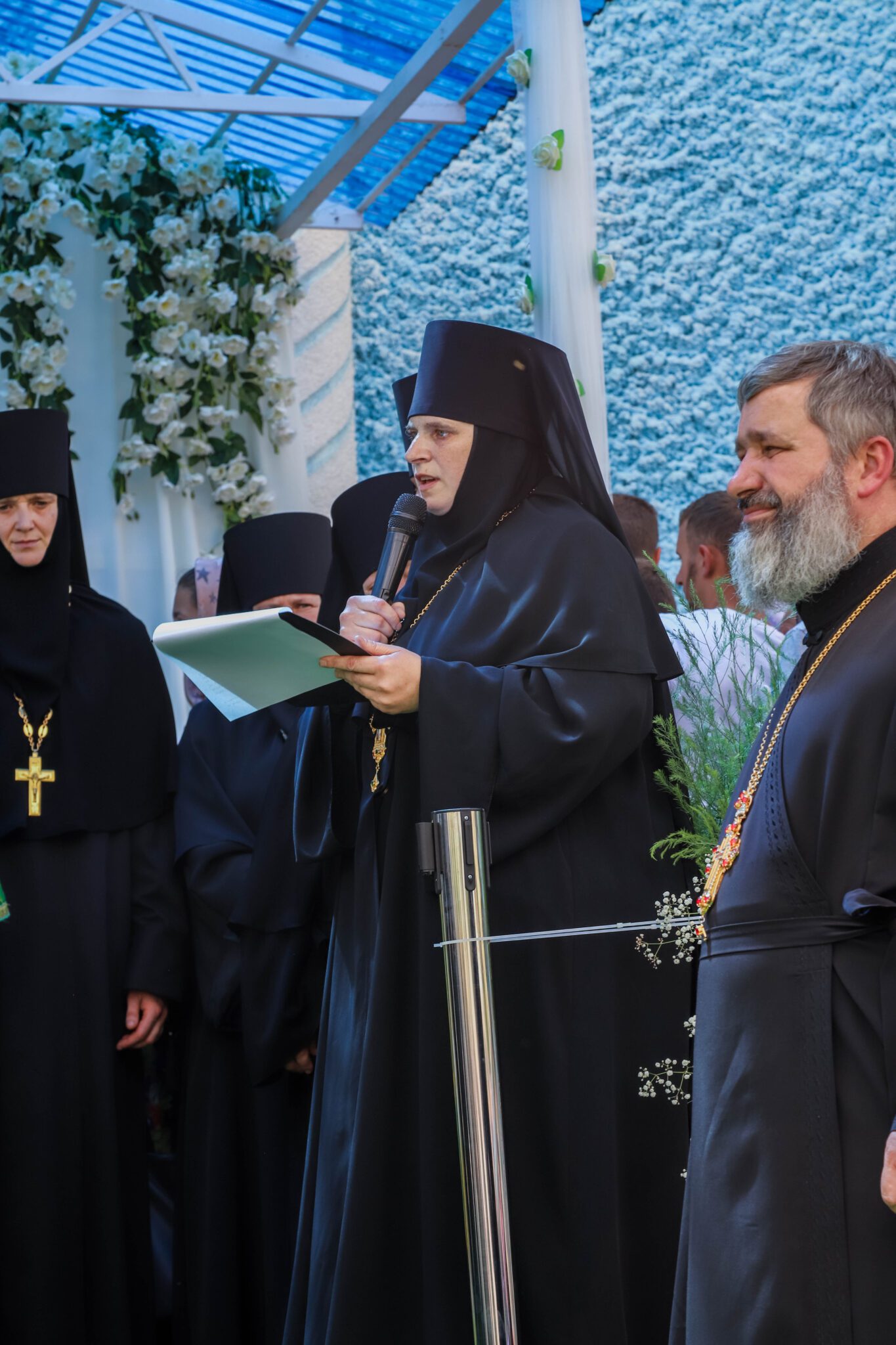 Răspunsurile liturgice la slujbă au fost date de corul arhieresc al Mănăstirii Curchi, condus de către dl Dumitru Buga.