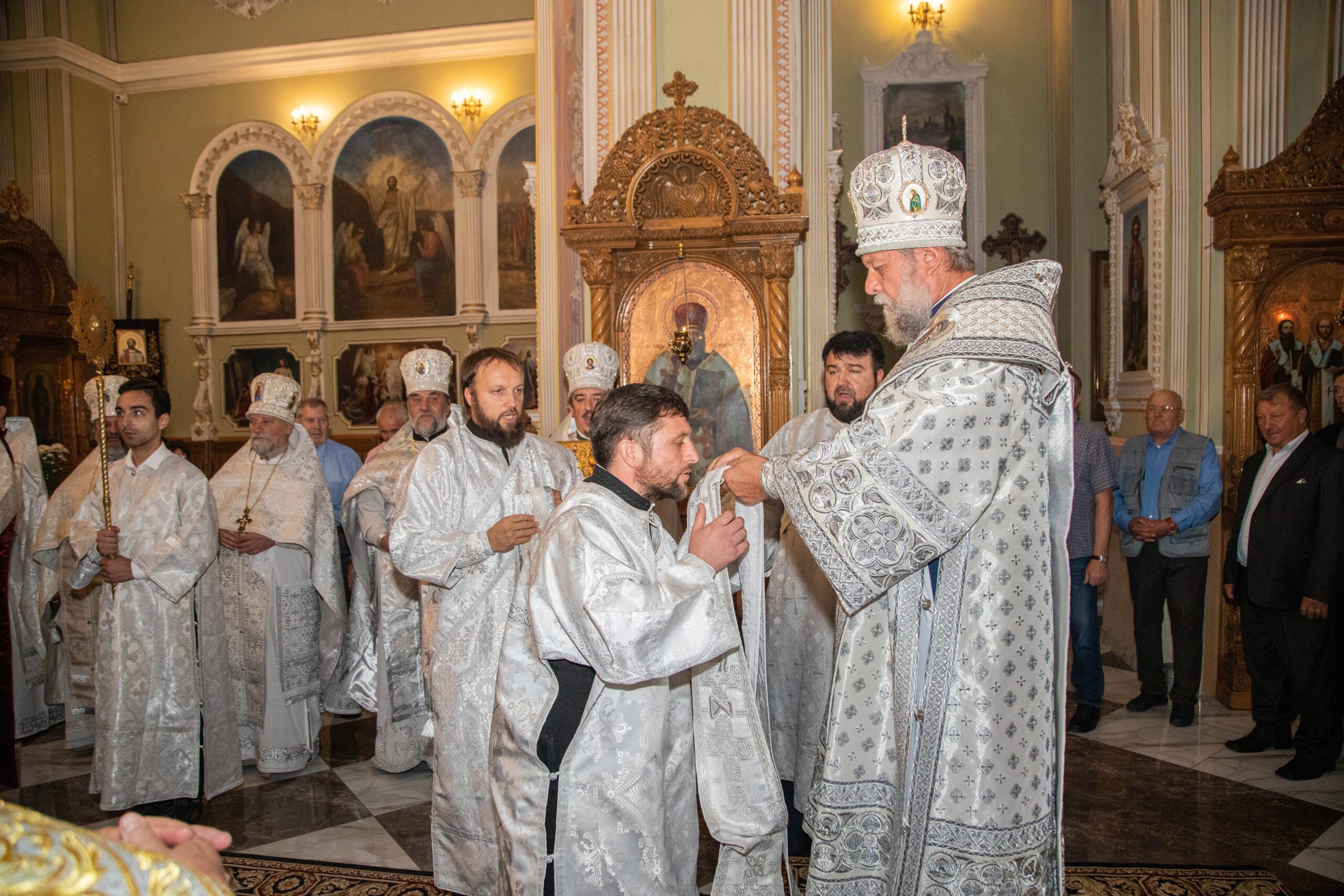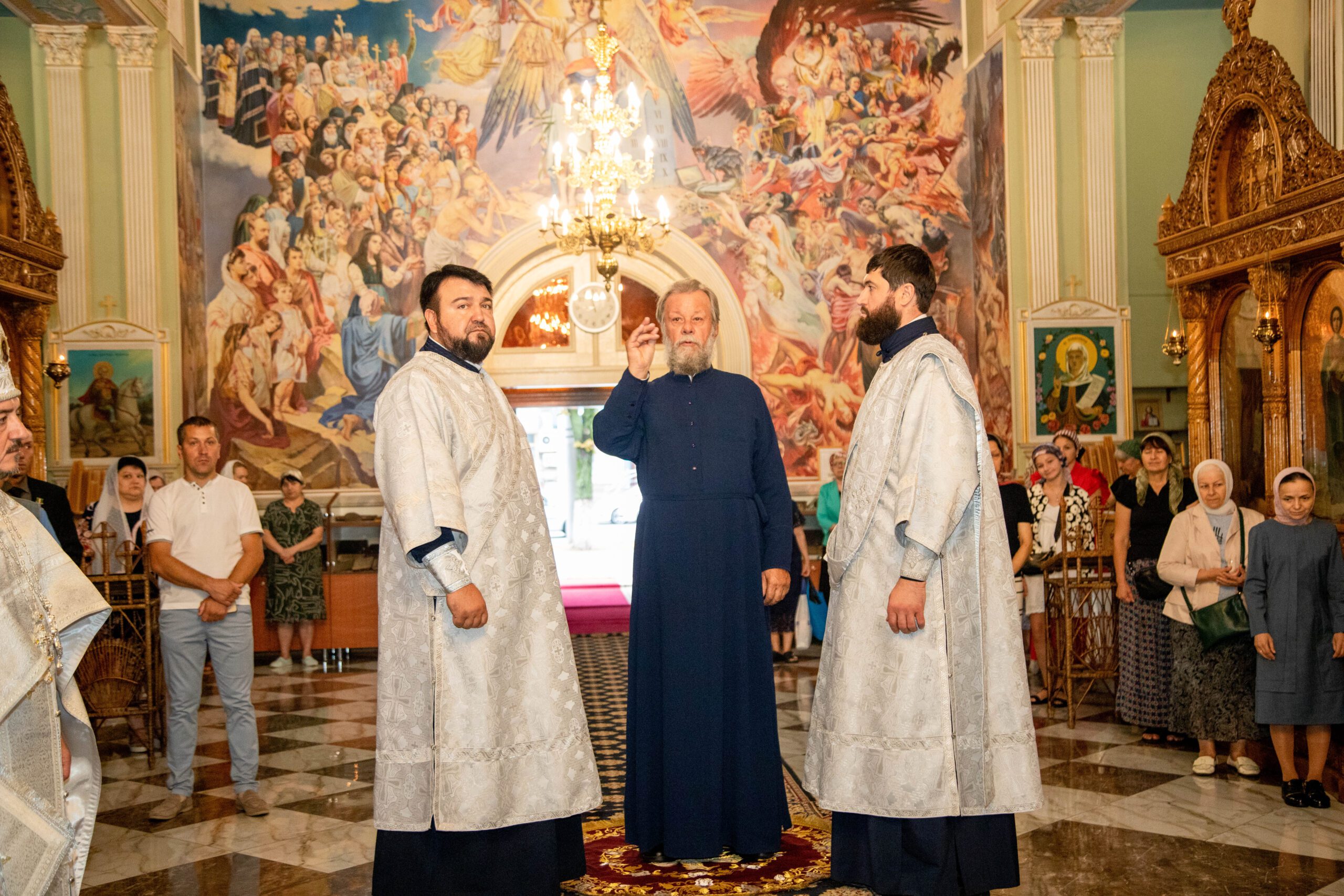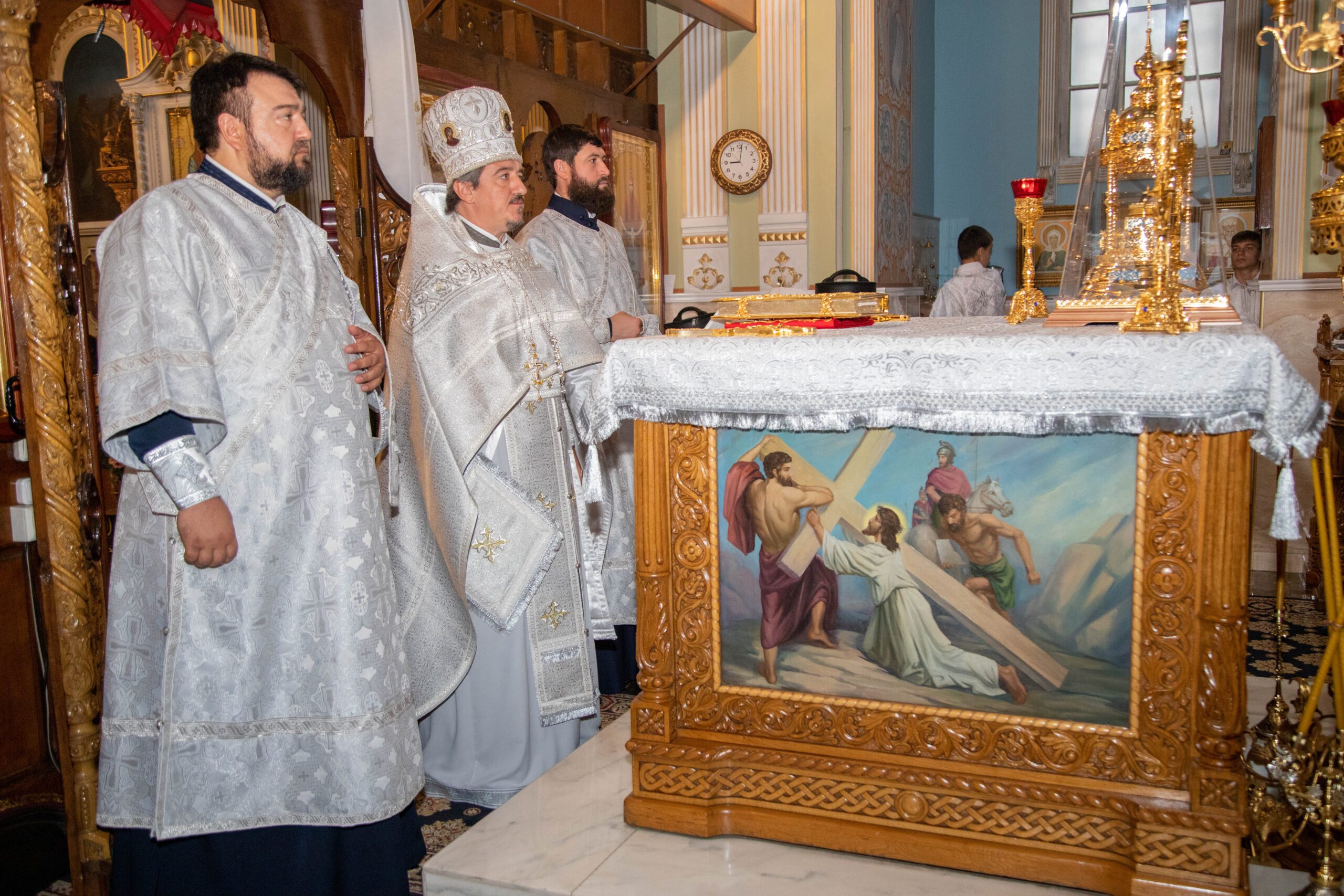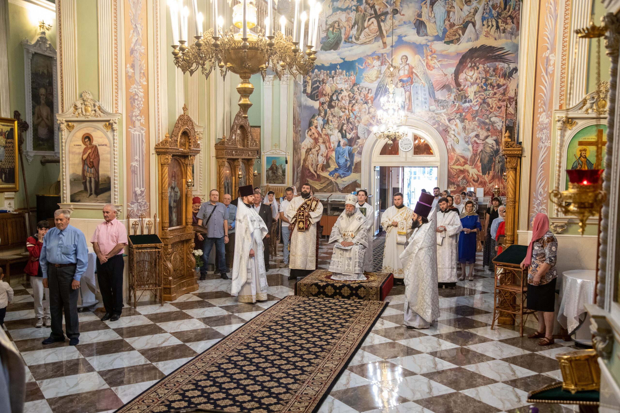La Sfânta Liturghie, alături de ÎPS Vladimir au înălțat rugăciuni: prot. mitr. Vadim Cheibaș. secretar mitropolitan și protopop al sectorului I, Chișinău, prot. mitr. Ioan Plămădeală, parohul bisericii, prot. mitr. Zosima Toia, protopop al sectorului III, Chişinău, prot. mitr. Valeriu Potoroacă, președintele Judecății Bisericești și un sobor de preoți și diaconi.