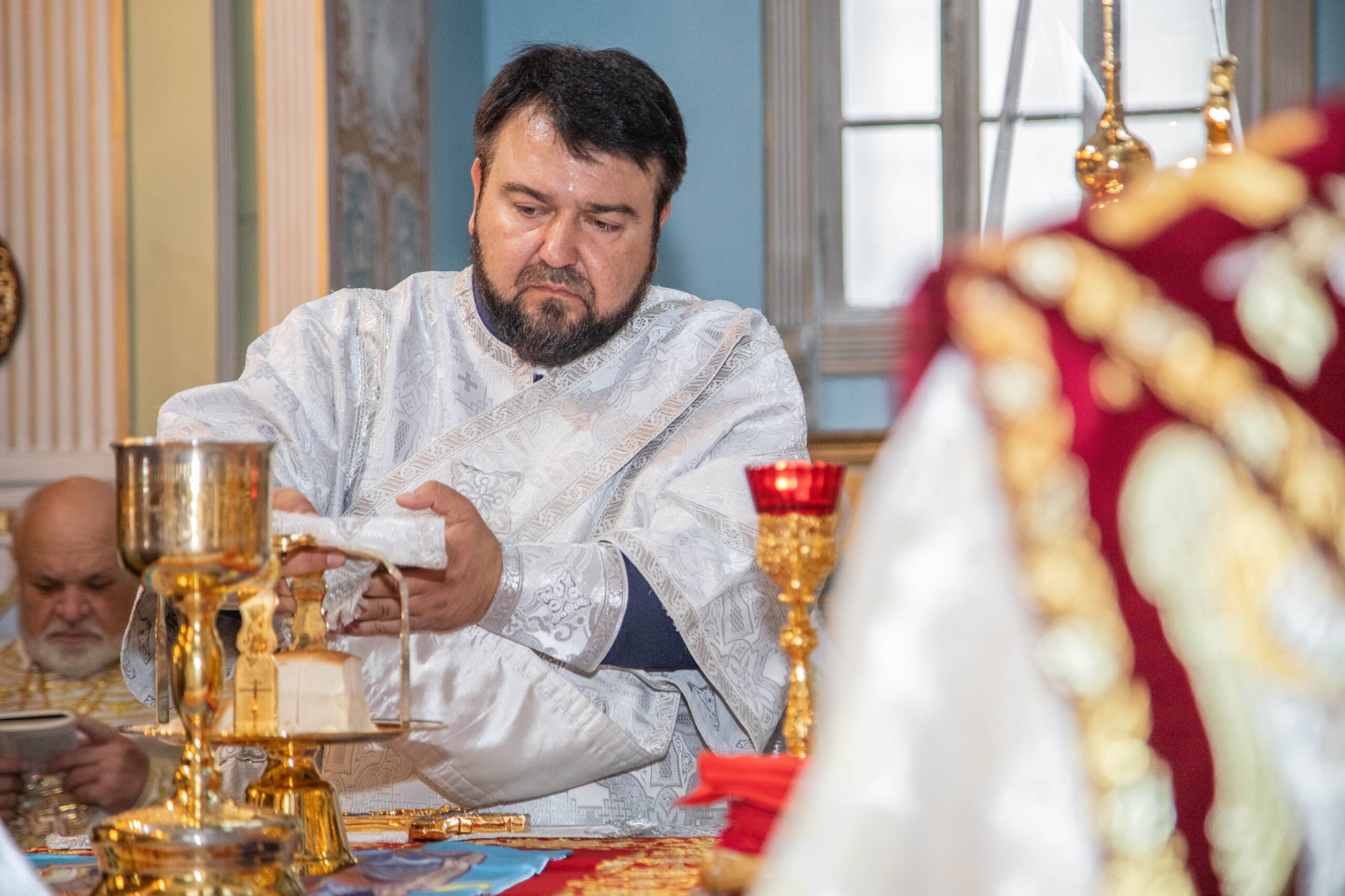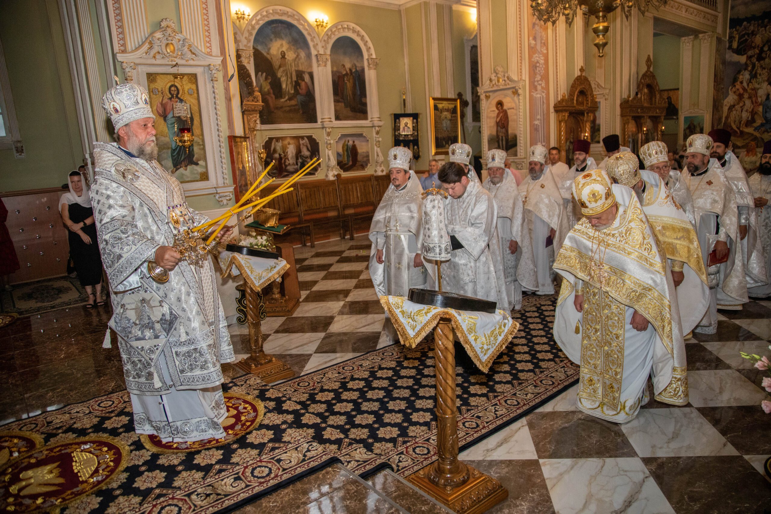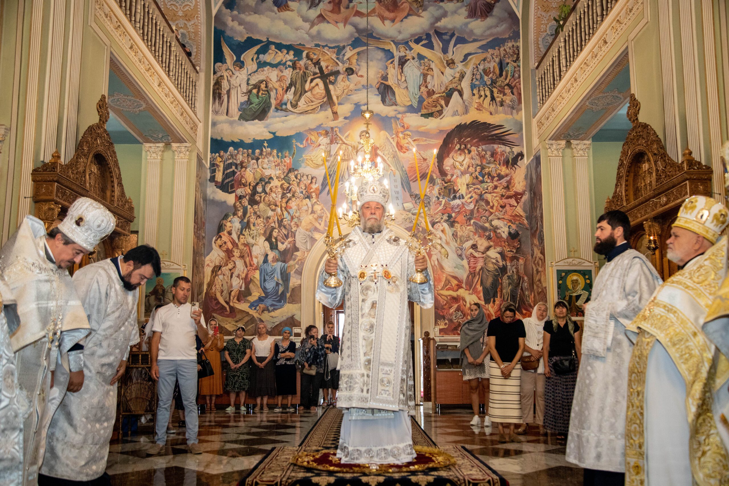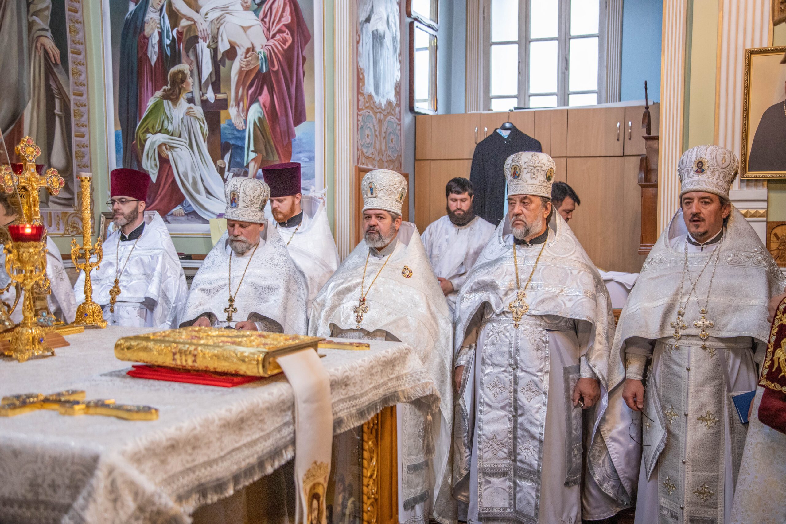 La Sfânta Liturghie, alături de ÎPS Vladimir au înălțat rugăciuni: prot. mitr. Vadim Cheibaș. secretar mitropolitan și protopop al sectorului I, Chișinău, prot. mitr. Ioan Plămădeală, parohul bisericii, prot. mitr. Zosima Toia, protopop al sectorului III, Chişinău, prot. mitr. Valeriu Potoroacă, președintele Judecății Bisericești și un sobor de preoți și diaconi.