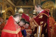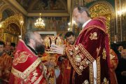 În timpul serviciului divin, mai mulți slujitori au fost decorați de către Întâistătător pentru munca depusă spre binele și propășirea Bisericii Ortodoxe din Moldova.