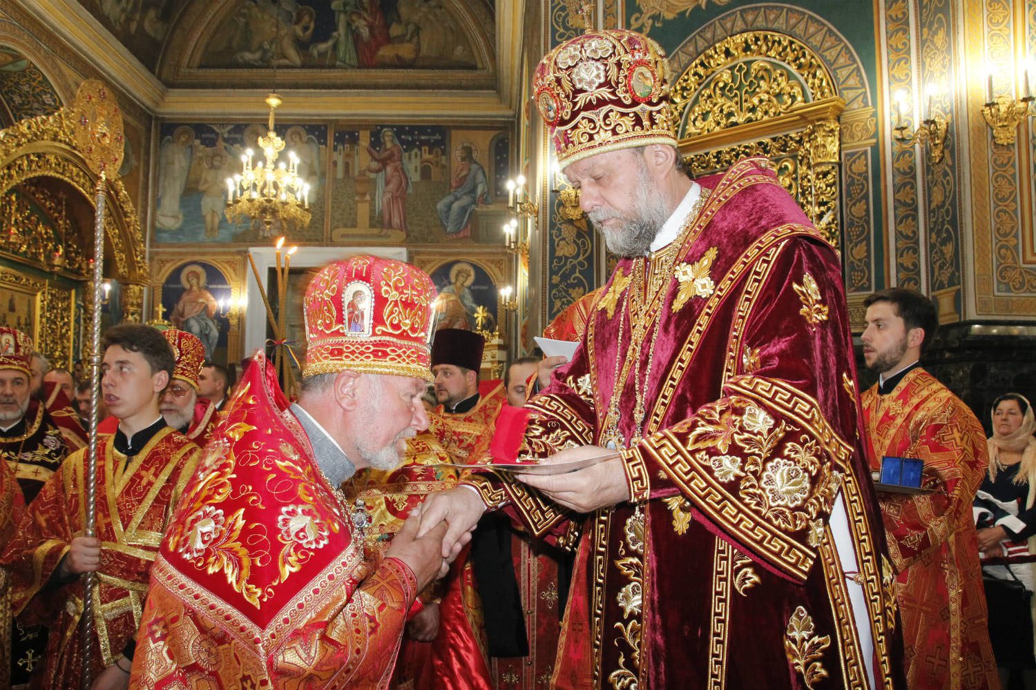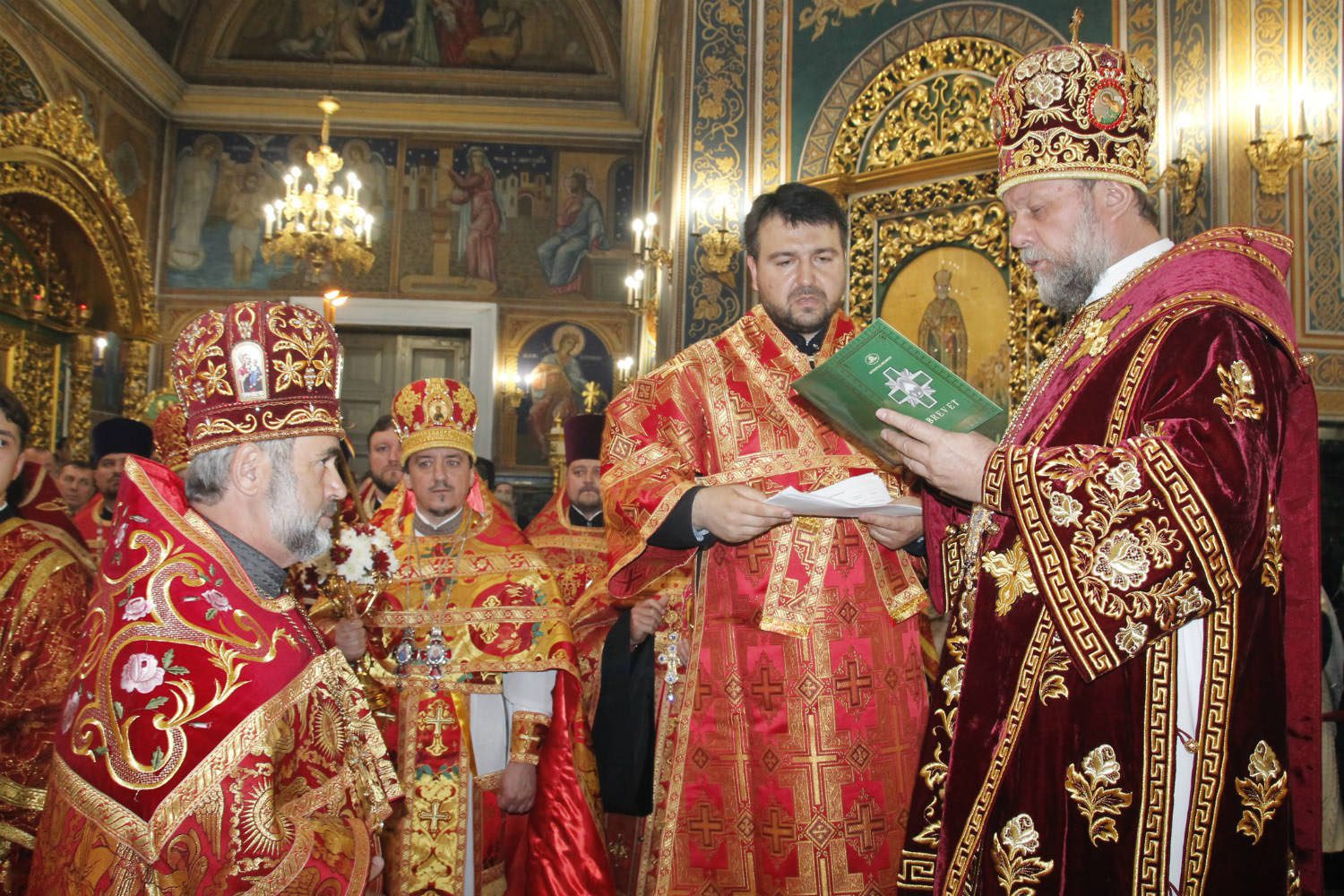 În timpul serviciului divin, mai mulți slujitori au fost decorați de către Întâistătător pentru munca depusă spre binele și propășirea Bisericii Ortodoxe din Moldova.