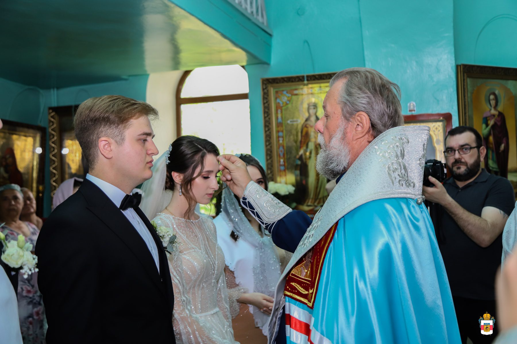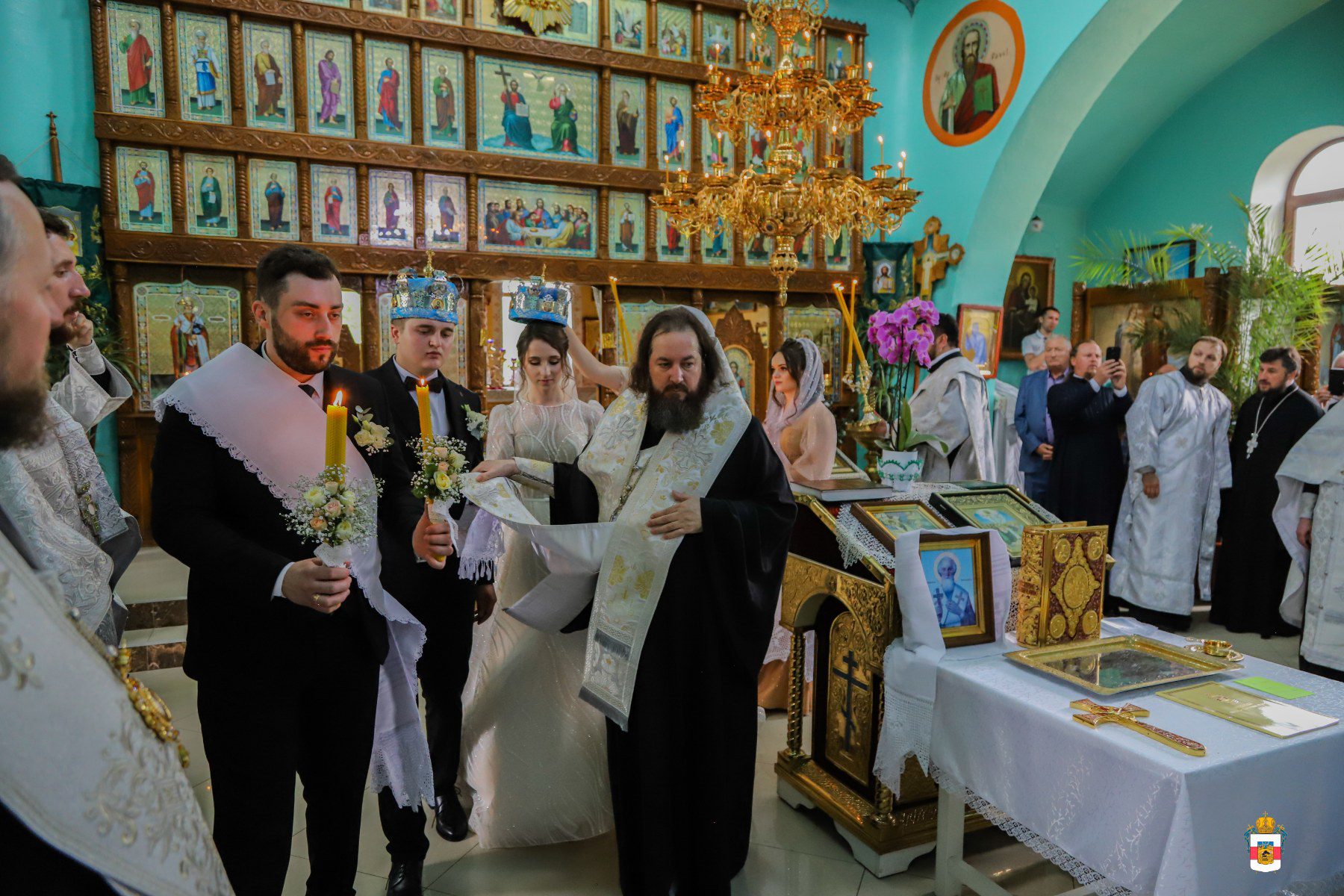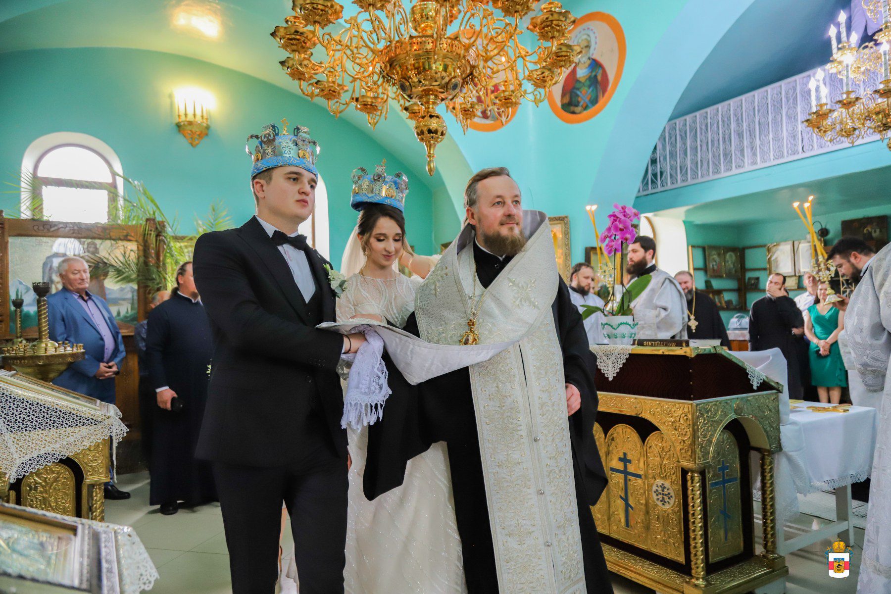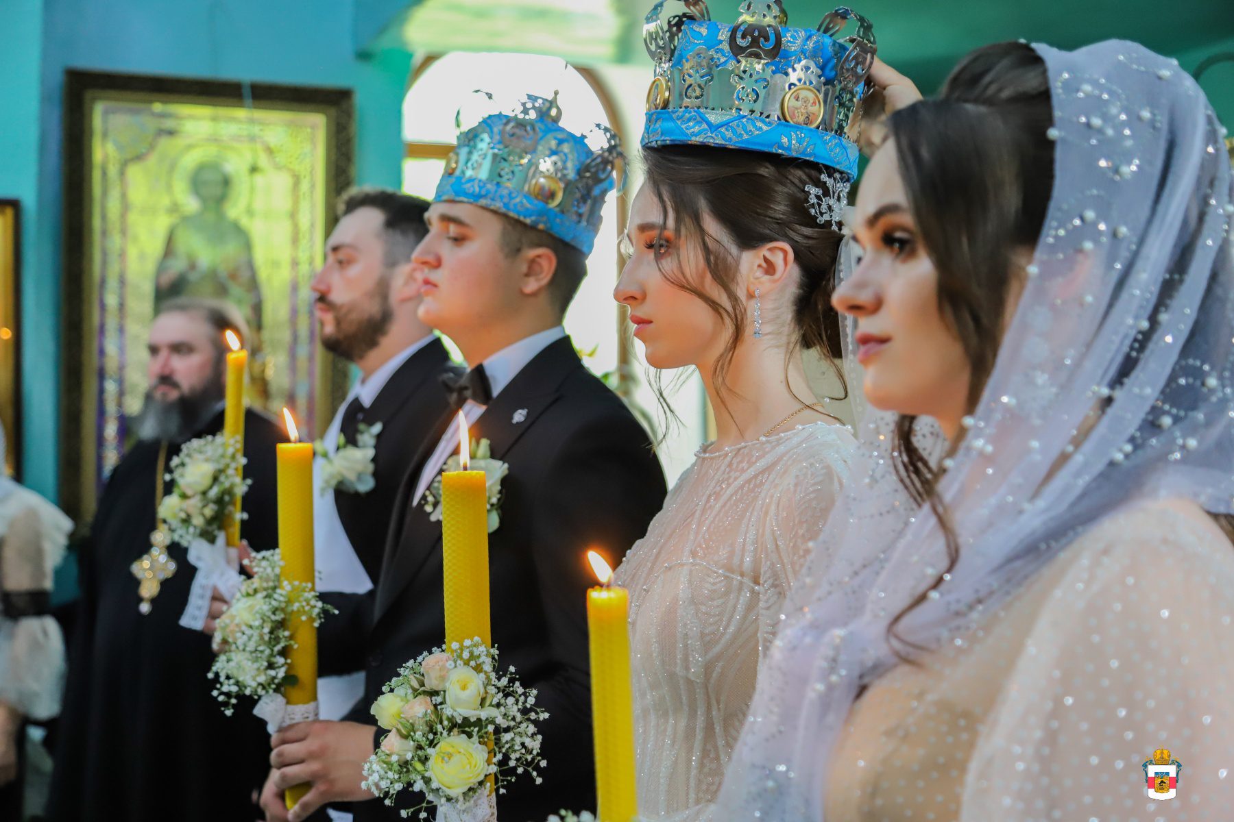 La Taina Sfintei Cununii, alături de Întâistătătorul Bisericii Ortodoxe din Moldova au participat Înaltpreasfințitul Petru, Arhiepiscop de Ungheni și Nisporeni, Preasfințitul Ioan de Soroca, Episcop vicar mitropolitan, Prot. Vadim Corostinschi, Secretar eparhial și un sobor de preoți și diaconi în prezența părinților lor: Prot. Grigorie și Valentina Dodon, Prot. Nicolae și Suzana Craveț și a rudelor apropiate.