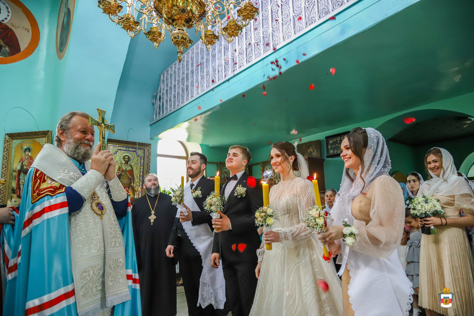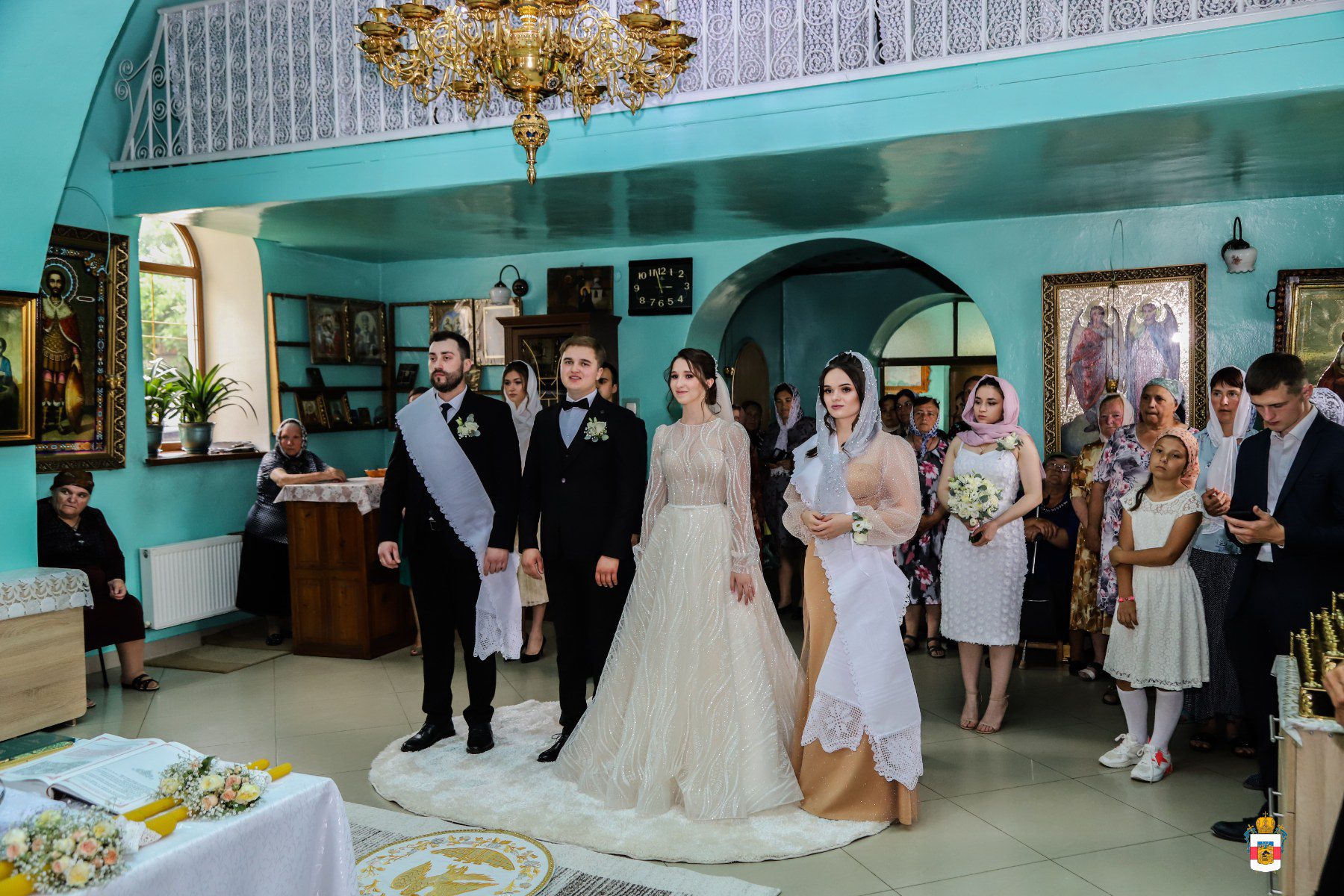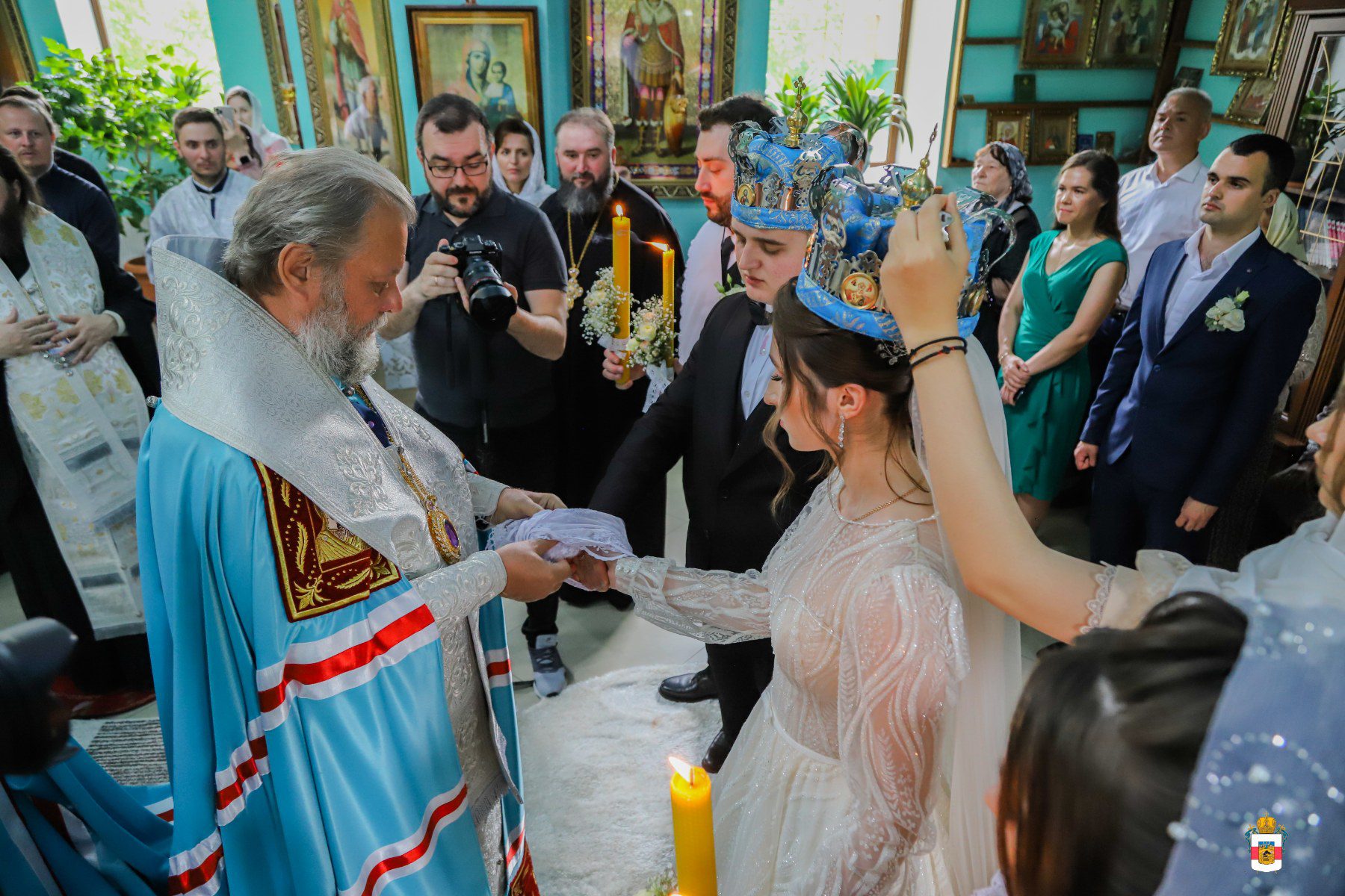 La Taina Sfintei Cununii, alături de Întâistătătorul Bisericii Ortodoxe din Moldova au participat Înaltpreasfințitul Petru, Arhiepiscop de Ungheni și Nisporeni, Preasfințitul Ioan de Soroca, Episcop vicar mitropolitan, Prot. Vadim Corostinschi, Secretar eparhial și un sobor de preoți și diaconi în prezența părinților lor: Prot. Grigorie și Valentina Dodon, Prot. Nicolae și Suzana Craveț și a rudelor apropiate.