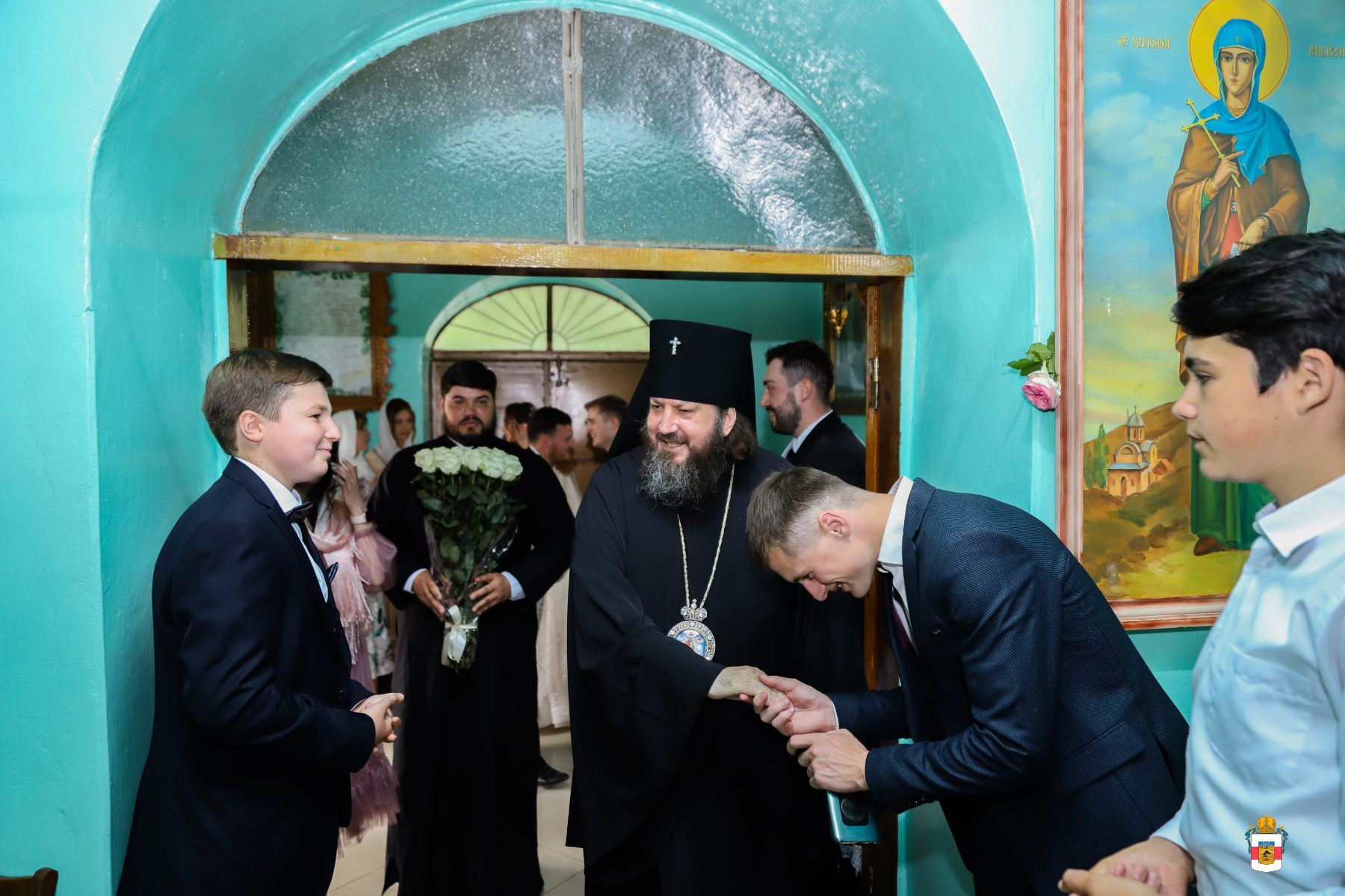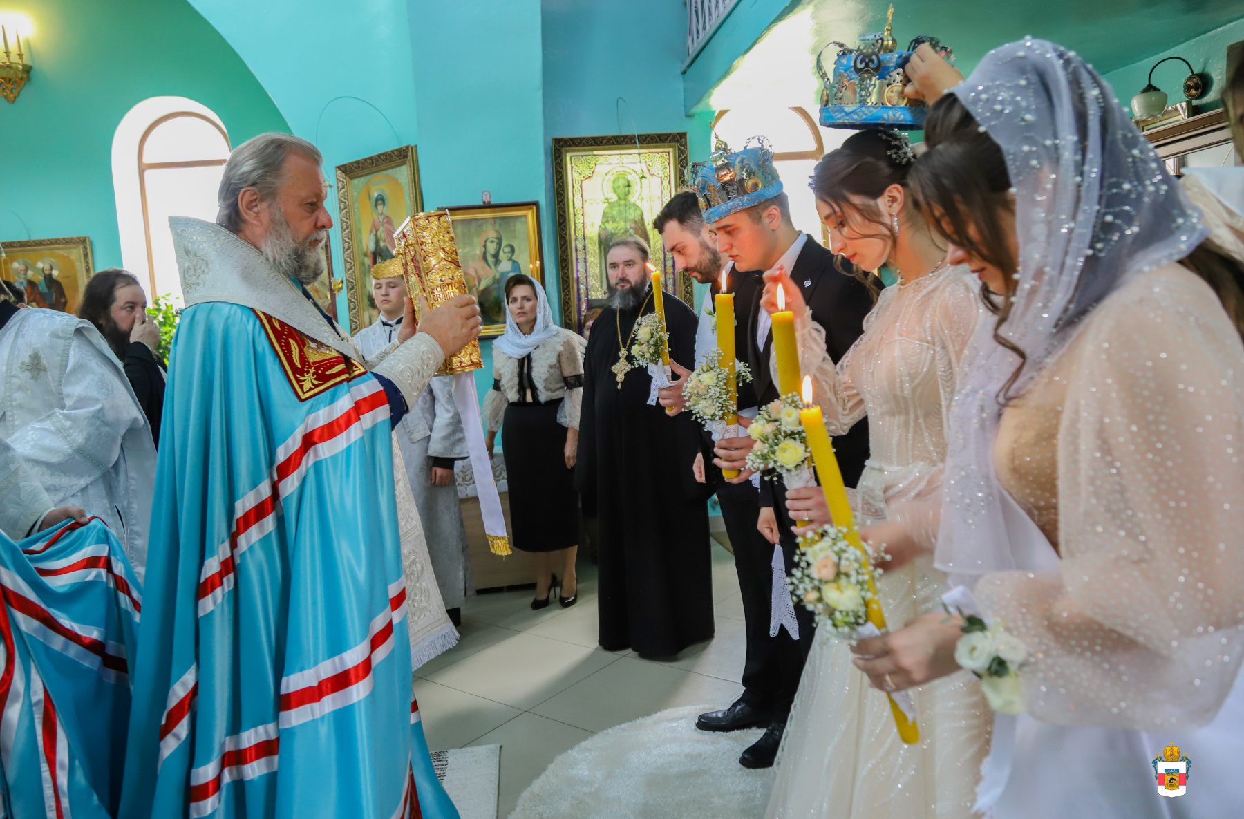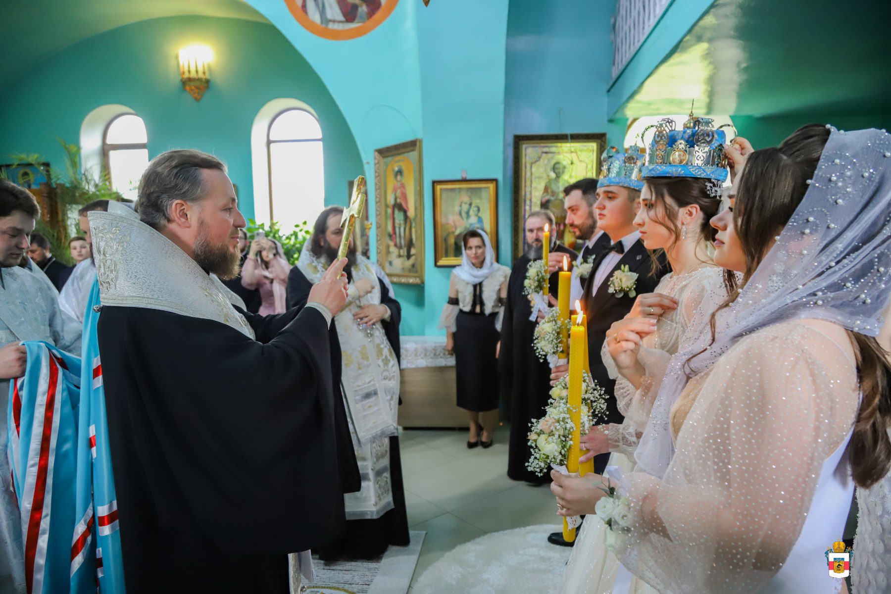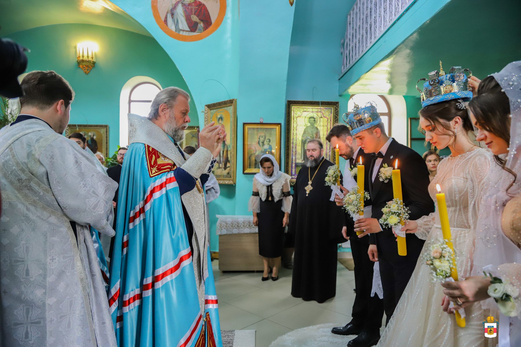 La Taina Sfintei Cununii, alături de Întâistătătorul Bisericii Ortodoxe din Moldova au participat Înaltpreasfințitul Petru, Arhiepiscop de Ungheni și Nisporeni, Preasfințitul Ioan de Soroca, Episcop vicar mitropolitan, Prot. Vadim Corostinschi, Secretar eparhial și un sobor de preoți și diaconi în prezența părinților lor: Prot. Grigorie și Valentina Dodon, Prot. Nicolae și Suzana Craveț și a rudelor apropiate.