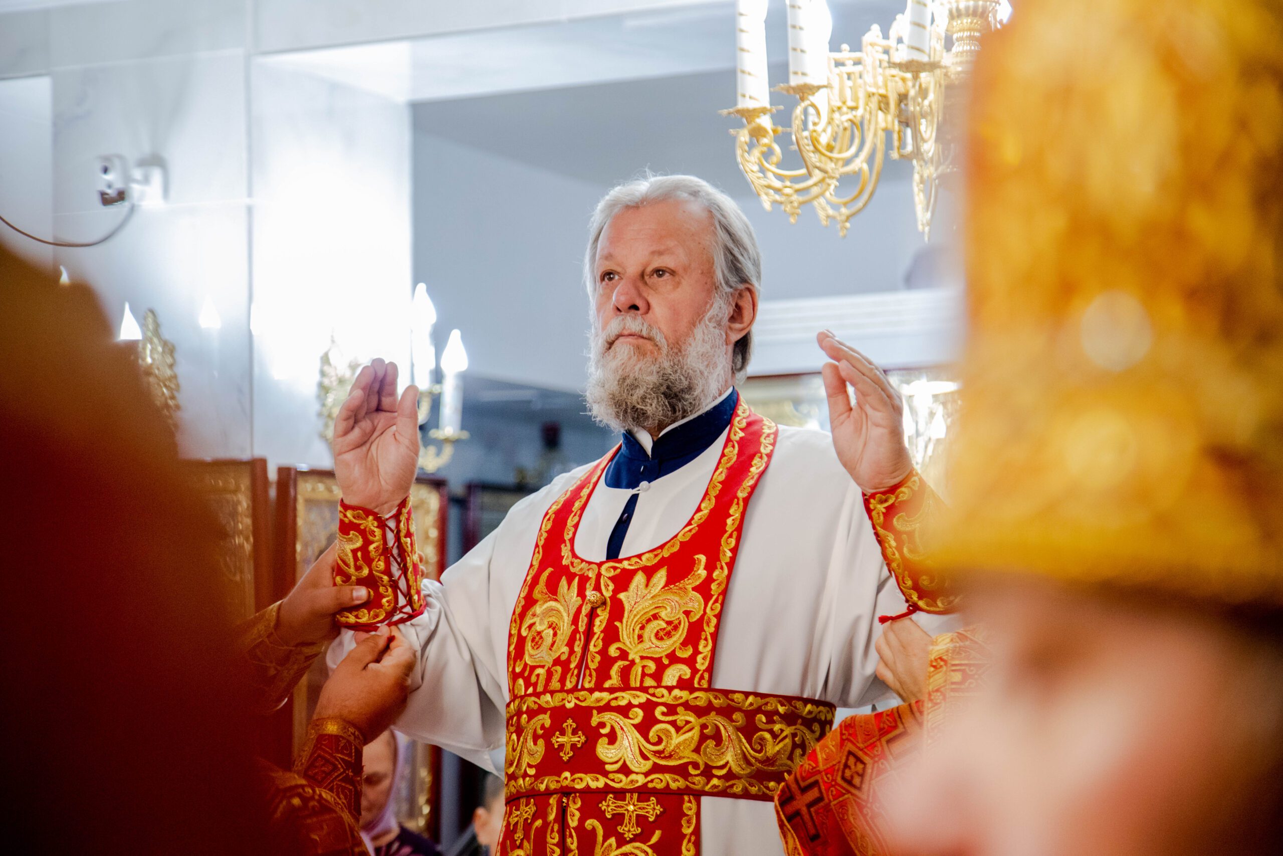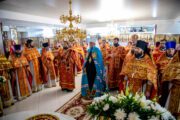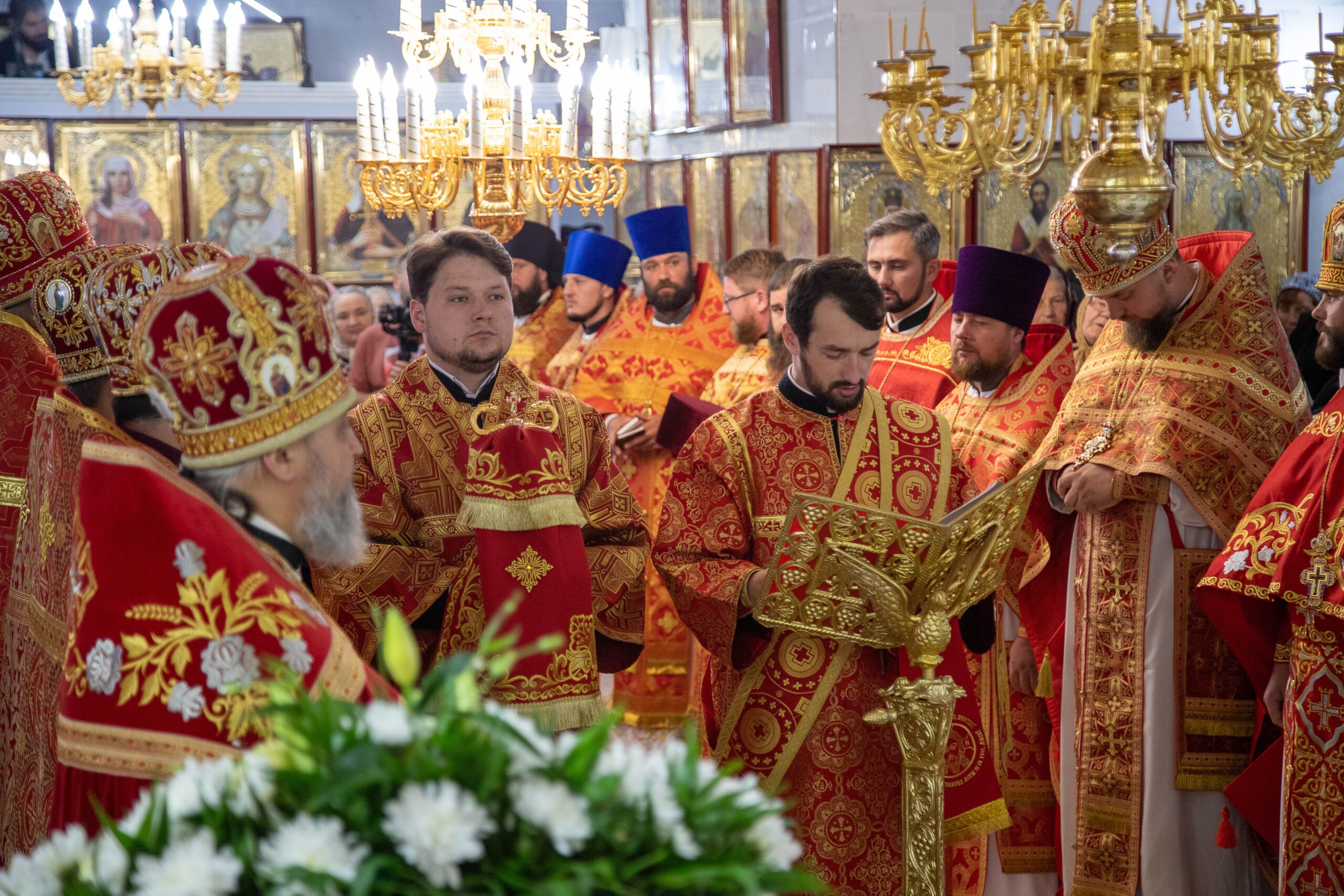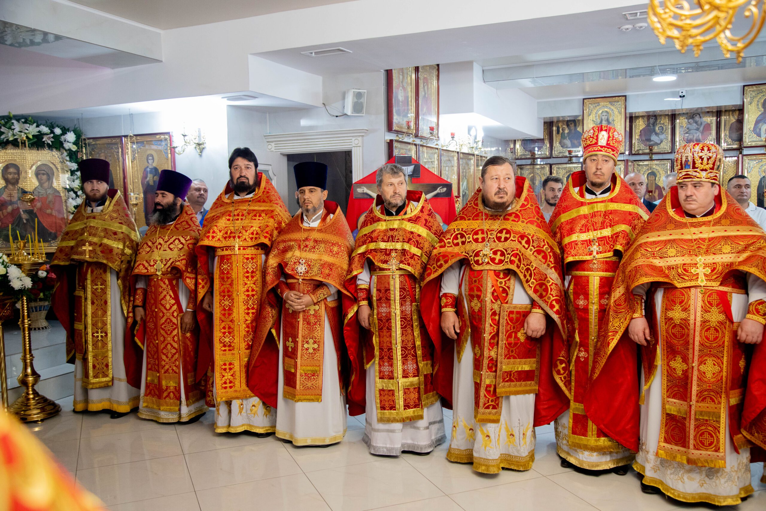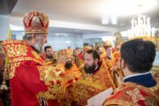 Înaltpreasfinției Sale i-au coliturghisit: prot. mitr. Vadim Cheibaş, secretar mitropolitan, prot. mitr. Pavel Vuluță, protopop de Drochia, preotul-paroh Adrian Ciobanu, prot. mitr. Teodor Domnița, protopop de Rîșcani, prot. mitr. Octavian Moșin, președinte al Sectorului Sinodal Activitate Pastorală pentru Tineret și un sobor de preoți și diaconi.