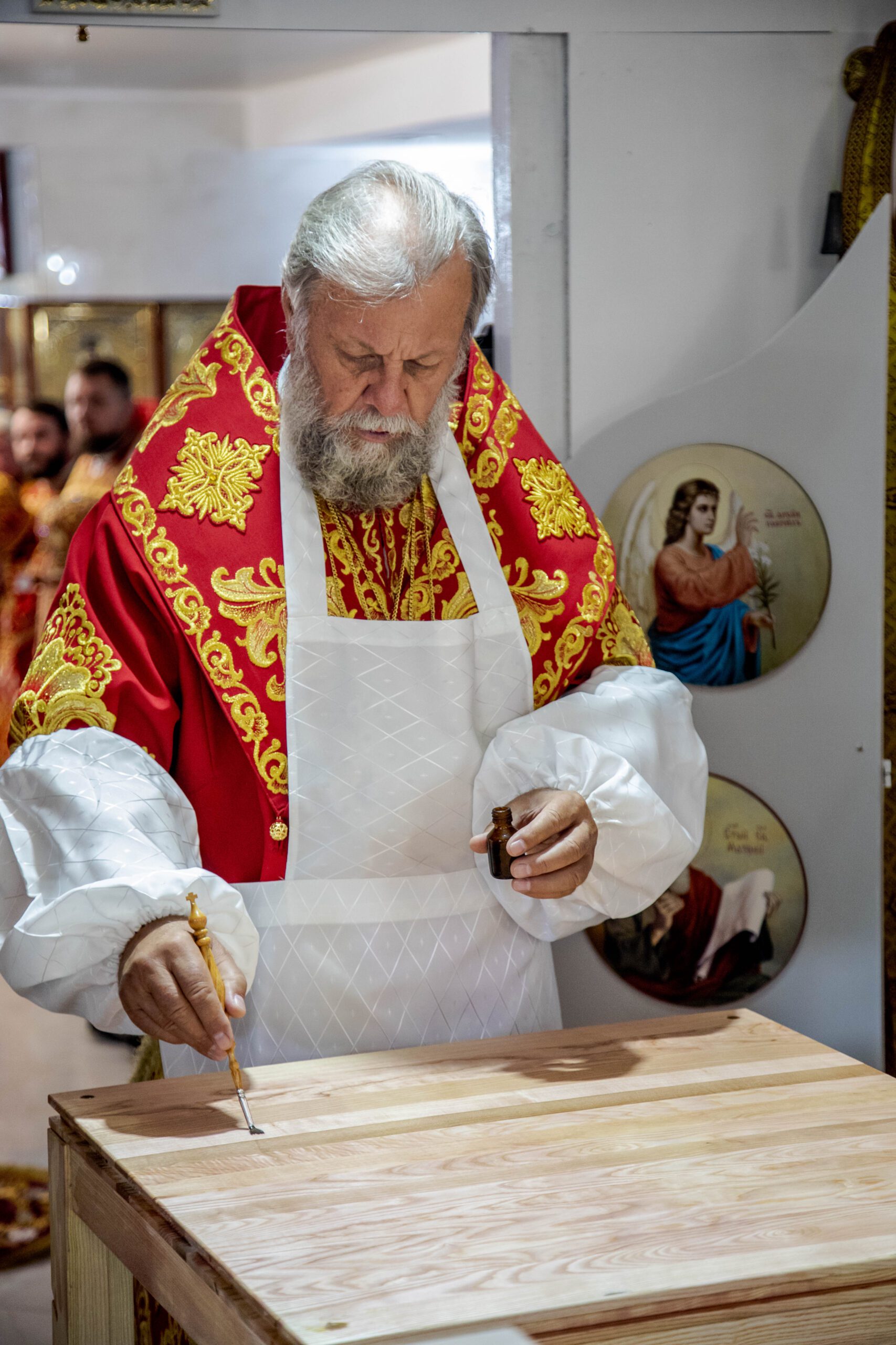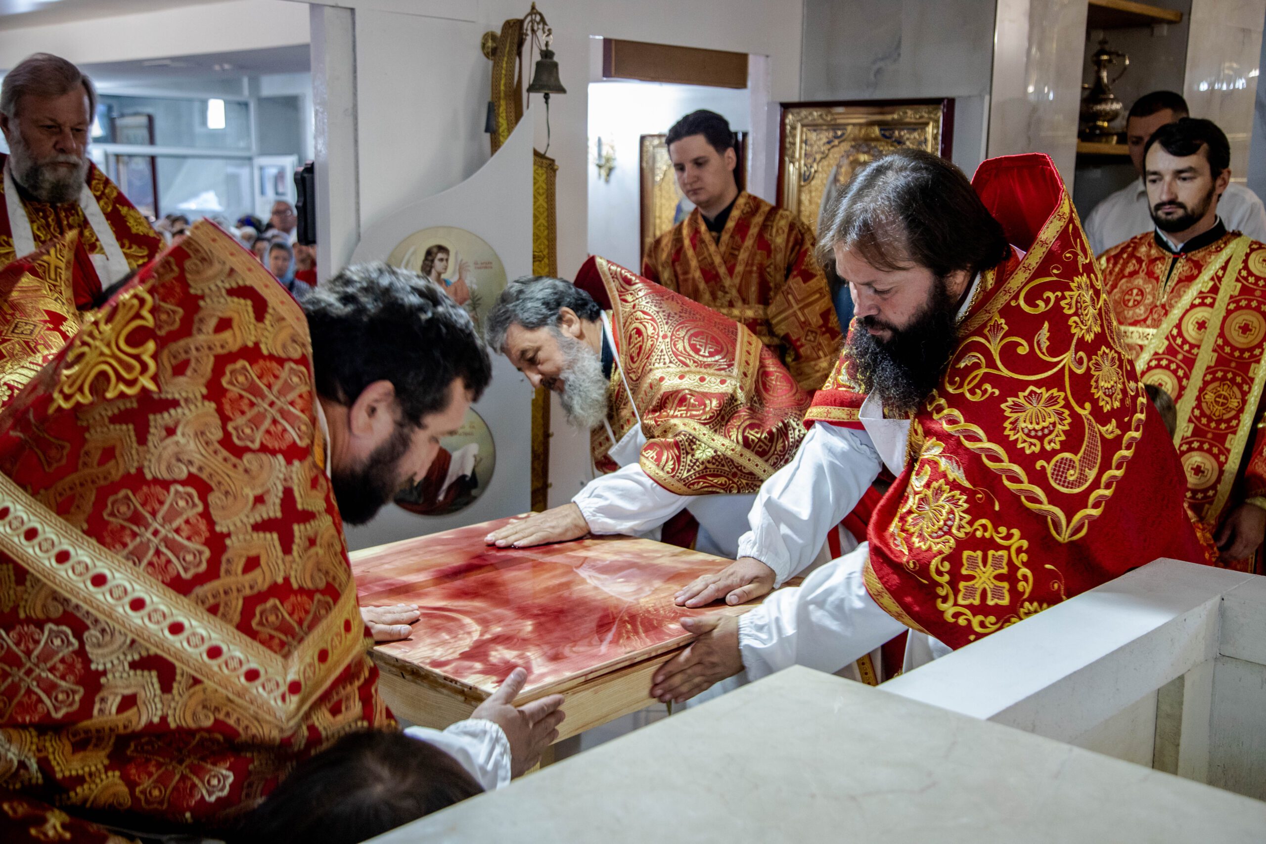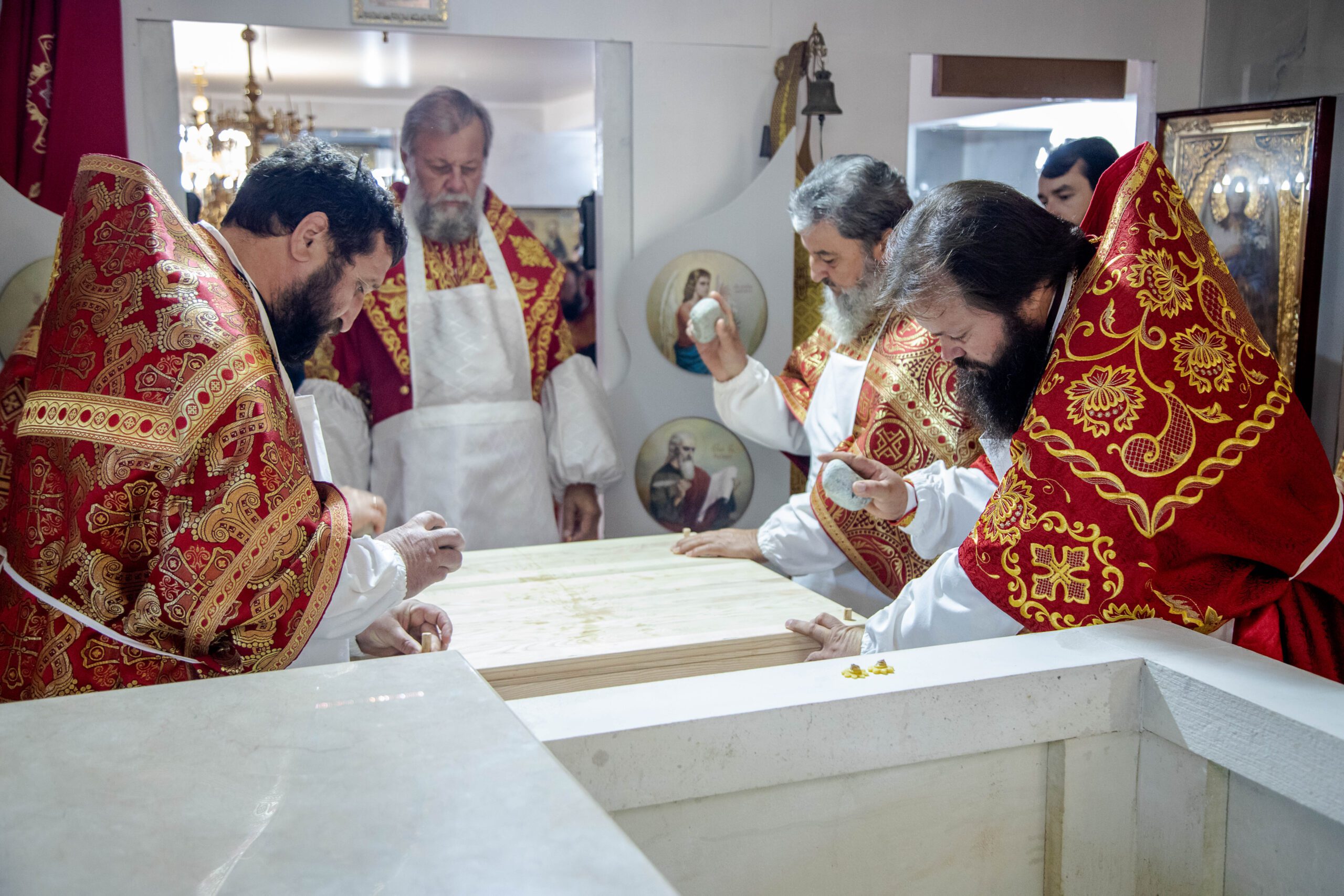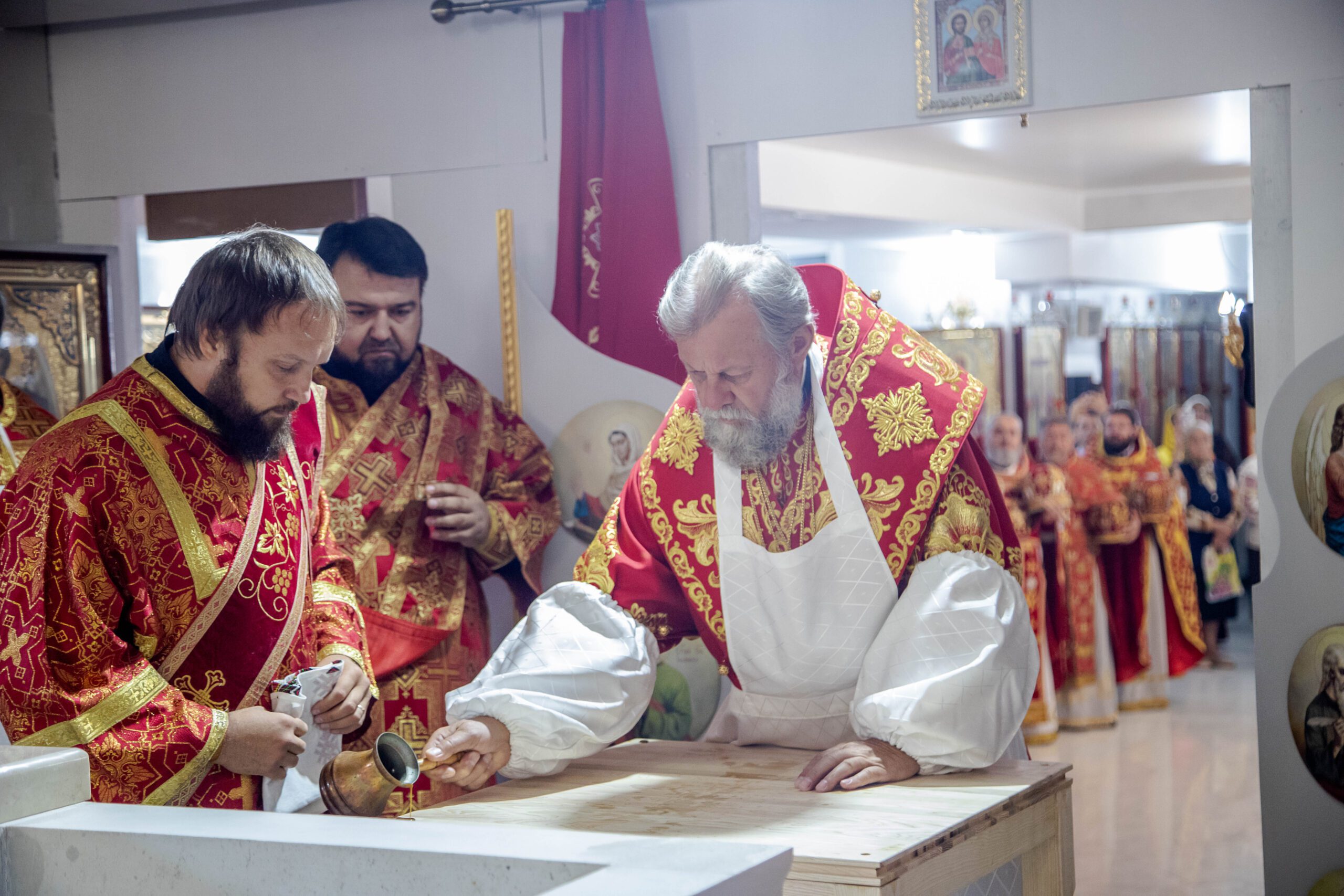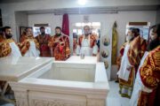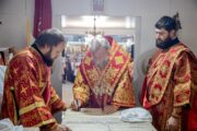 Serviciul Divin a început cu rânduiala de sfințire a Prestolului bisericii – obiect nelipsit din cultul liturgic ortodox și a interiorului bisericii după care a început Sfânta și dumnezeiasca Liturghie.