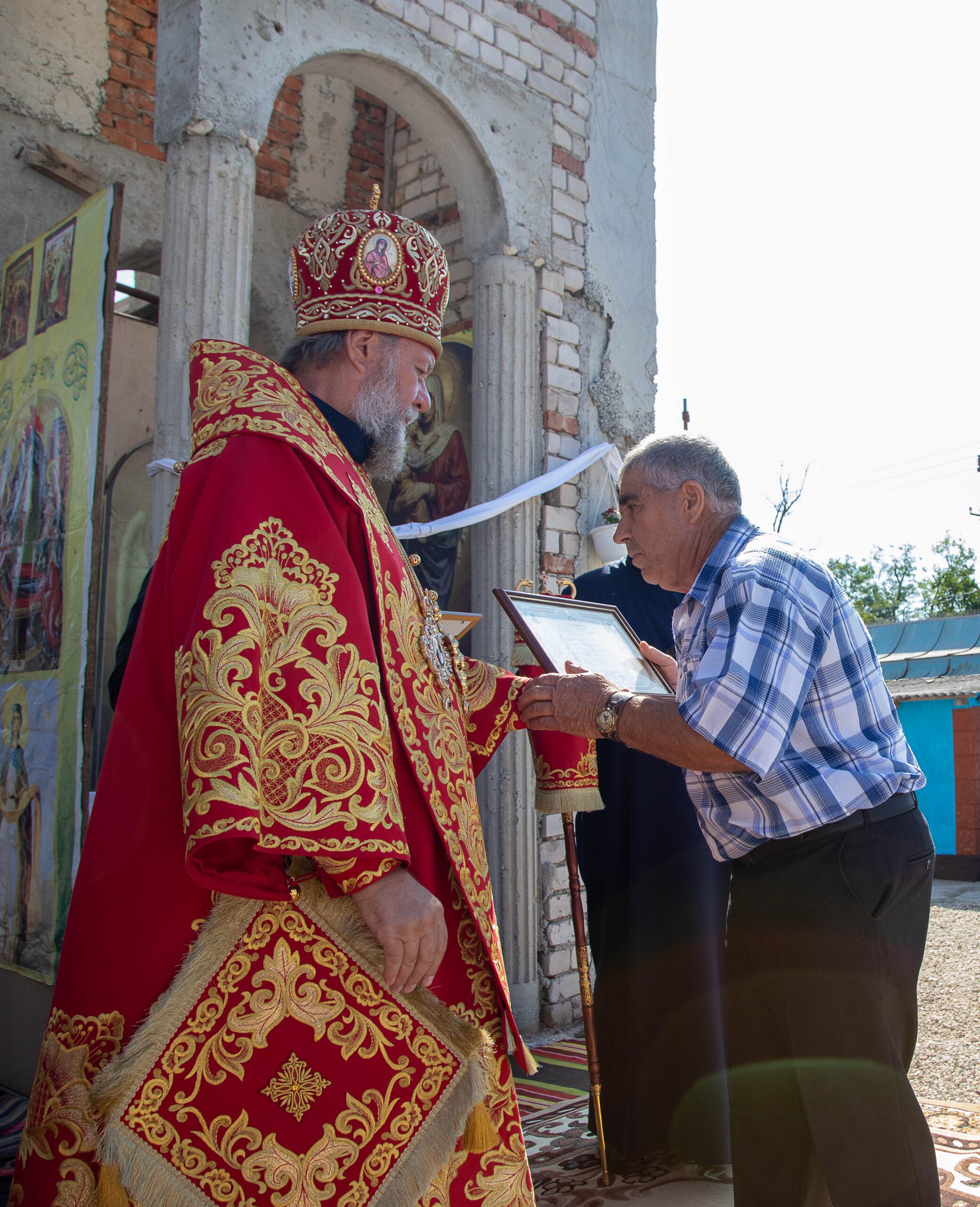 Pentru munca depusă la zidirea acestui Sfânt Lăcaș de închinare, la Vohodul mic, Ierarhul a decorat pe preotul-paroh Adrian Ciobanu cu dreptul de a purta mitră.