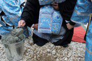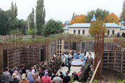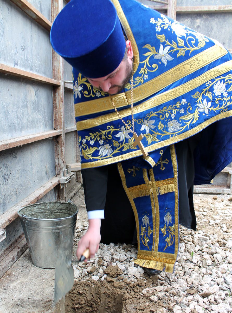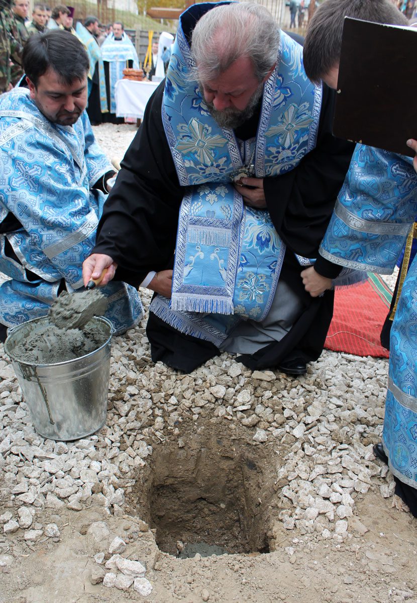 După Liturghie, Vlădica Vladimir a sfinţit piatra de temelie a viitoarei biserici care se va înălţa pe locul exact al aflării vechiului sfânt lăcaş.